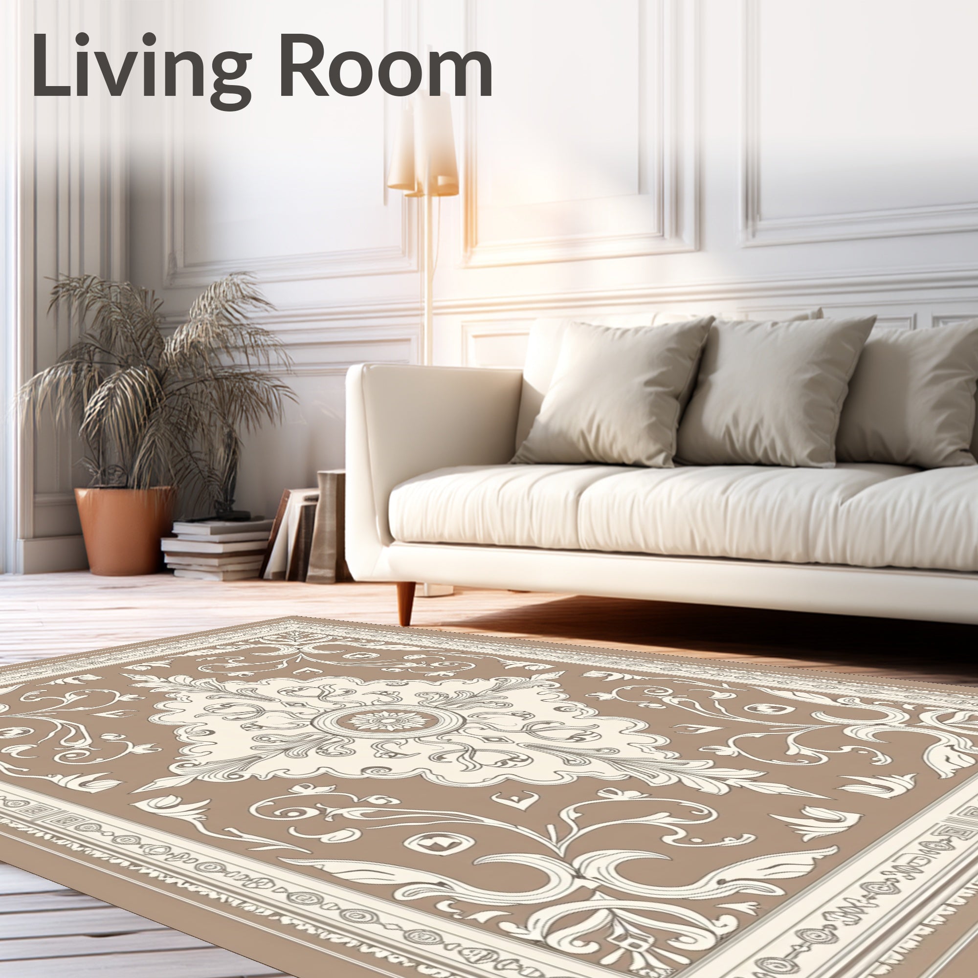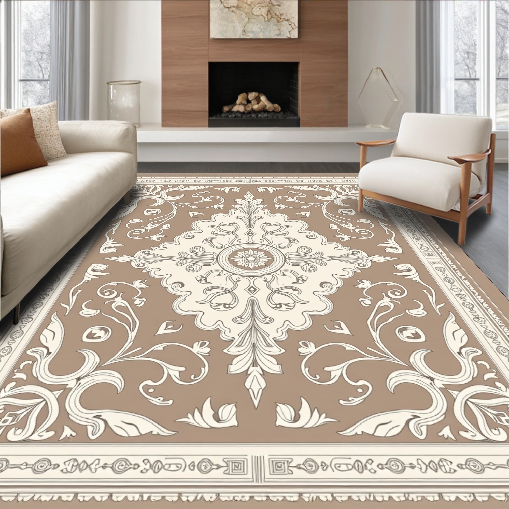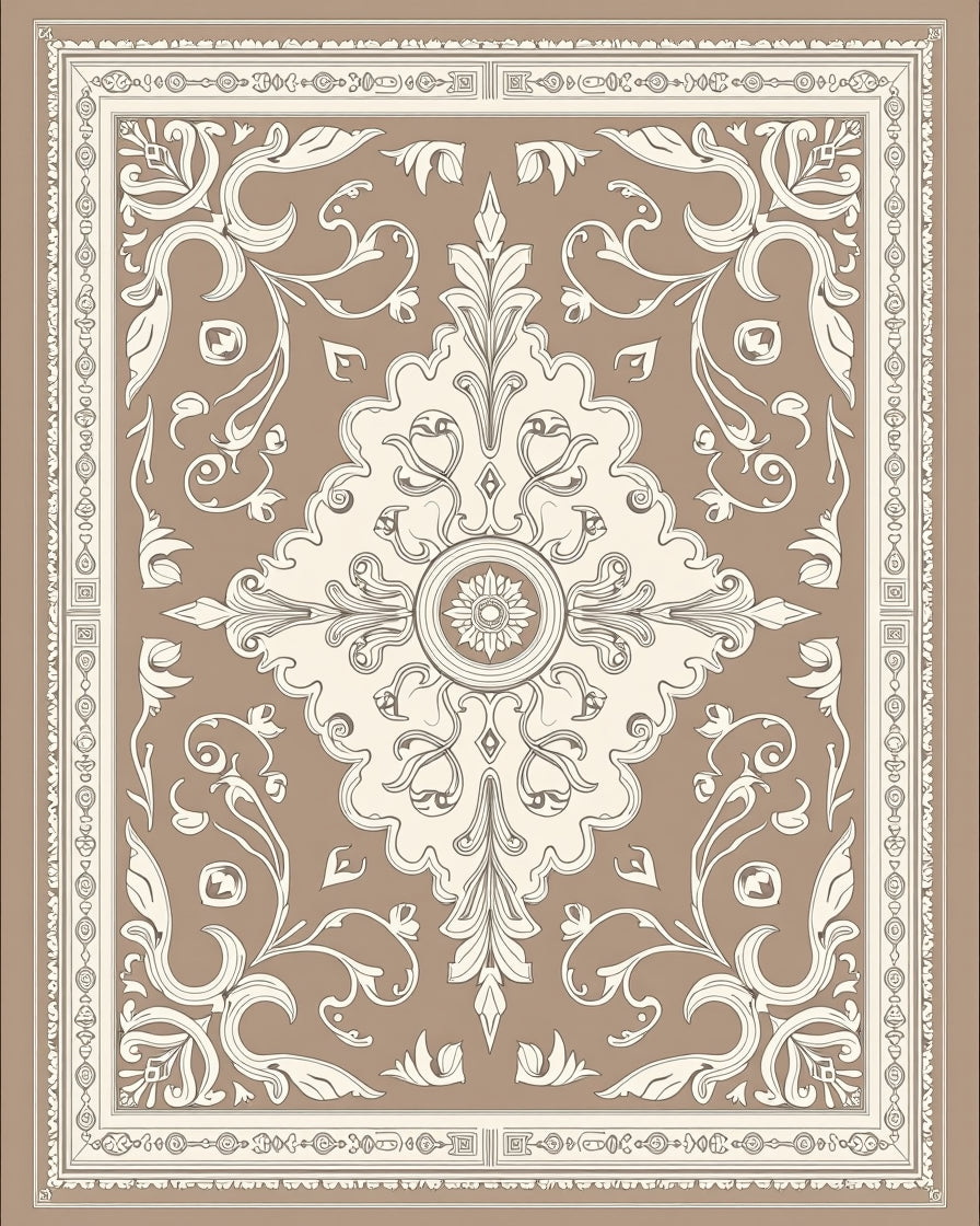 Damask Scrollwork Flourish Elegant Transitional Floor Covering(Brown)