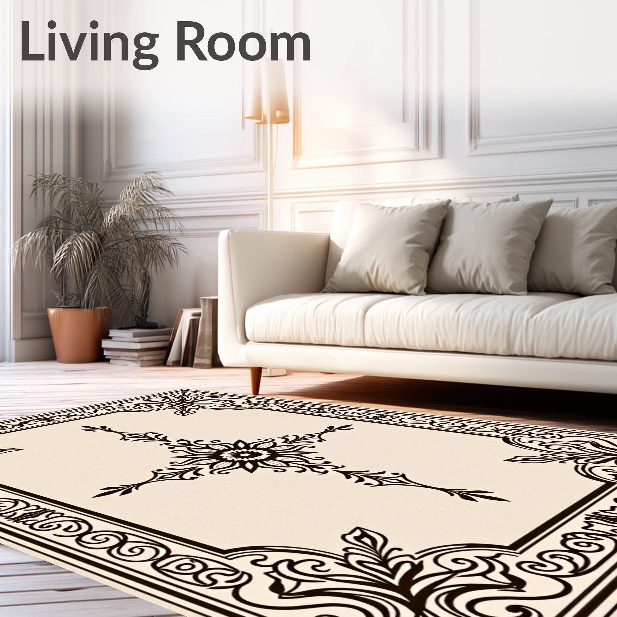 Ultra Soft Area Rug, Non Slip, Stain Resistant, Washable Area Rugs for Living Room, Bedroom, Damask Swirl Baroque Elaborate Luxurious Symphony(Ivory) Overview: