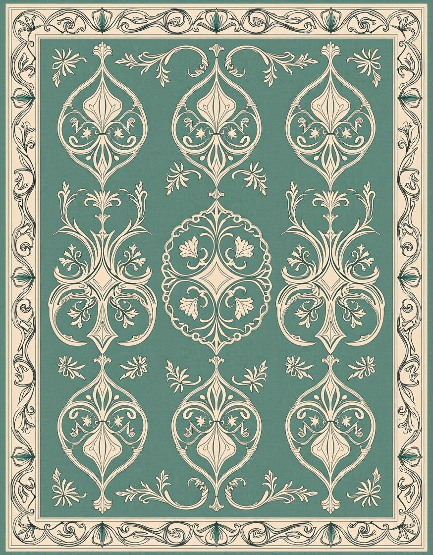 Damask Trellis with Stylized Petal Arabesque and Delicate Vines(Teal)