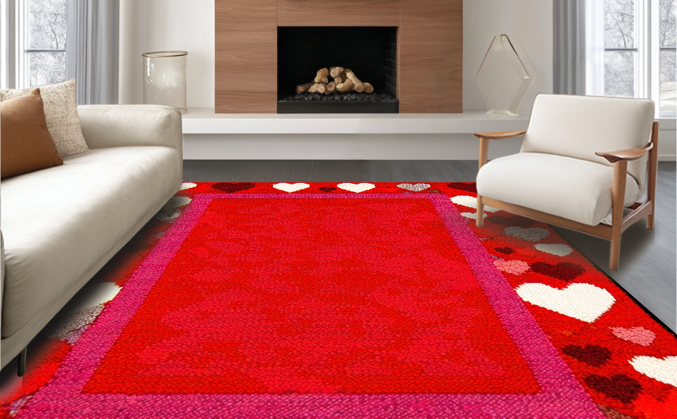 Ultra Soft Area Rug, Non Slip, Stain Resistant, Washable Area Rugs for Living Room, Bedroom, Daring Artistic Visual Expression(Red) Overview: