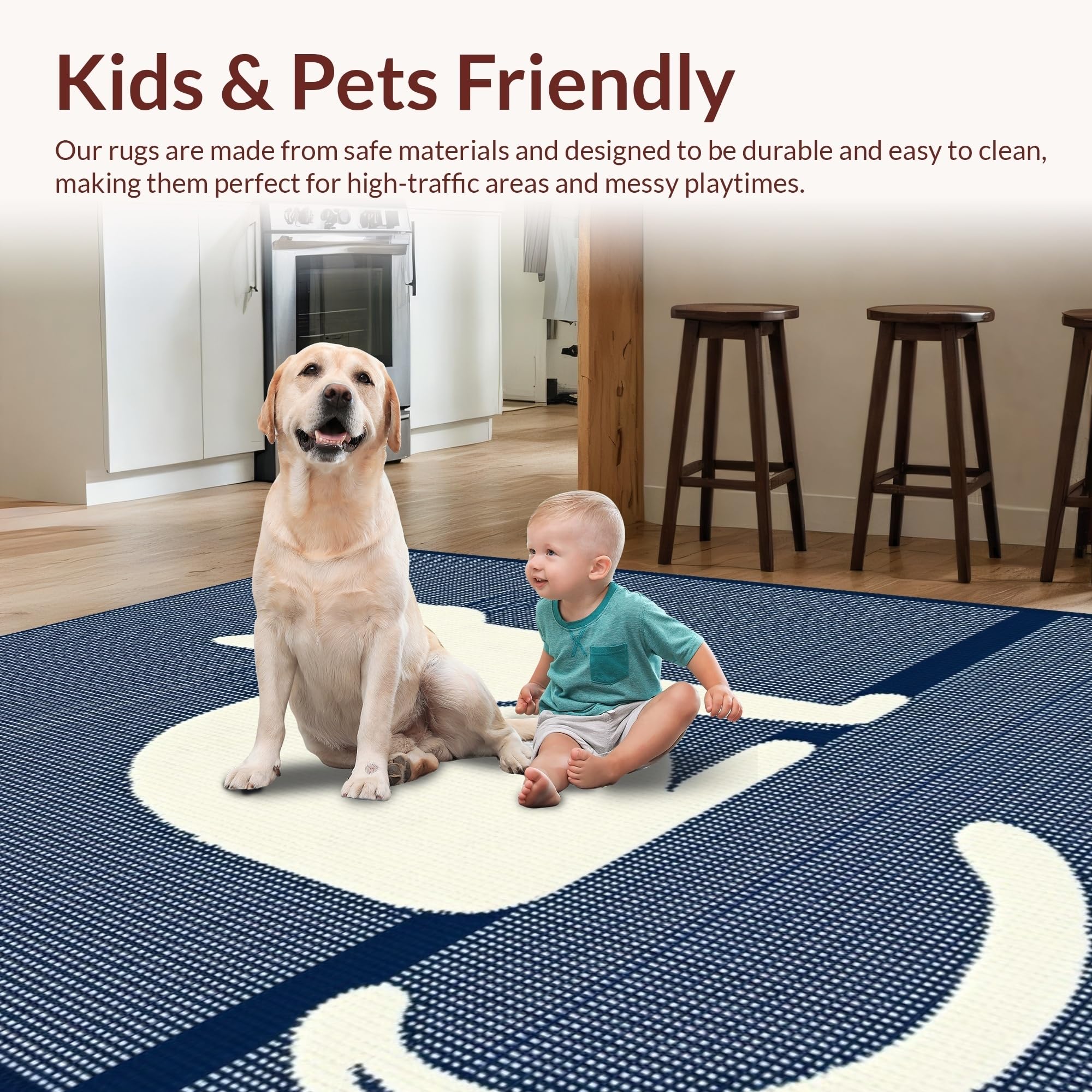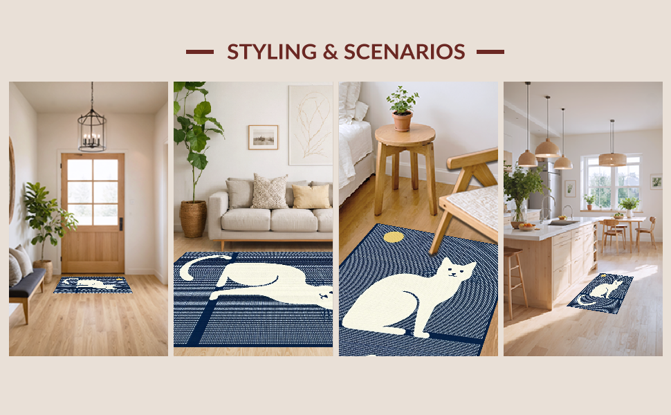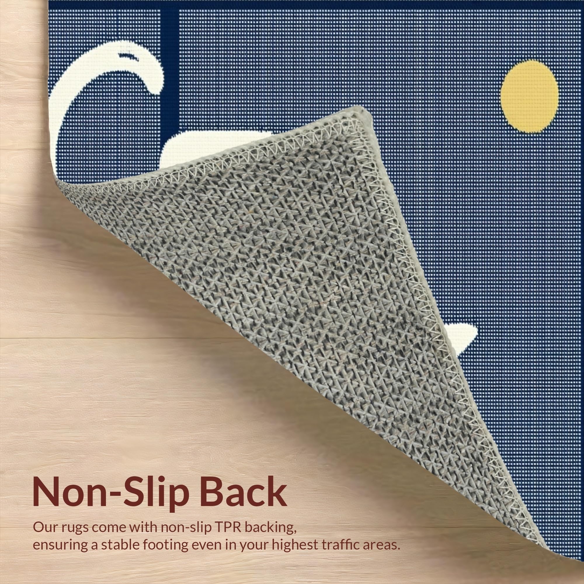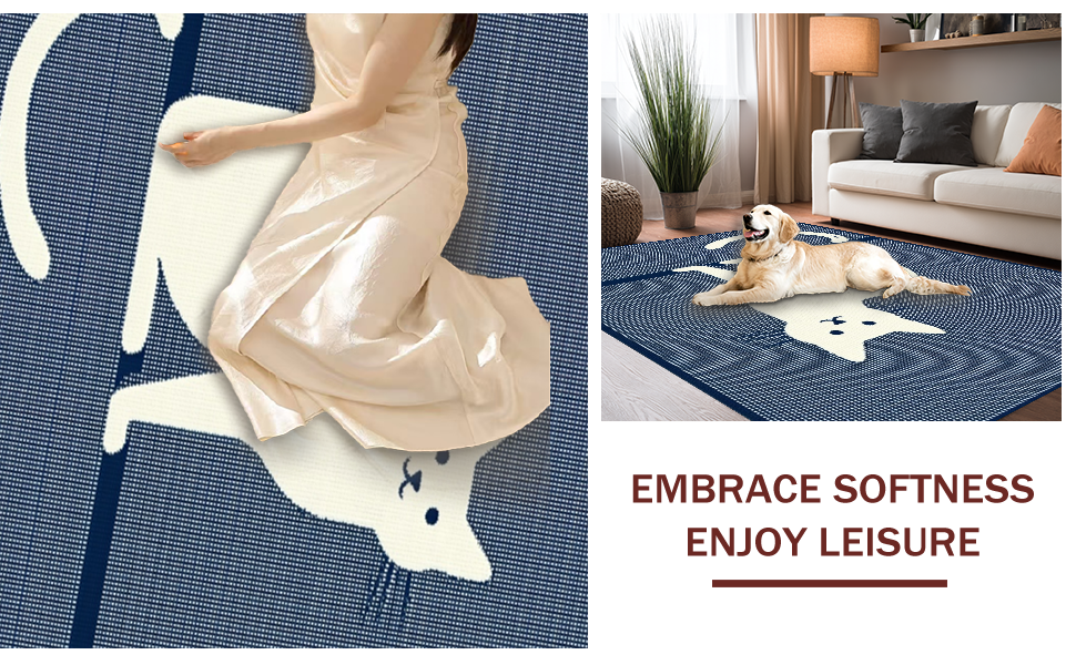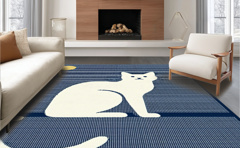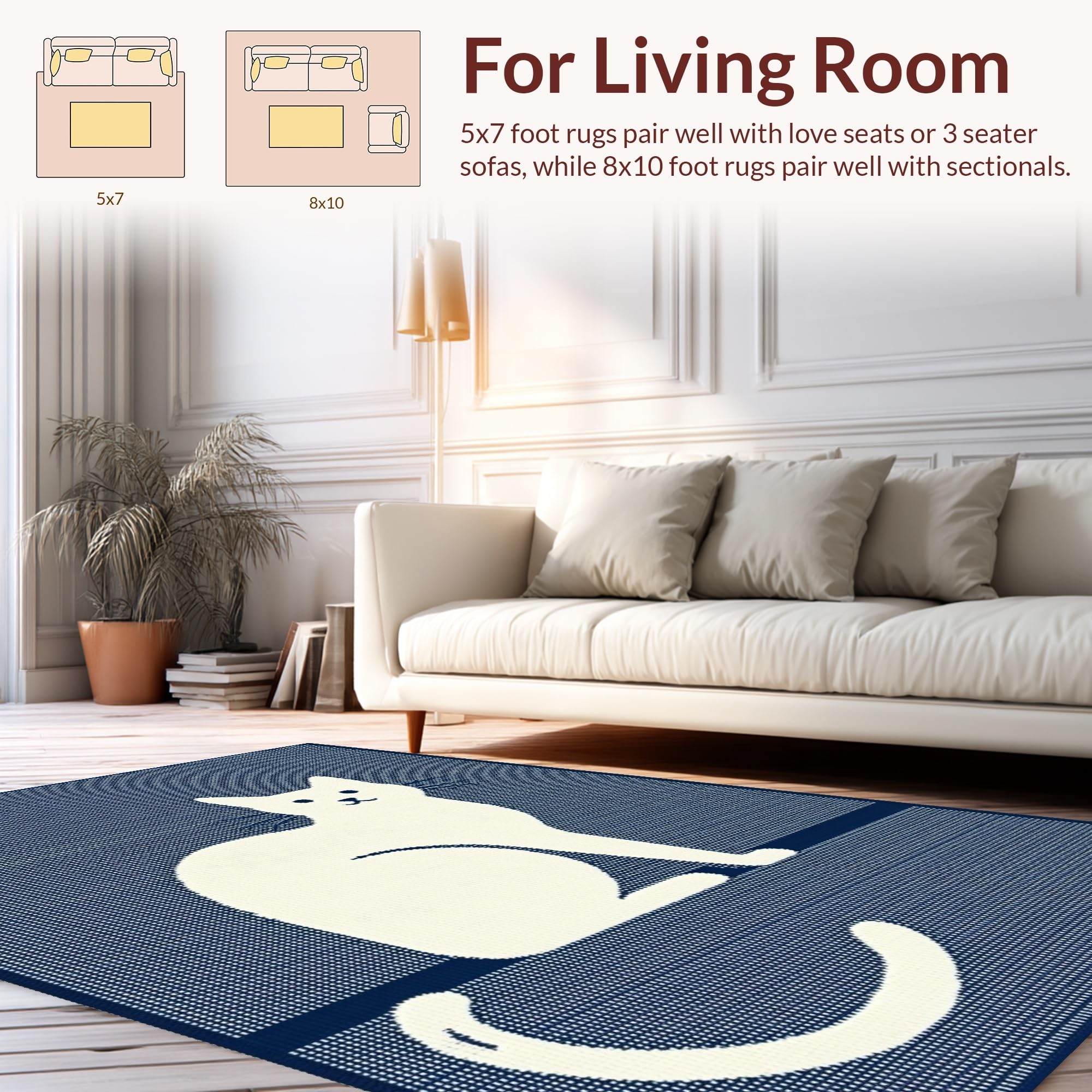 Ultra Soft Area Rug, Non Slip, Stain Resistant, Washable Area Rugs for Living Room, Bedroom, Dark Blue Humorous Cat Design(Blue) Overview: