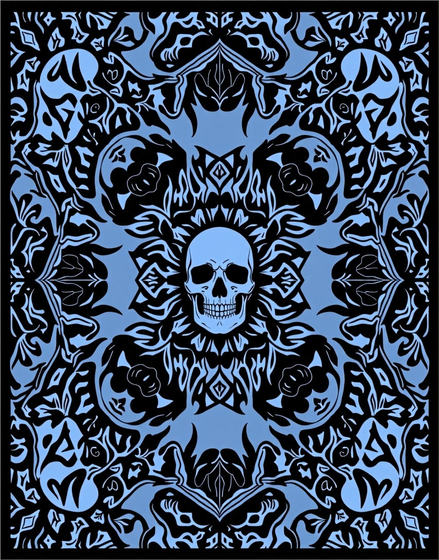 Dark Floral Skull Garden with Mysterious Botanical Accents(Blue)