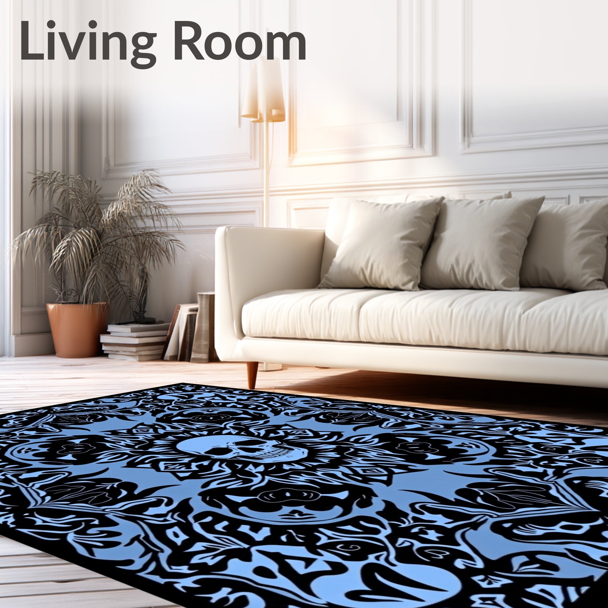 Ultra Soft Area Rug, Non Slip, Stain Resistant, Washable Area Rugs for Living Room, Bedroom, Dark Floral Skull Garden with Mysterious Botanical Accents(Blue) Overview: