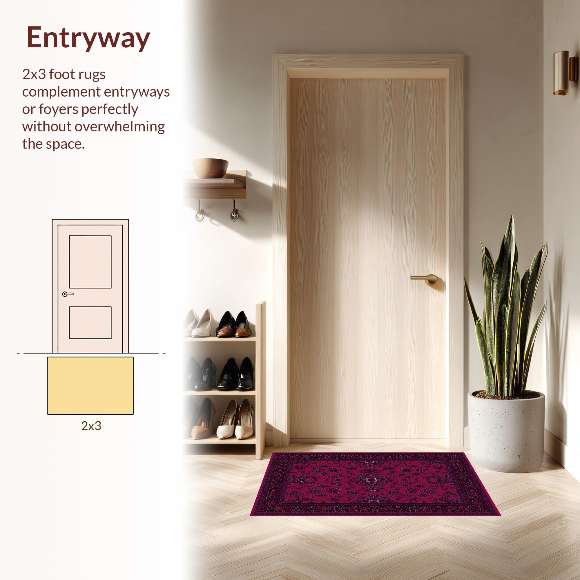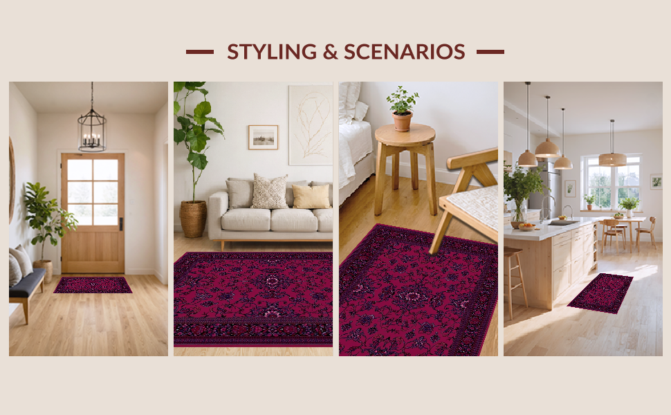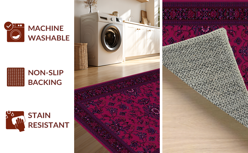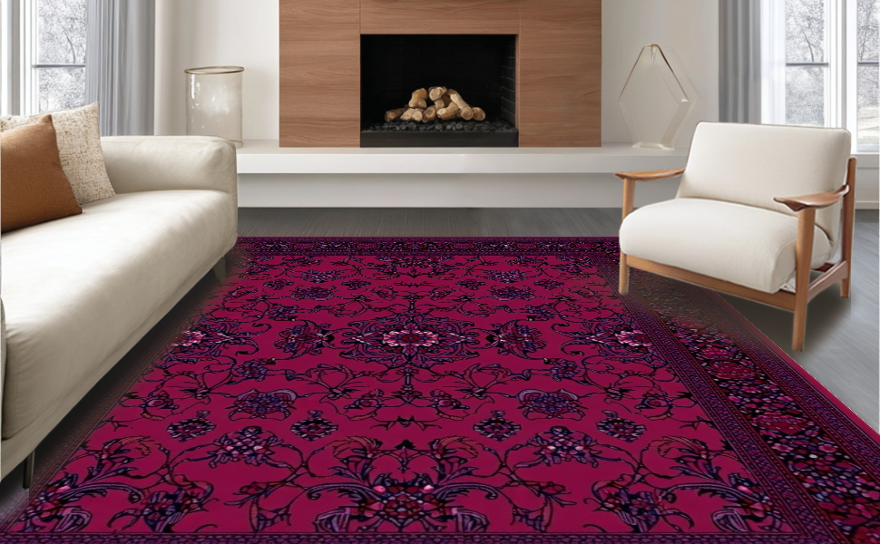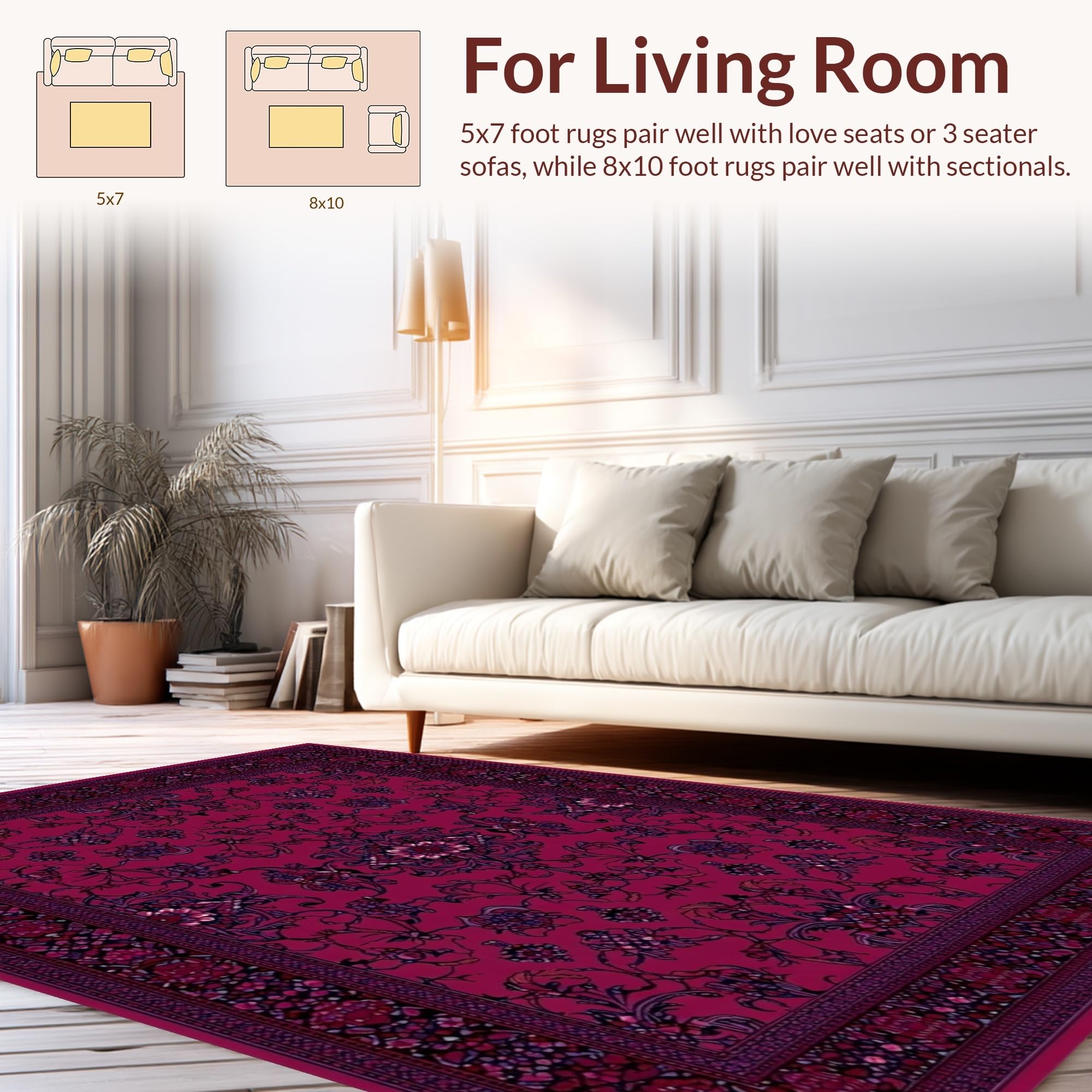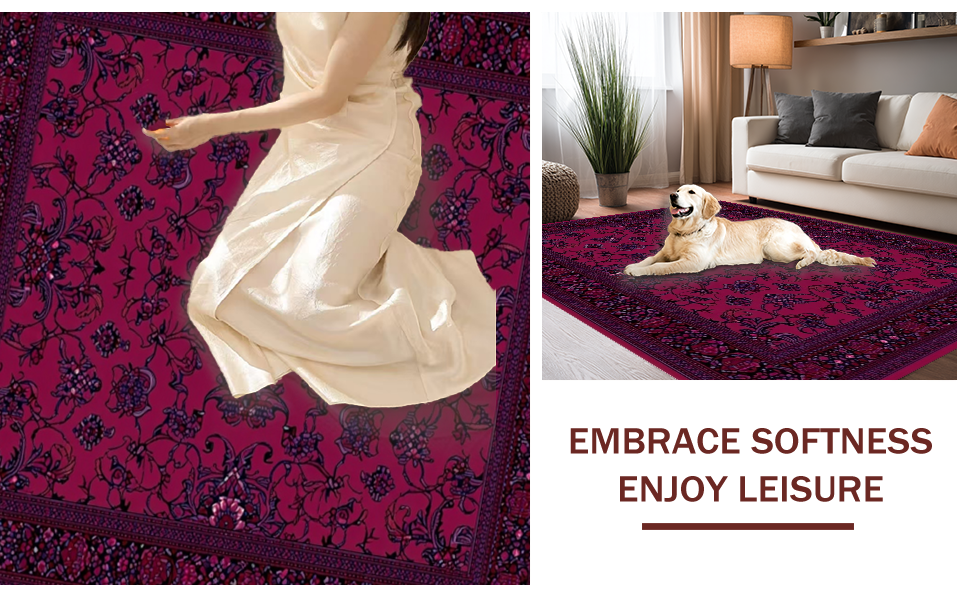 Ultra Soft Area Rug, Non Slip, Stain Resistant, Washable Area Rugs for Living Room, Bedroom, Dark Purple Transitional Charm(Red) Overview: