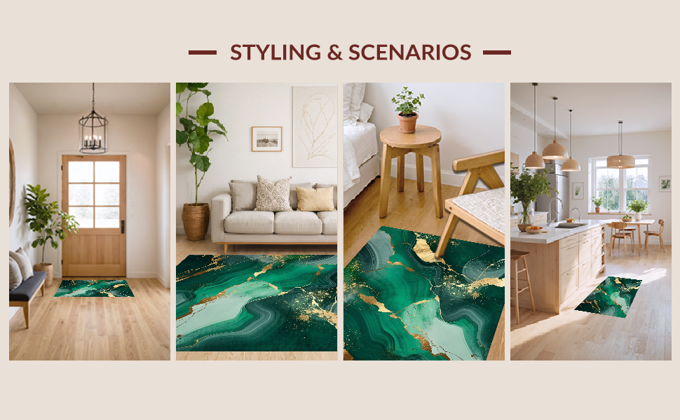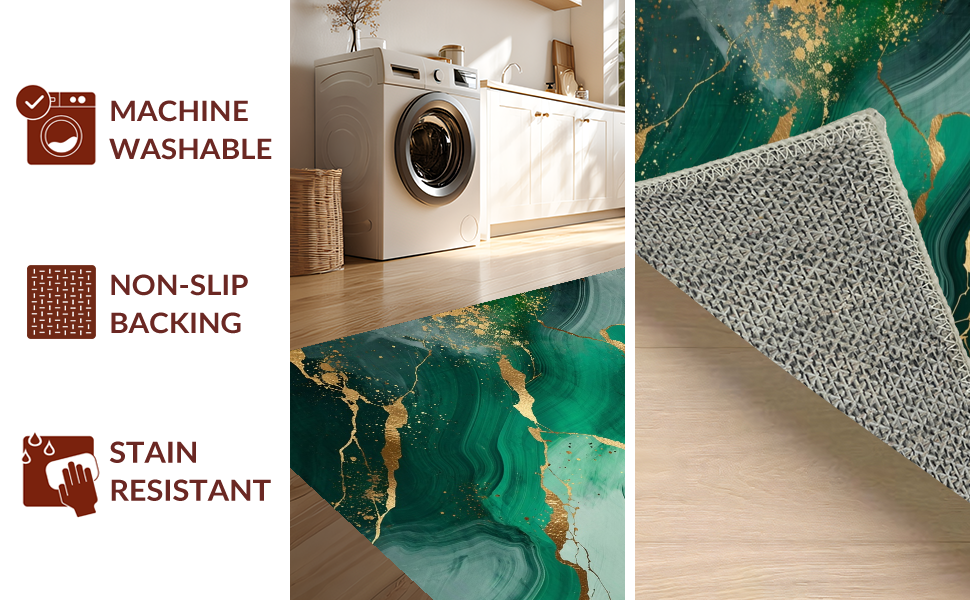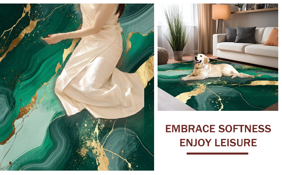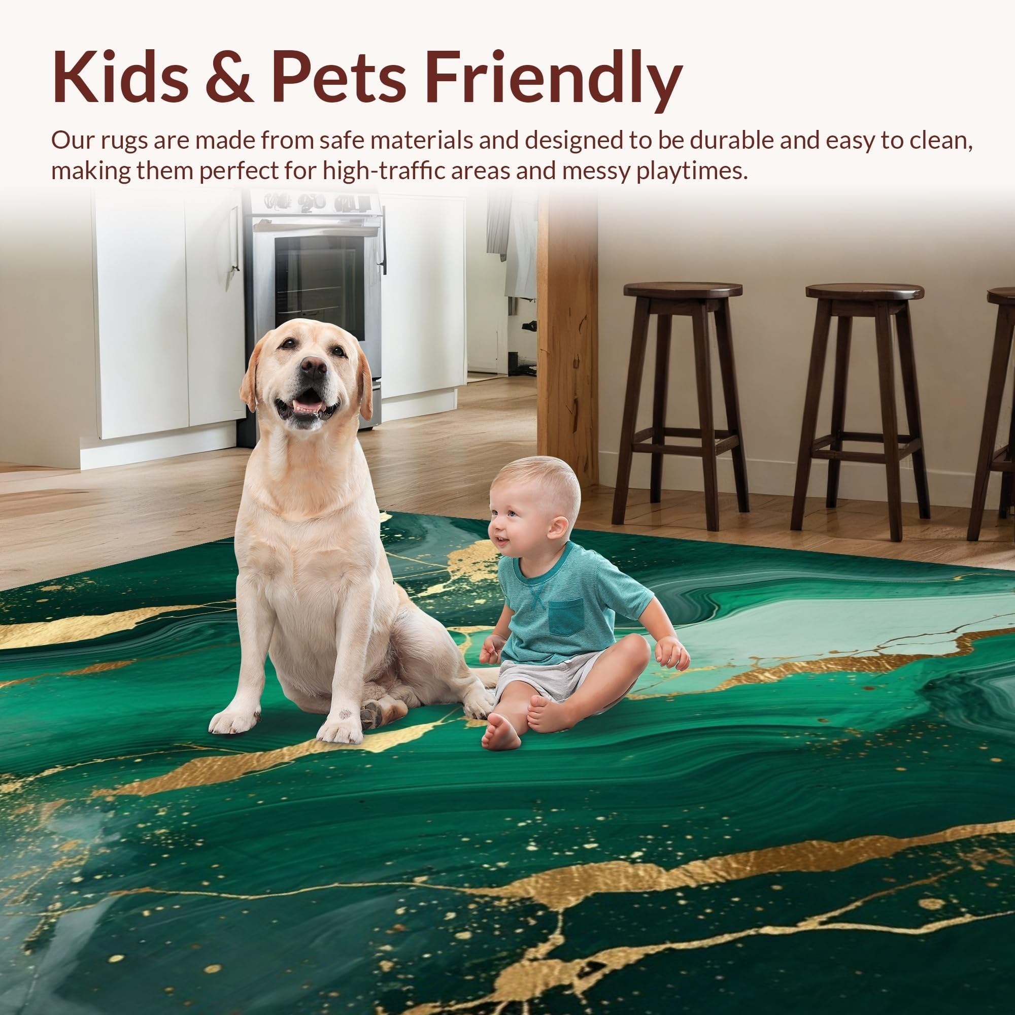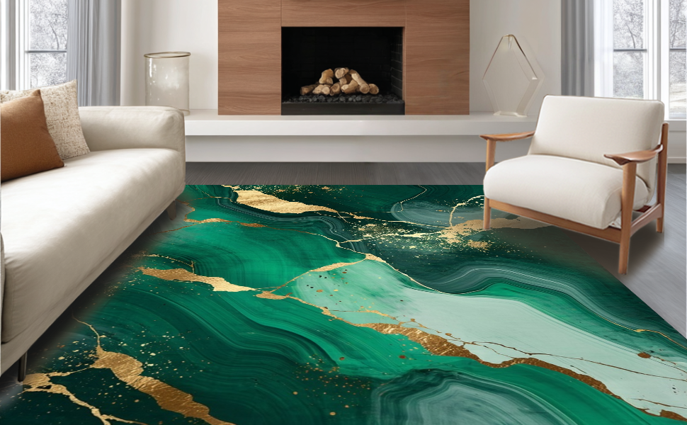Ultra Soft Area Rug, Non Slip, Stain Resistant, Washable Area Rugs for Living Room, Bedroom, Dazzling Gold Marble Visual Appeal(Green) Overview: