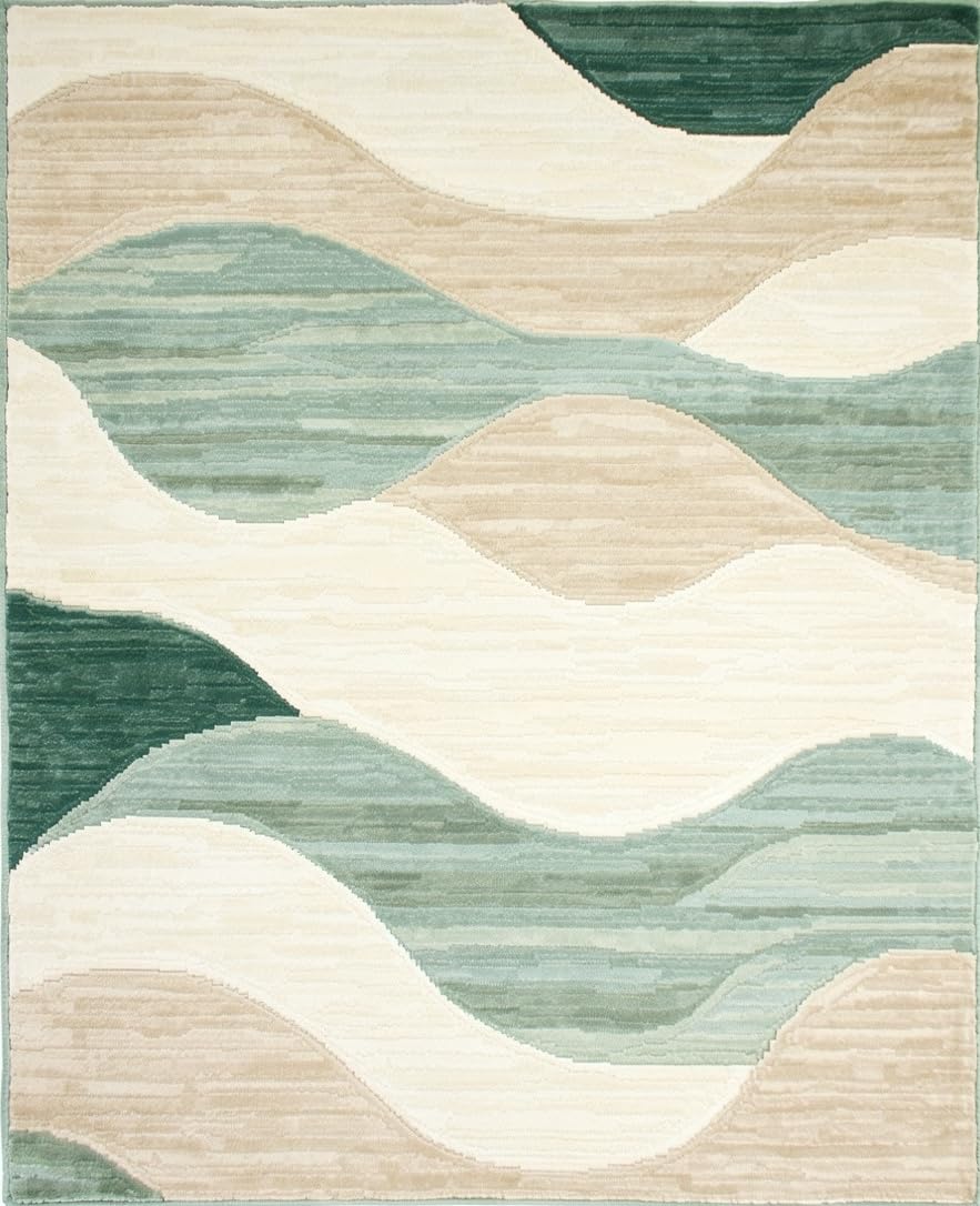 Deck Porch Abstract Wave Beige Sage Green Non Shedding Easy Clean(Beige)