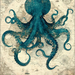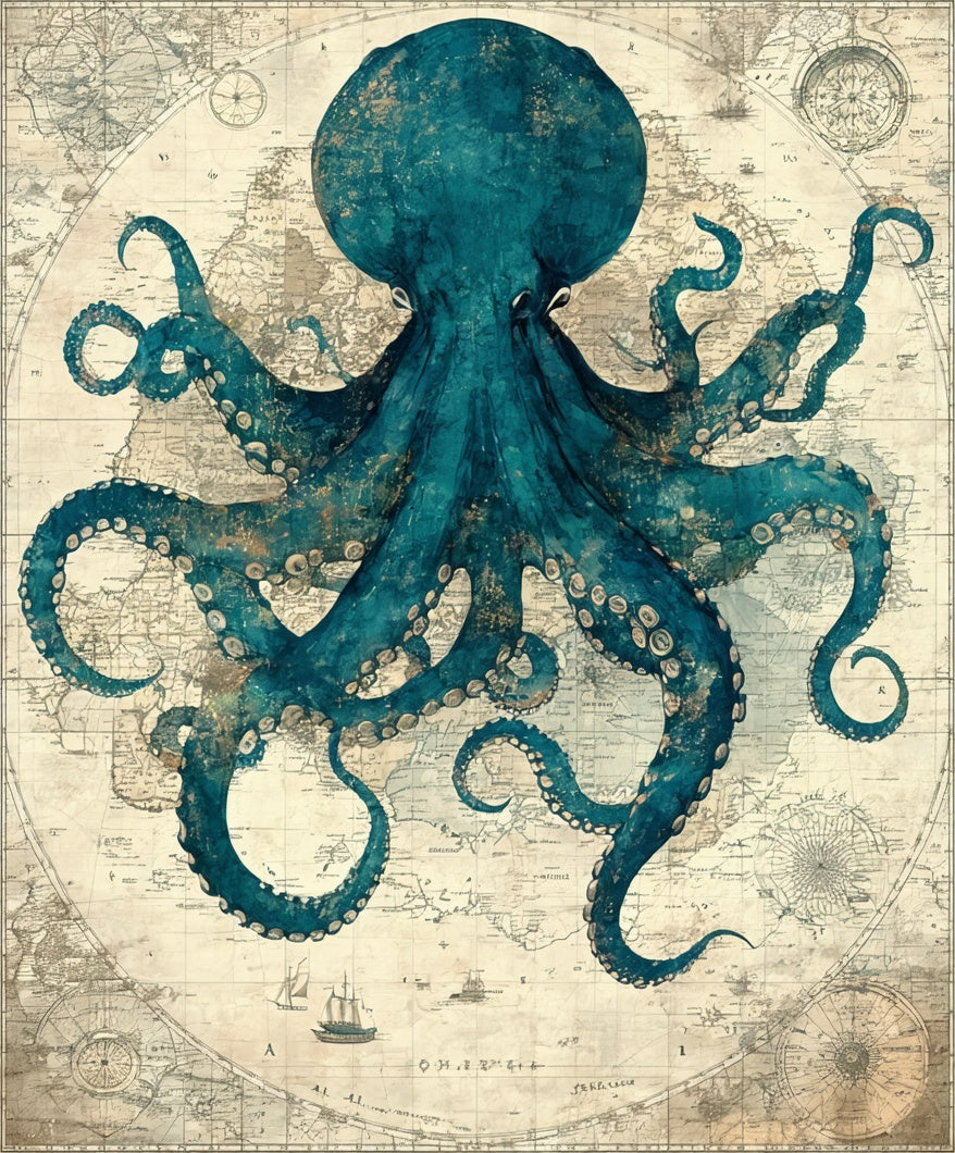 Deep Sea Creature Round With Tentacle Design Nautical Chart(Blue)