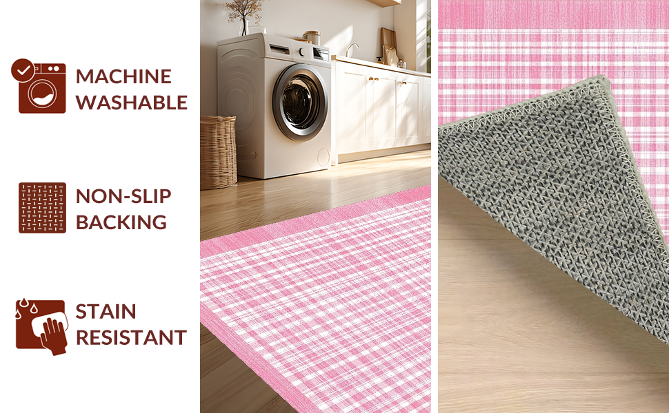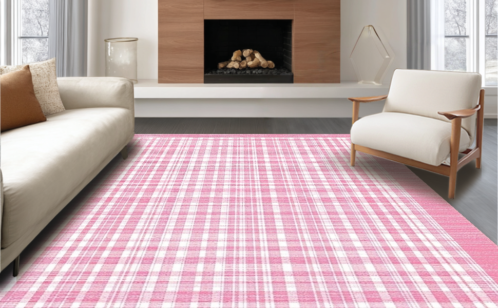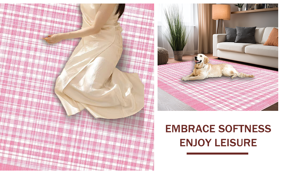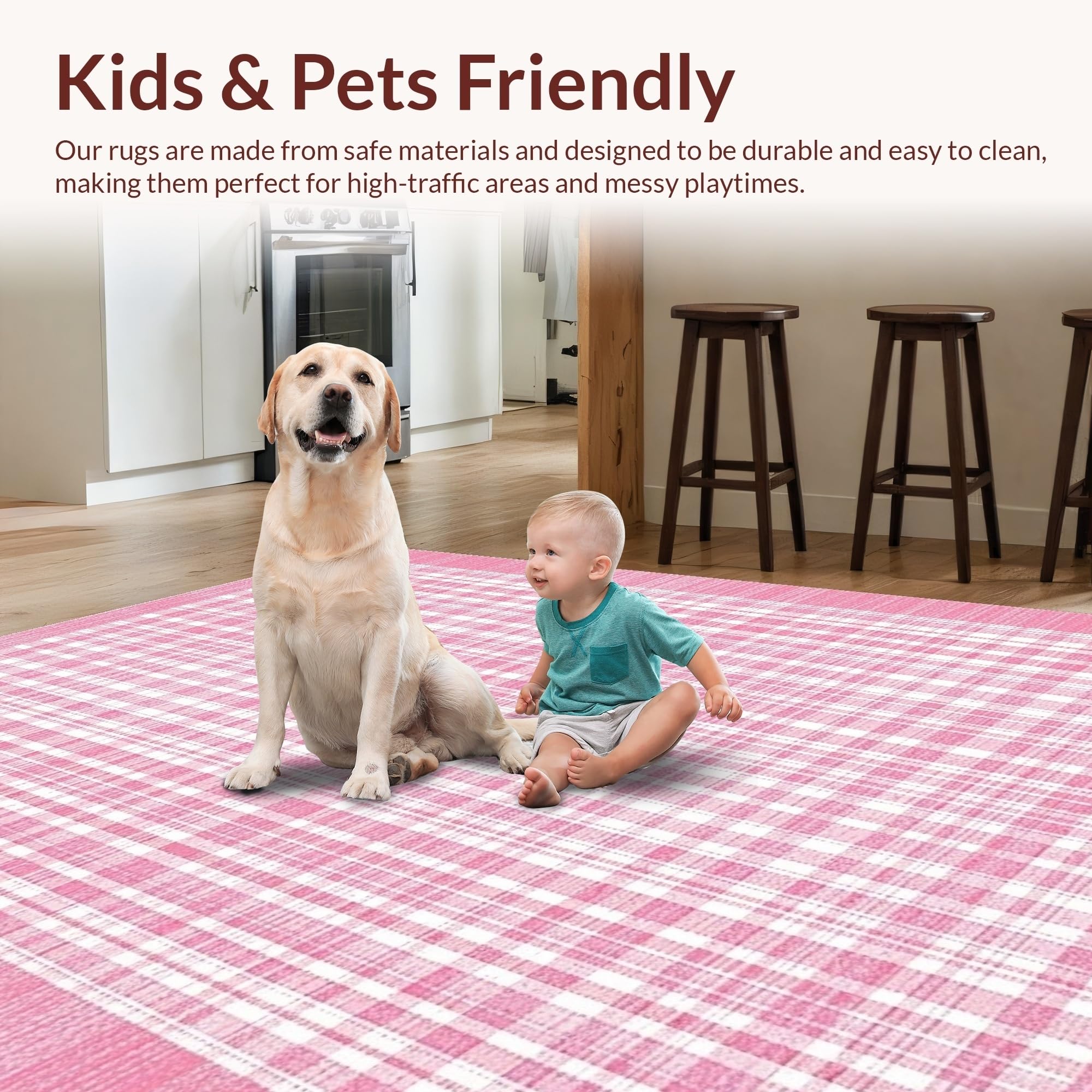Ultra Soft Area Rug, Non Slip, Stain Resistant, Washable Area Rugs for Living Room, Bedroom, Delicate Abstract Checkerboard Style(Pink) Overview: