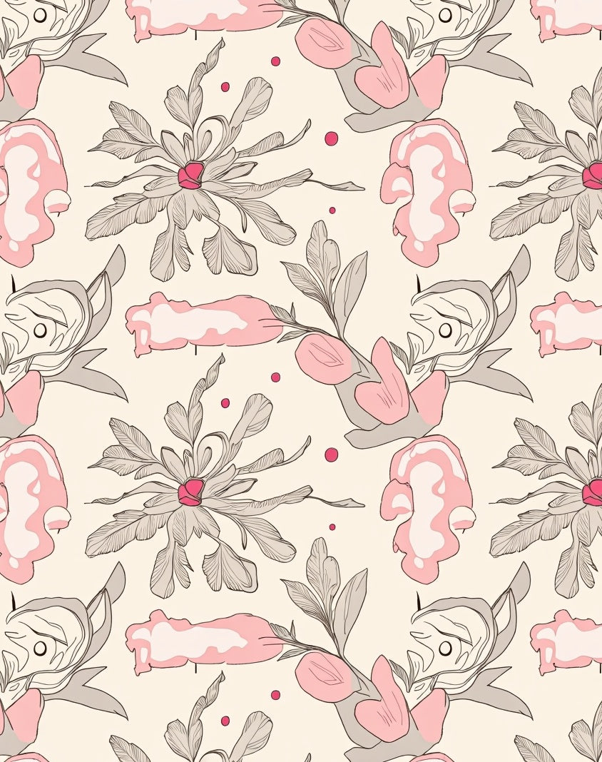 Delicate Blush and Taupe Floral Mosaic with Interlocking Petal Motifs(Pink)