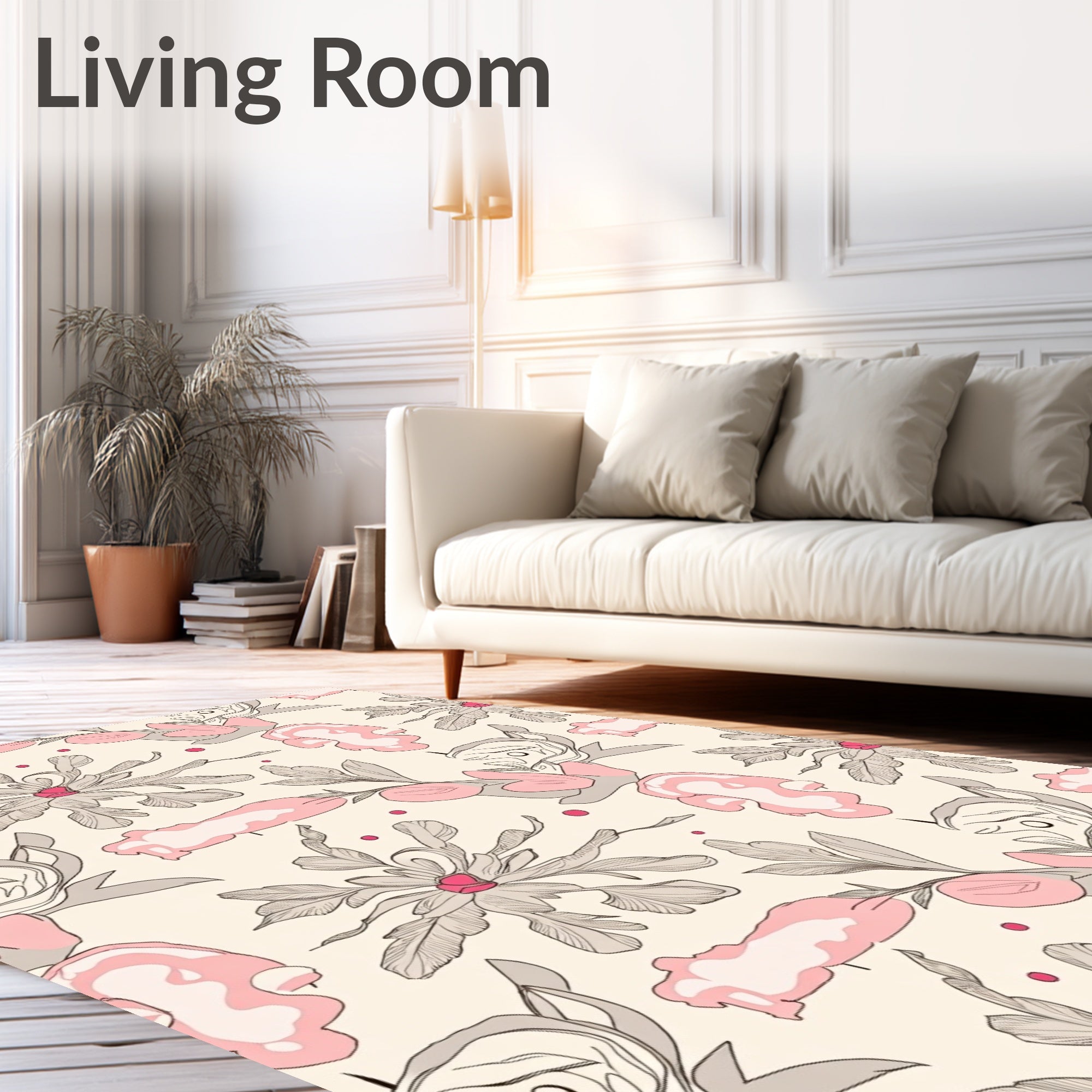 Flatwoven High Traffic Area Rug, Delicate Blush and Taupe Floral Mosaic with Interlocking Petal Motifs, Non Slip, Stain Resistant, Washable Area Rugs for Living Room, Bedroom (Pink) Overview: