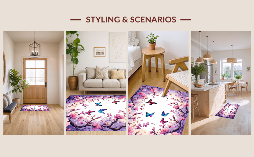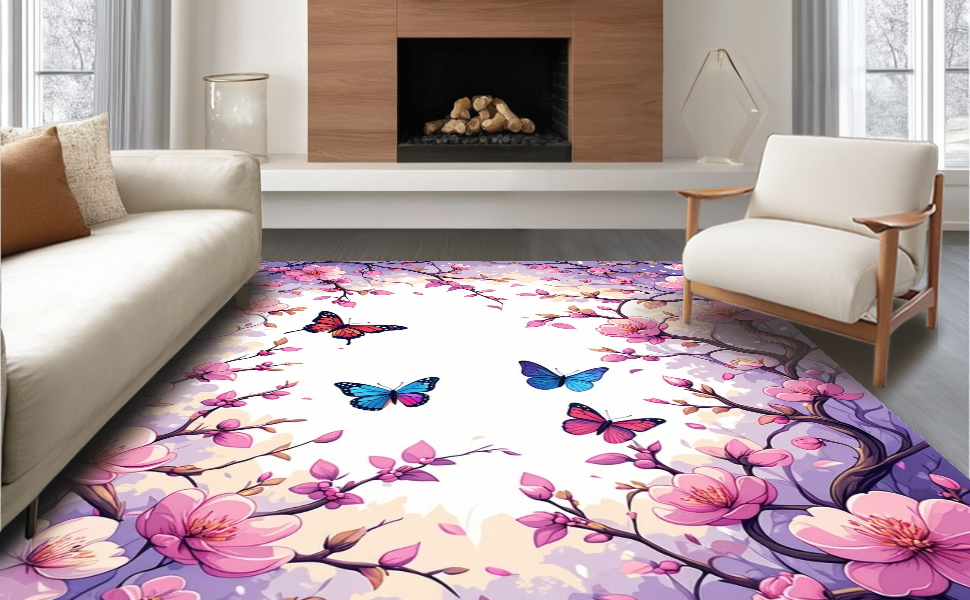 Ultra Soft Area Rug, Non Slip, Stain Resistant, Washable Area Rugs for Living Room, Bedroom, Delicate Butterfly and Floral Fusion(Pink) Overview: