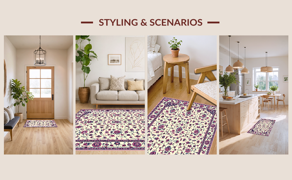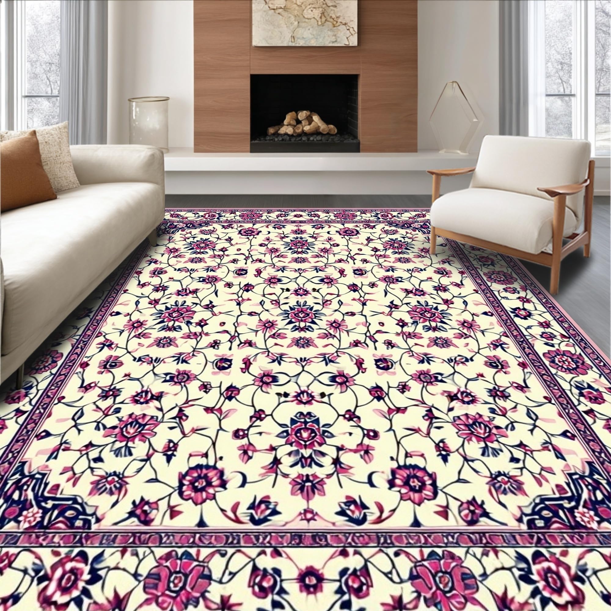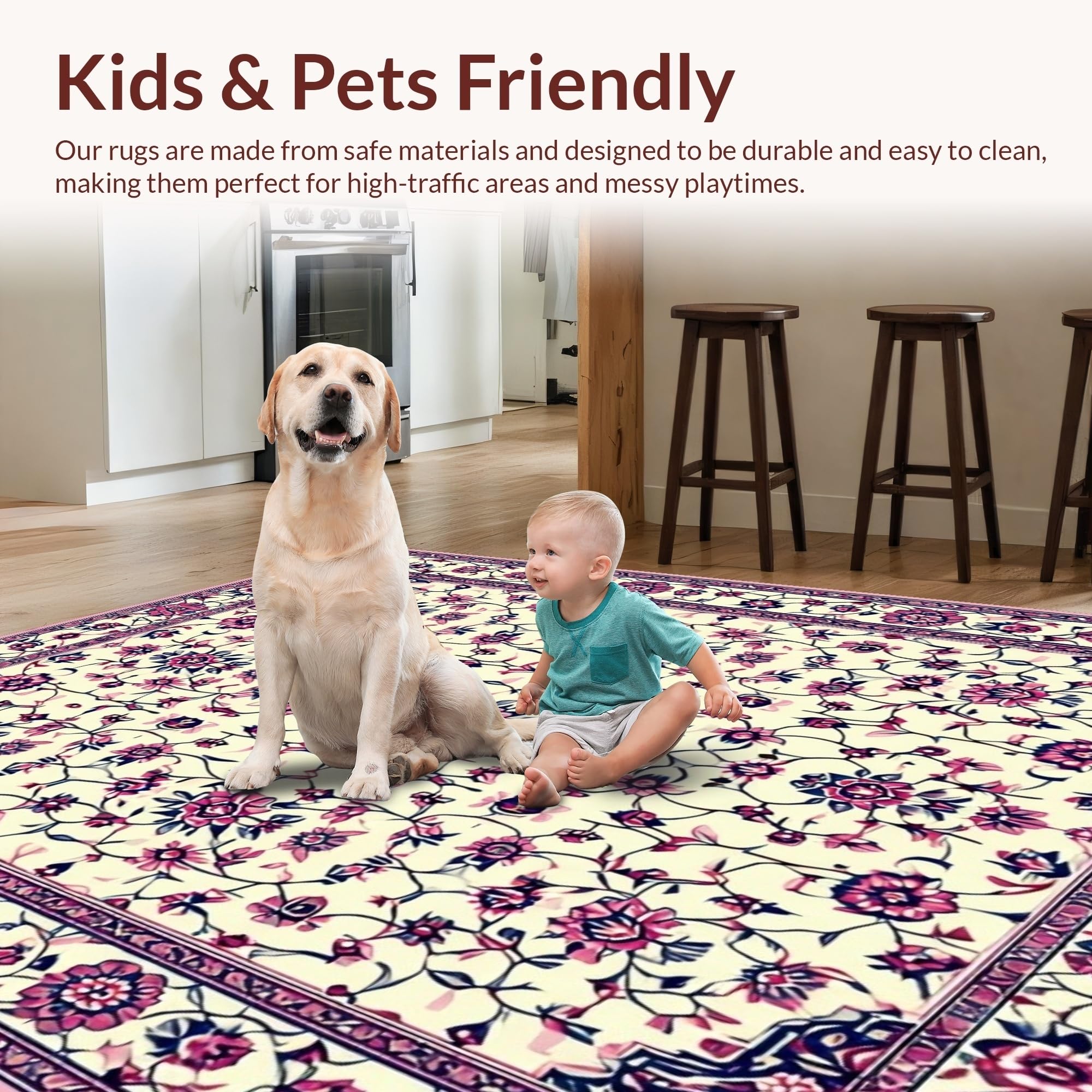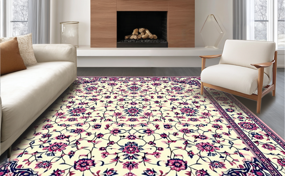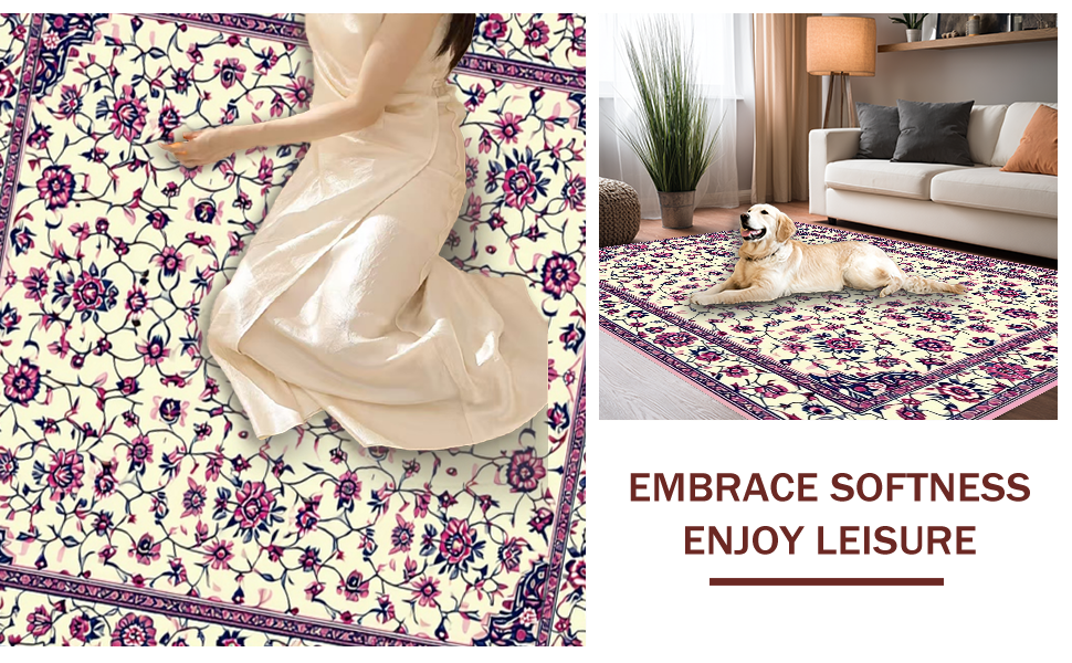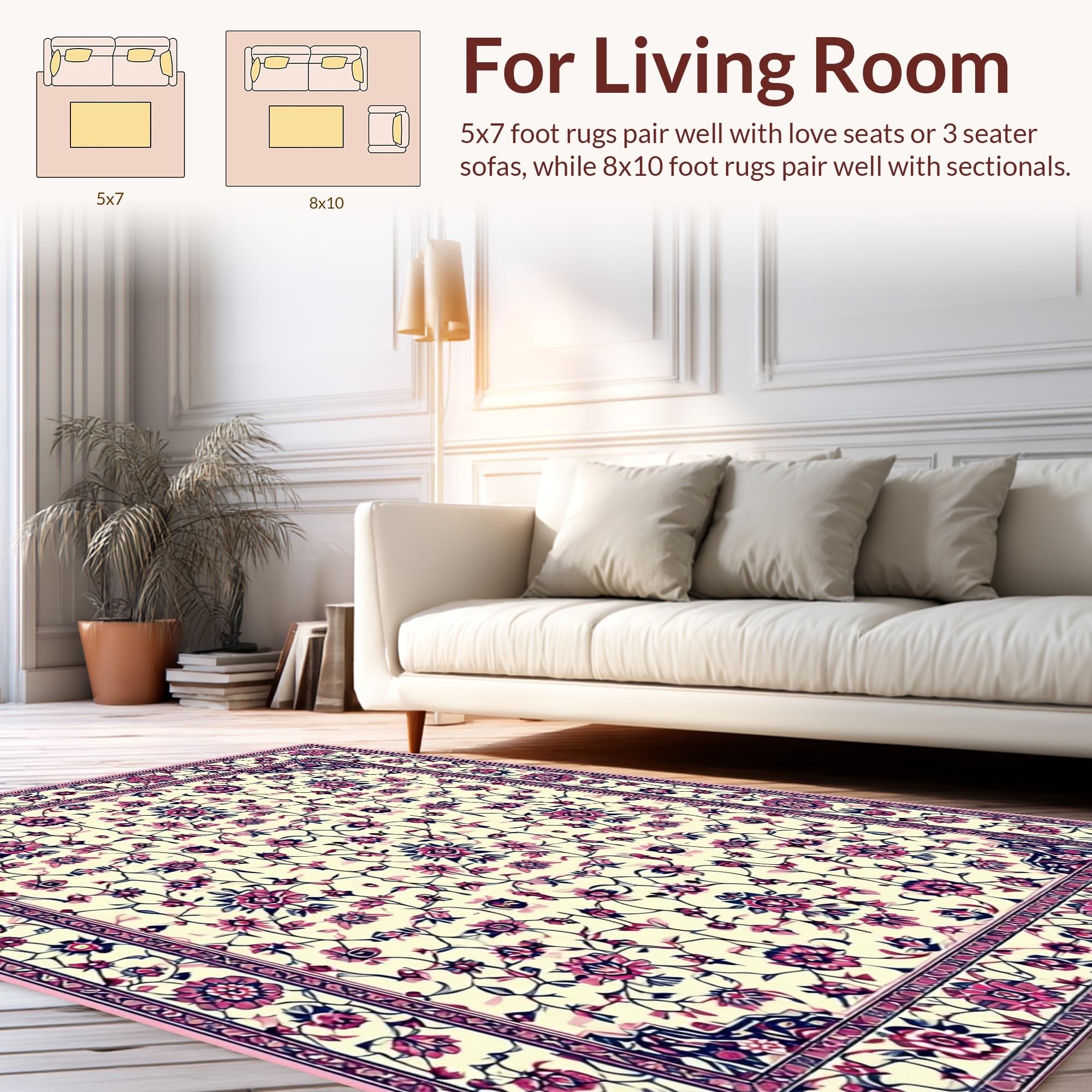 Ultra Soft Area Rug, Non Slip, Stain Resistant, Washable Area Rugs for Living Room, Bedroom, Delicate Contemporary Floral Touch(Beige) Overview: