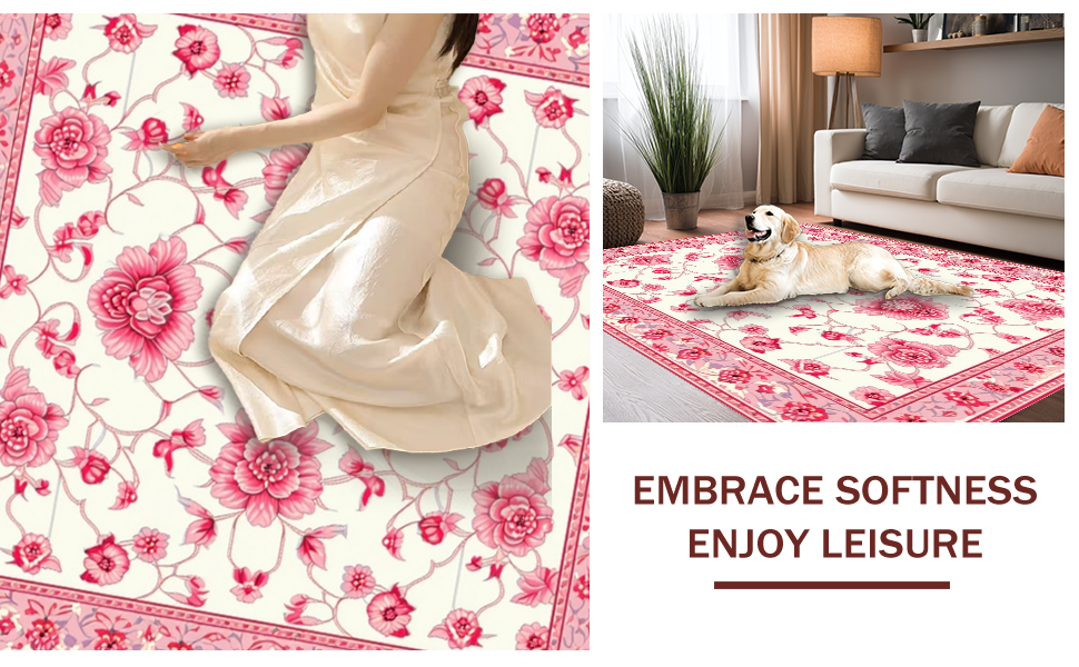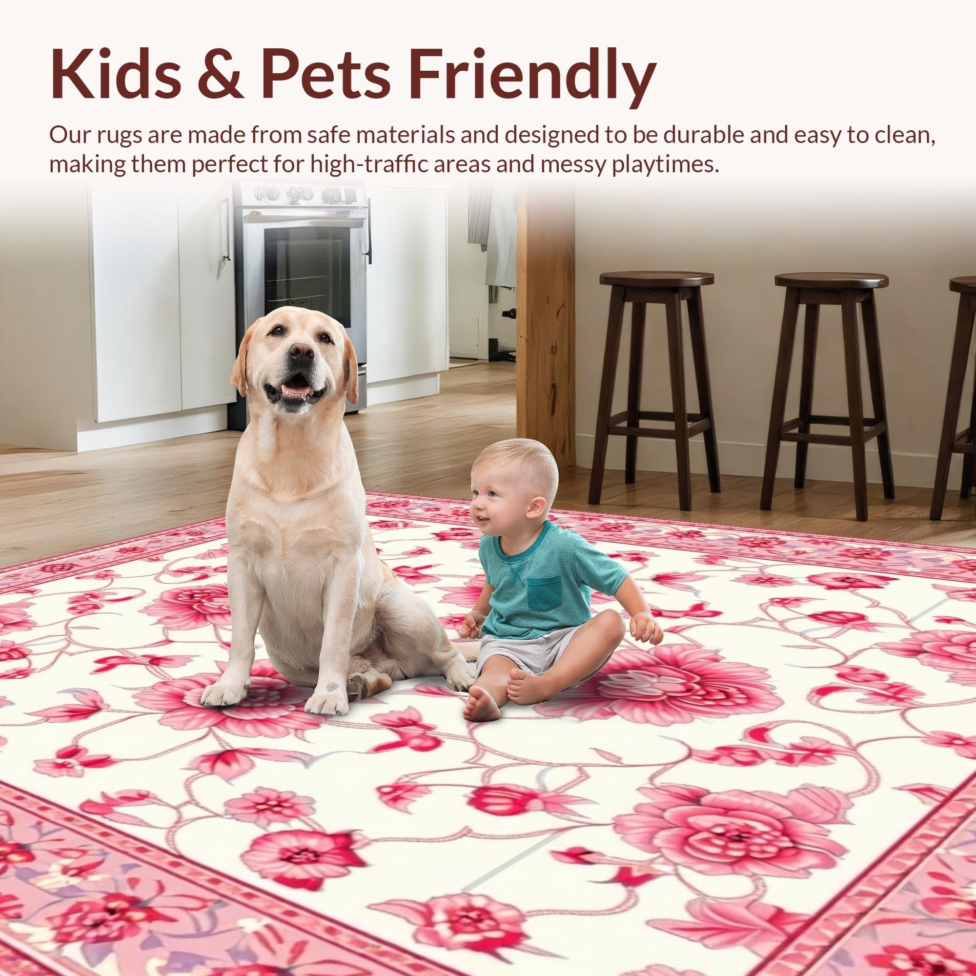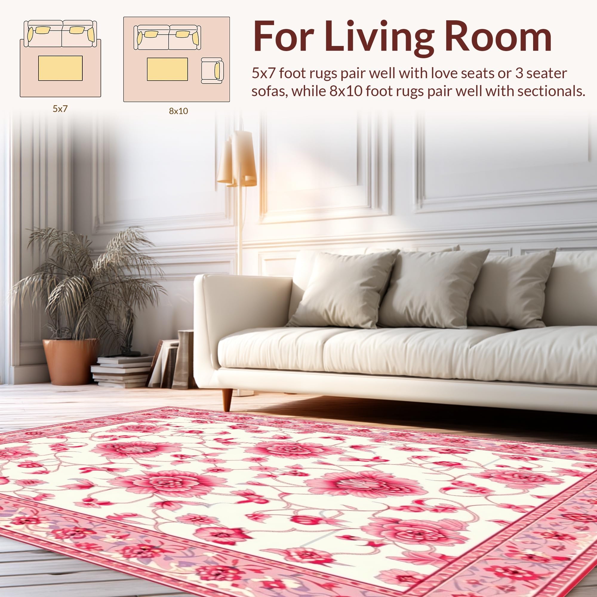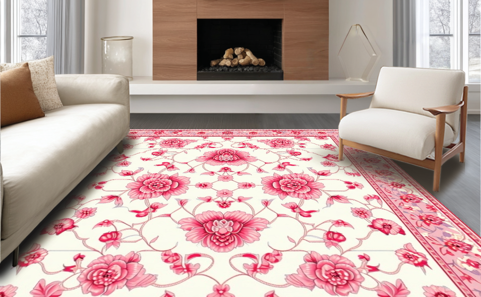 Ultra Soft Area Rug, Non Slip, Stain Resistant, Washable Area Rugs for Living Room, Bedroom, Delicate Cottage Garden Aesthetic(Ivory) Overview: