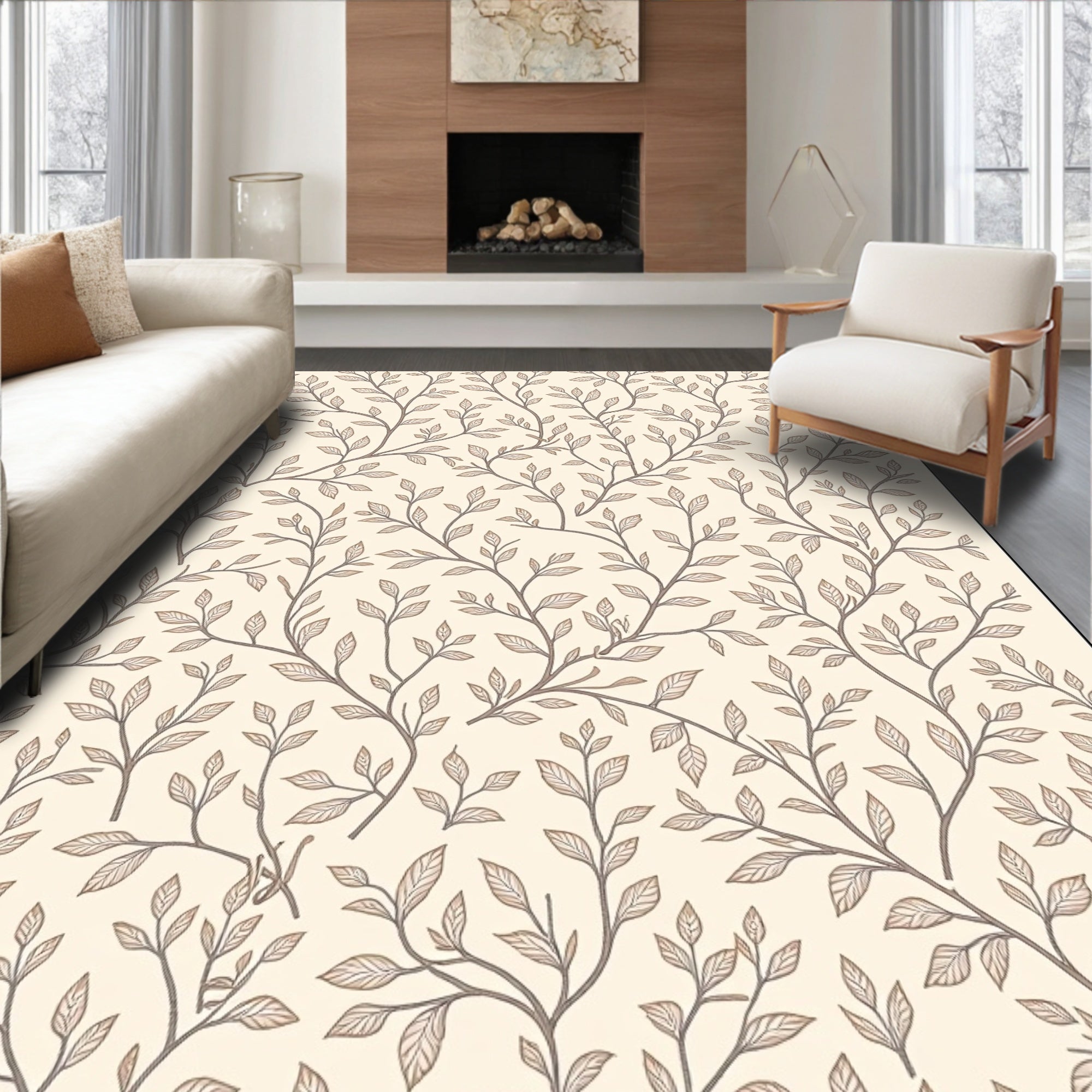 Flatwoven High Traffic Area Rug, Delicate Cottage Garden Motif with Interlocking Floral Vines, Non Slip, Stain Resistant, Washable Area Rugs for Living Room, Bedroom (Beige) Overview: