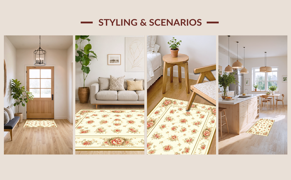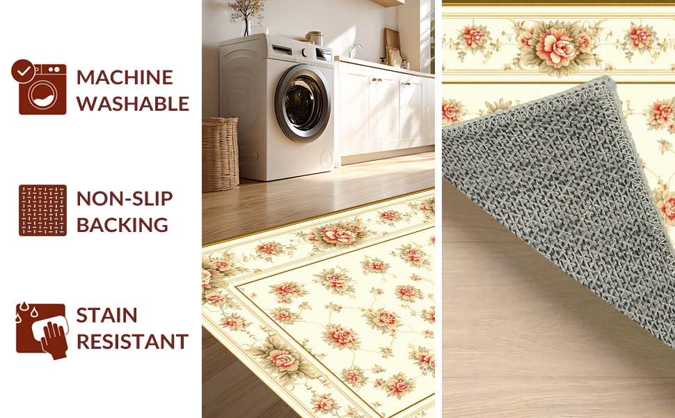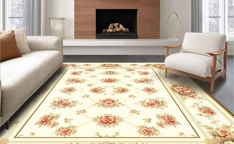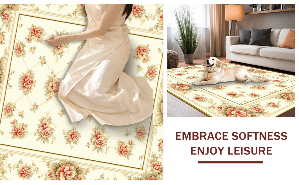 Ultra Soft Area Rug, Non Slip, Stain Resistant, Washable Area Rugs for Living Room, Bedroom, Delicate Cream Petal Motif(Beige) Overview: