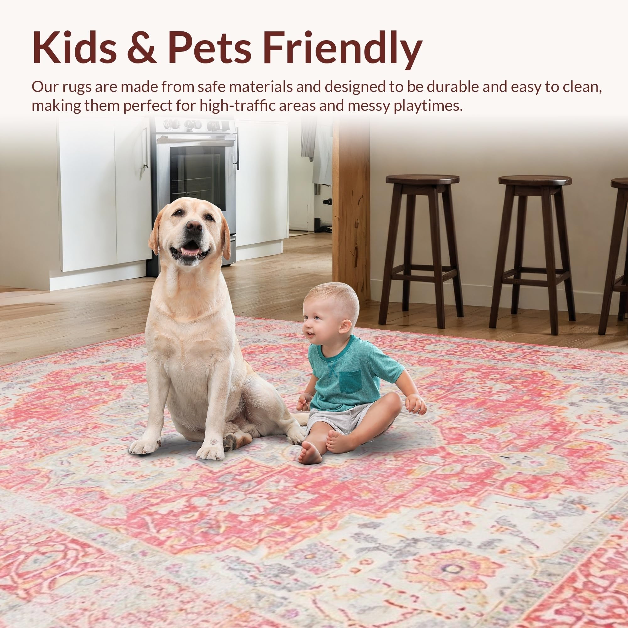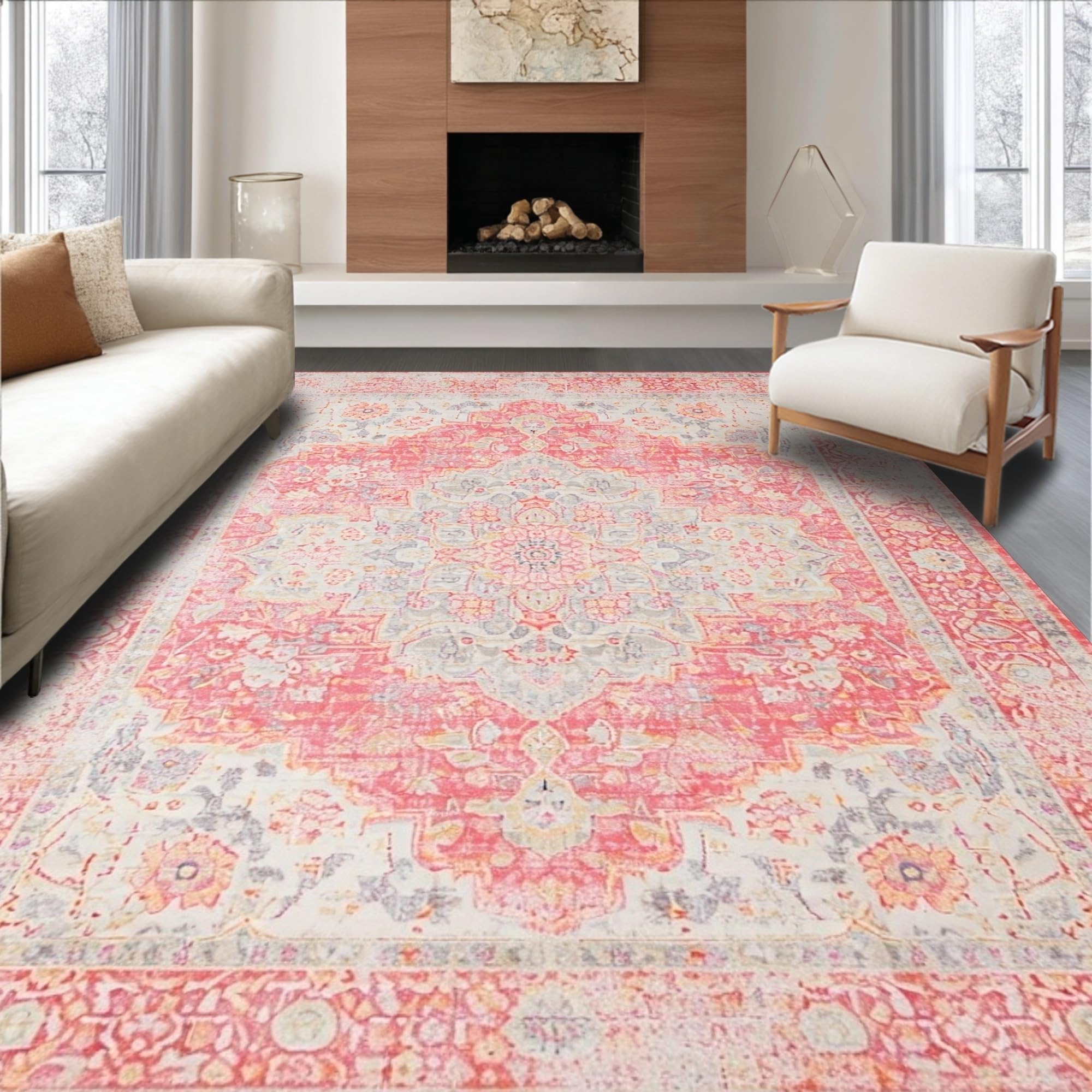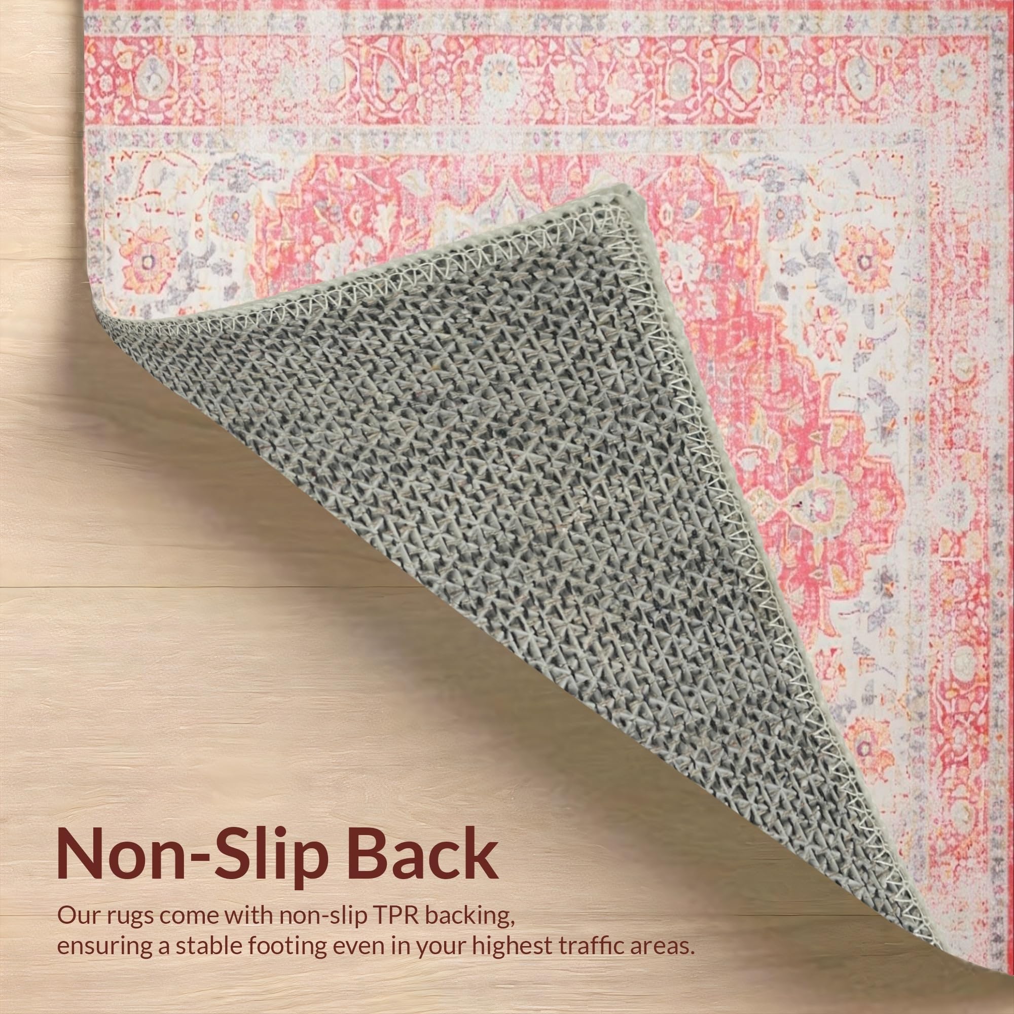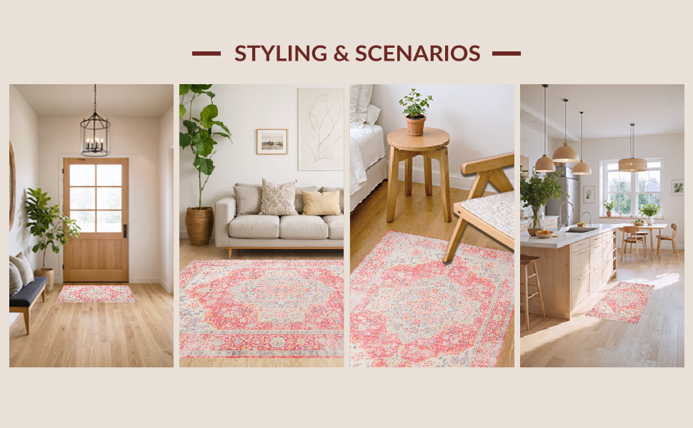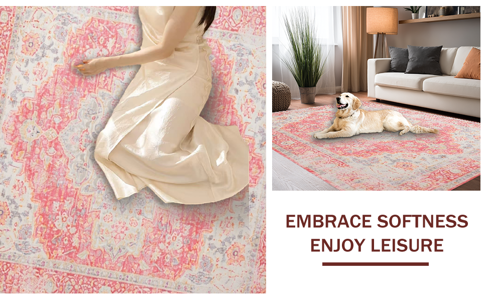 Ultra Soft Area Rug, Non Slip, Stain Resistant, Washable Area Rugs for Living Room, Bedroom, Delicate Earthy Bloom Pattern(Pink) Overview: