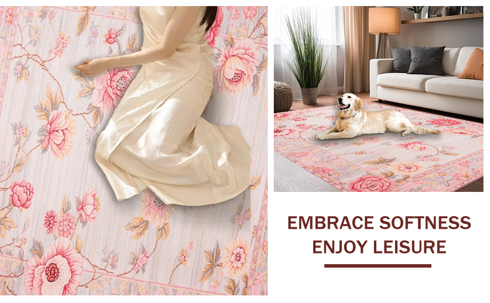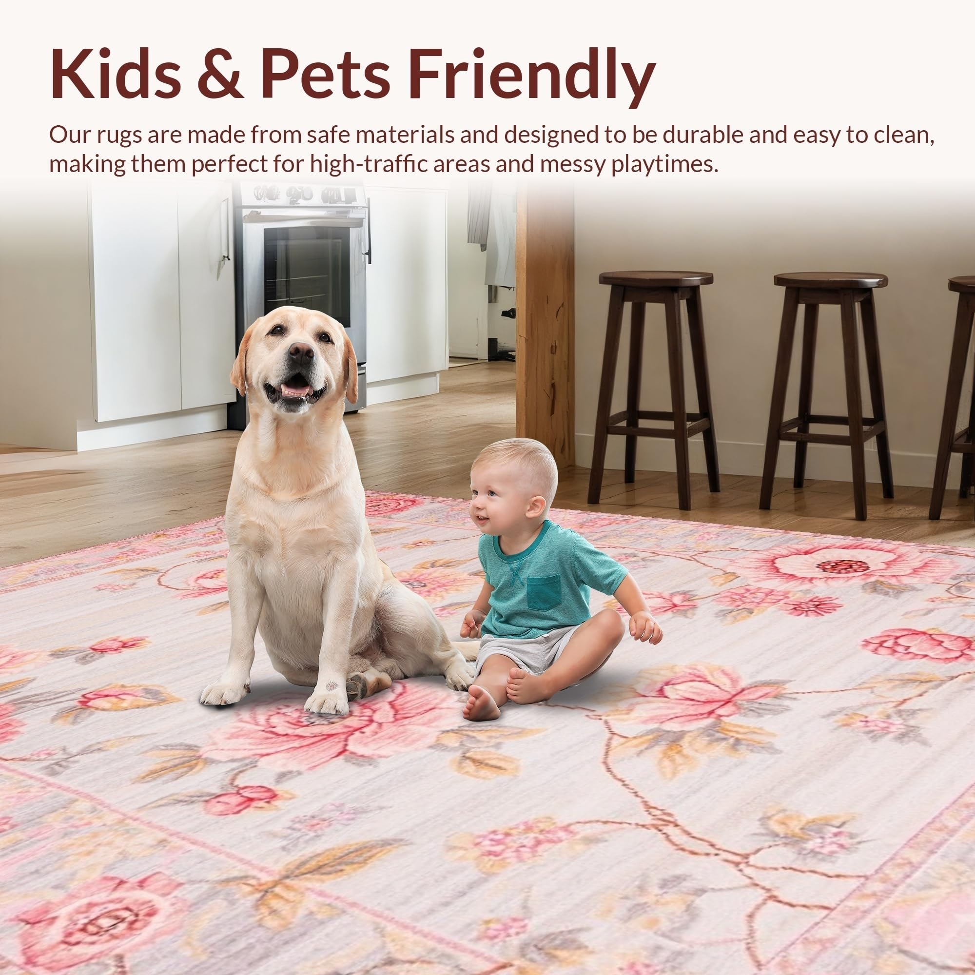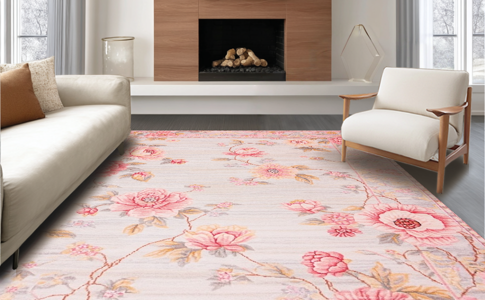 Ultra Soft Area Rug, Non Slip, Stain Resistant, Washable Area Rugs for Living Room, Bedroom, Delicate Floral Fantasy Theme(Beige) Overview: