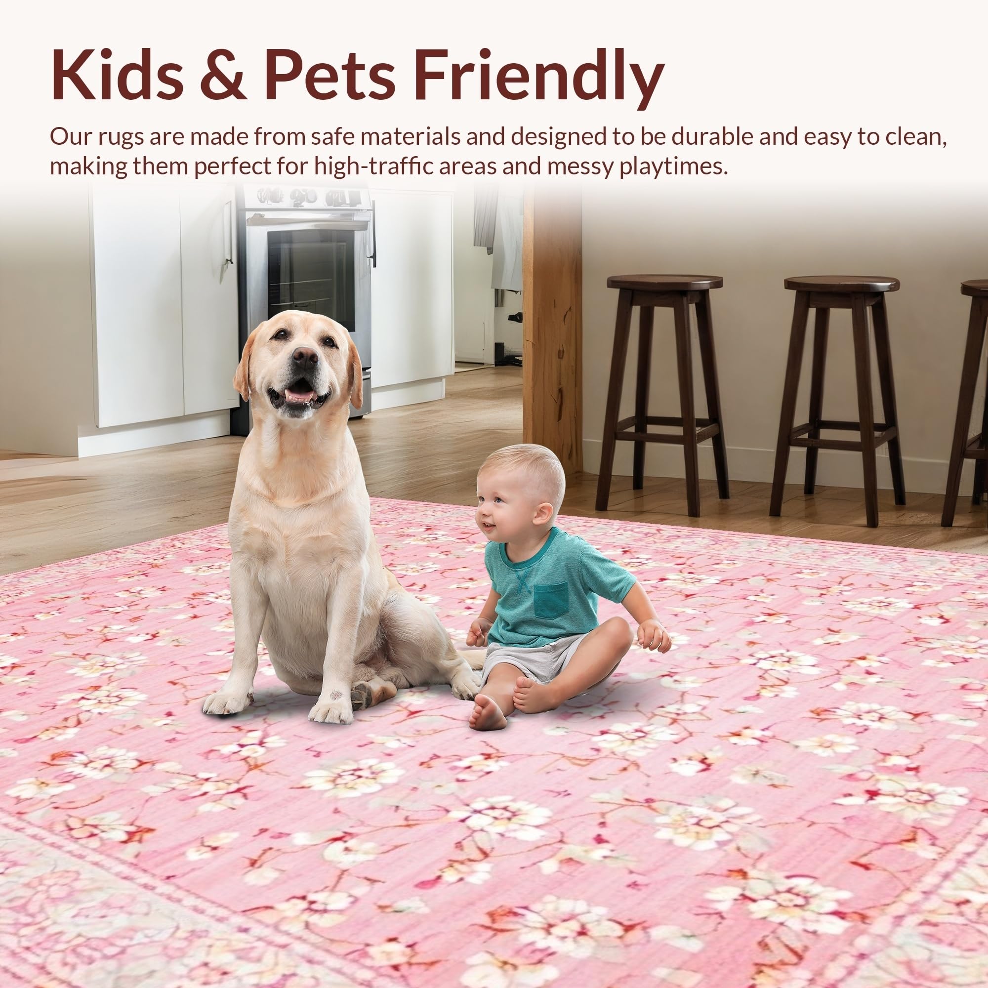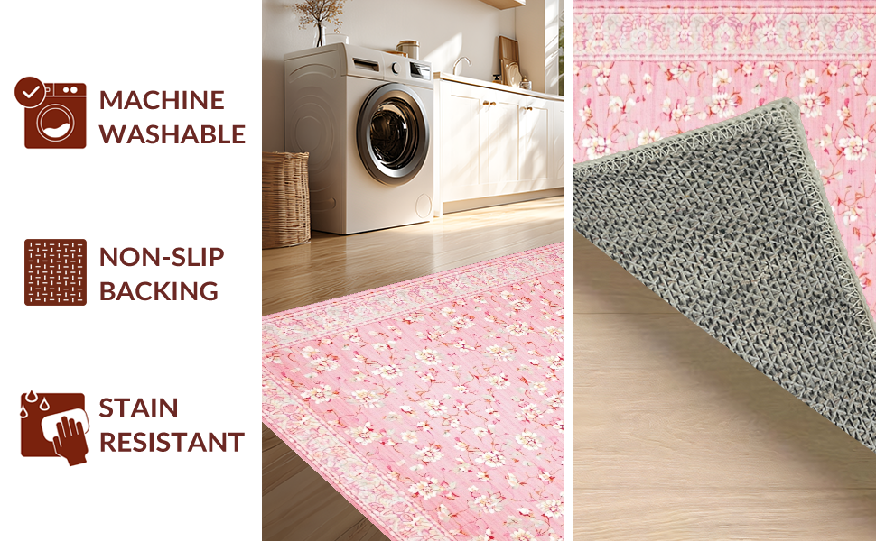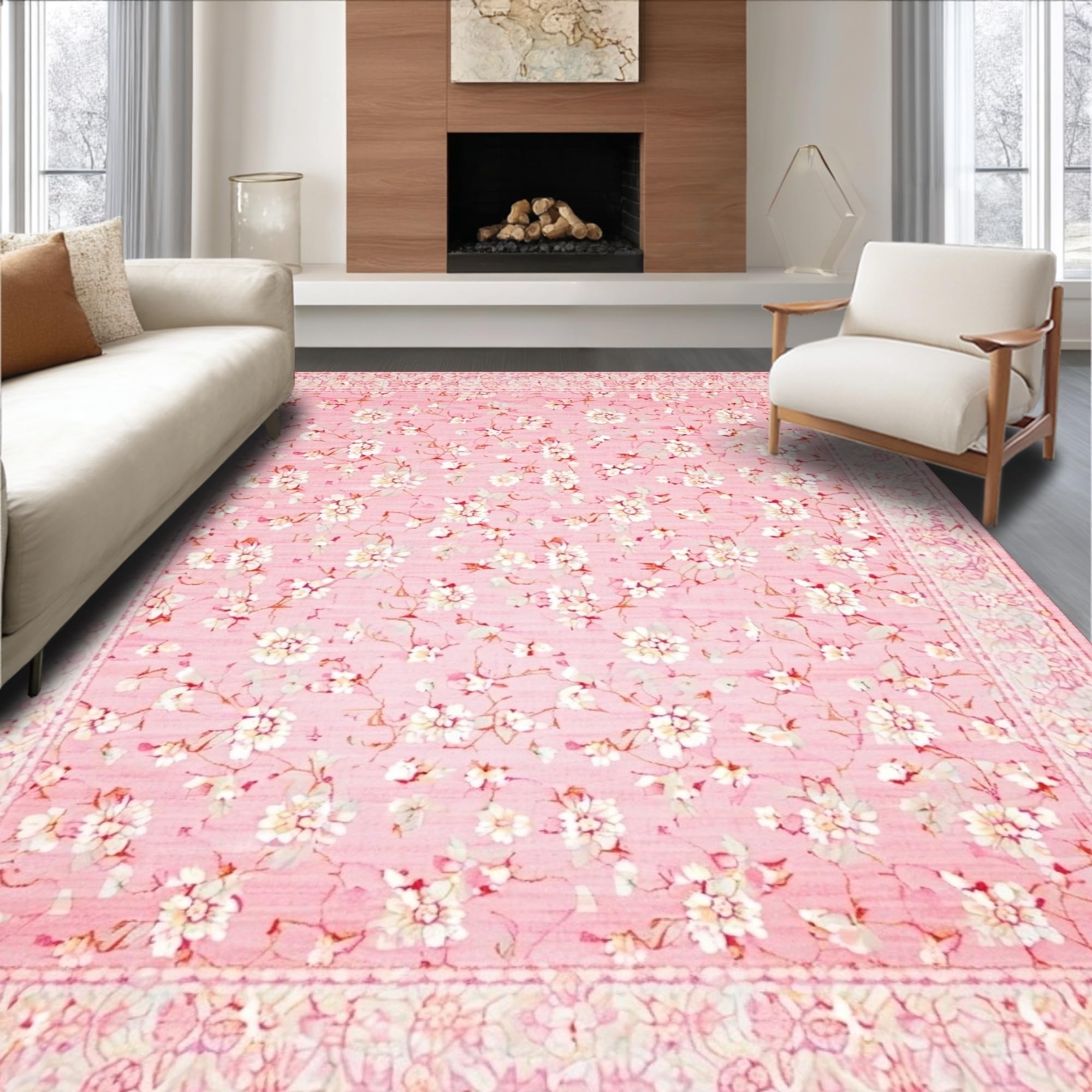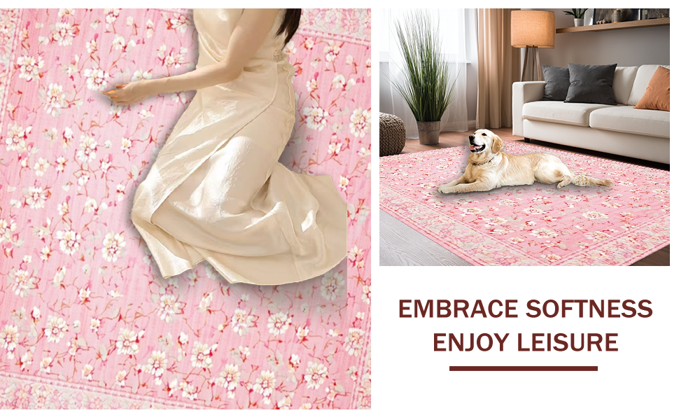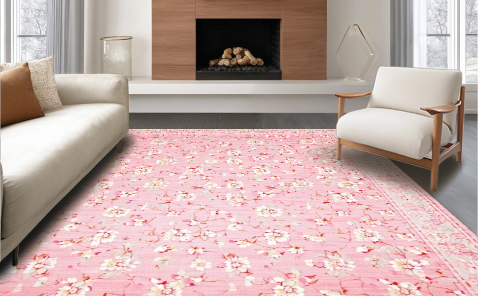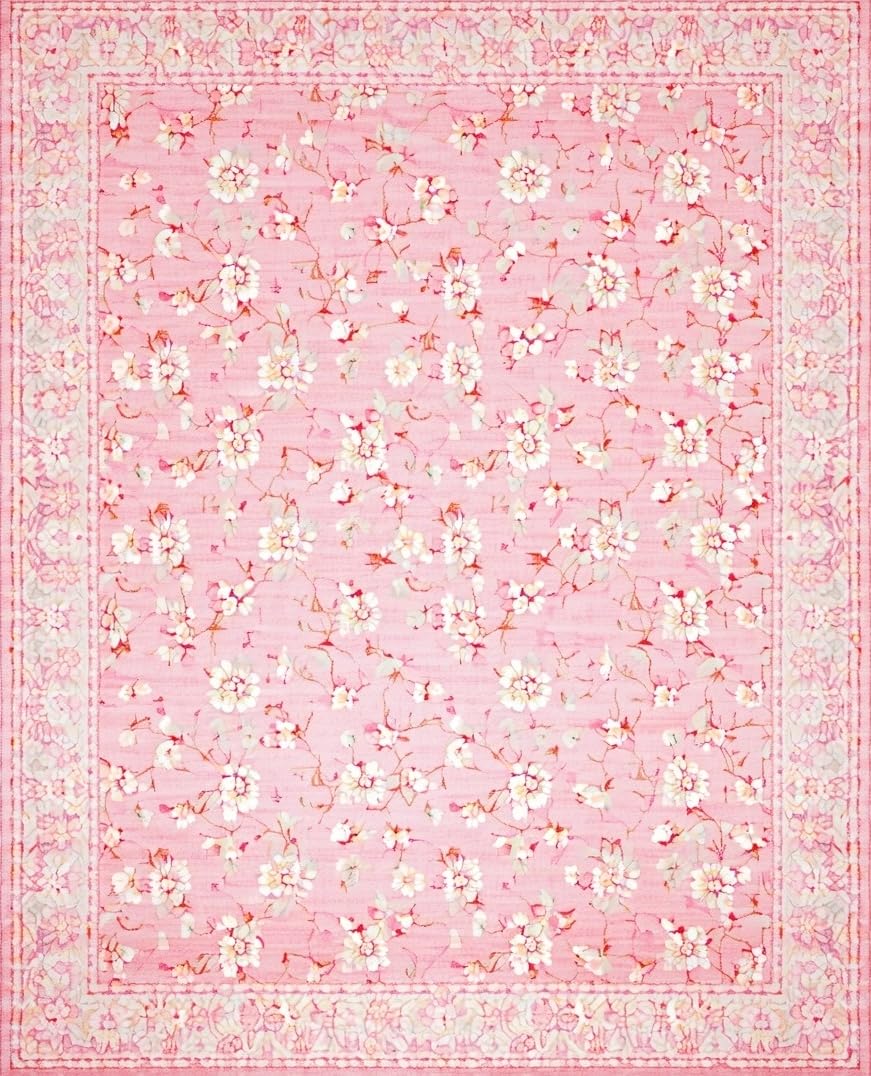 Ultra Soft Area Rug, Non Slip, Stain Resistant, Washable Area Rugs for Living Room, Bedroom, Delicate Floral Ivory Accents(Pink) Overview: