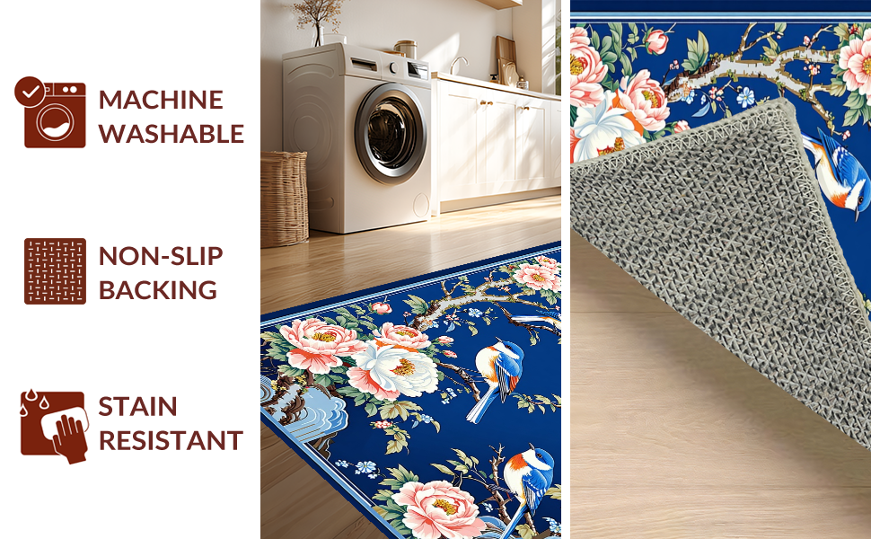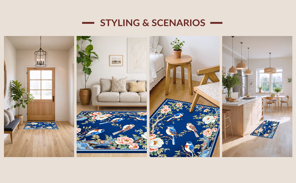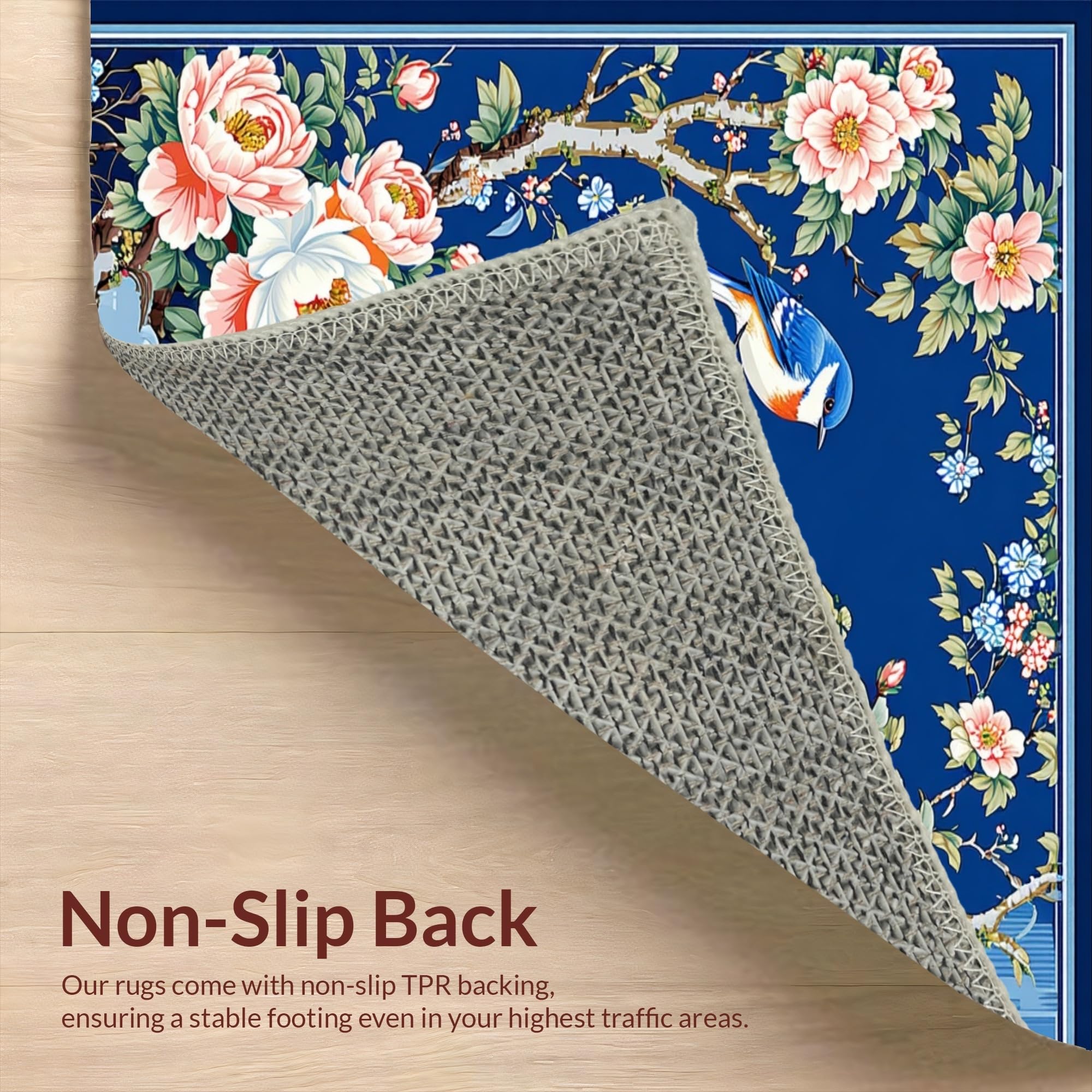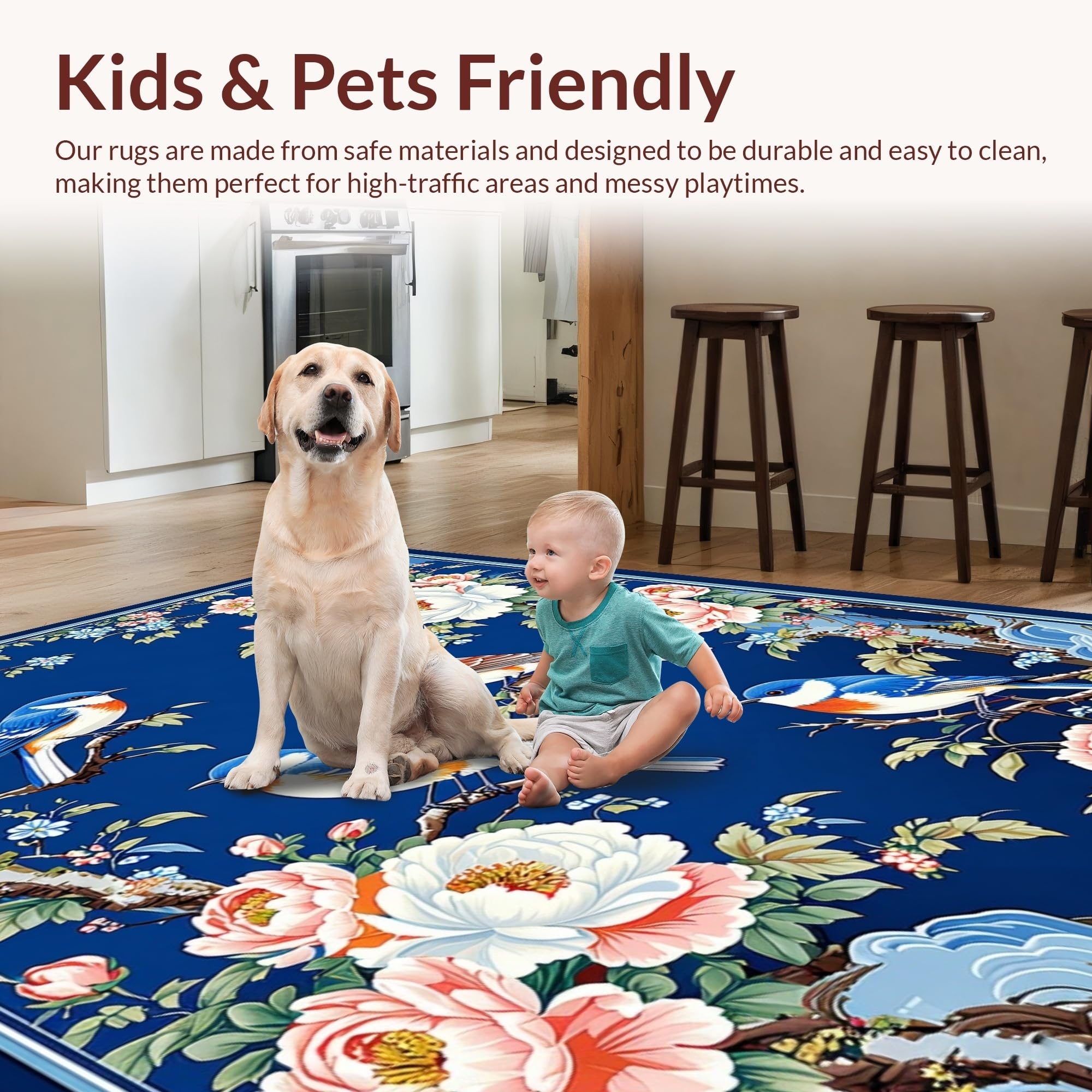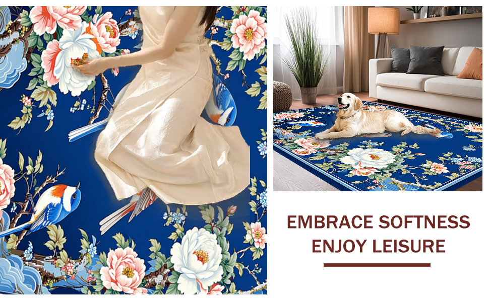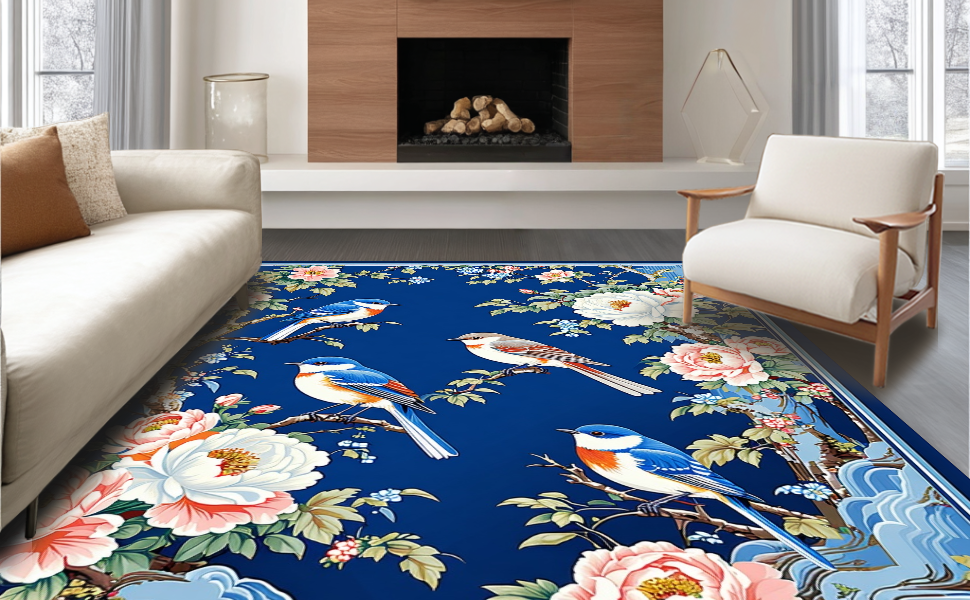 Ultra Soft Area Rug, Non Slip, Stain Resistant, Washable Area Rugs for Living Room, Bedroom, Delicate Floral Pattern Charm(Blue) Overview: