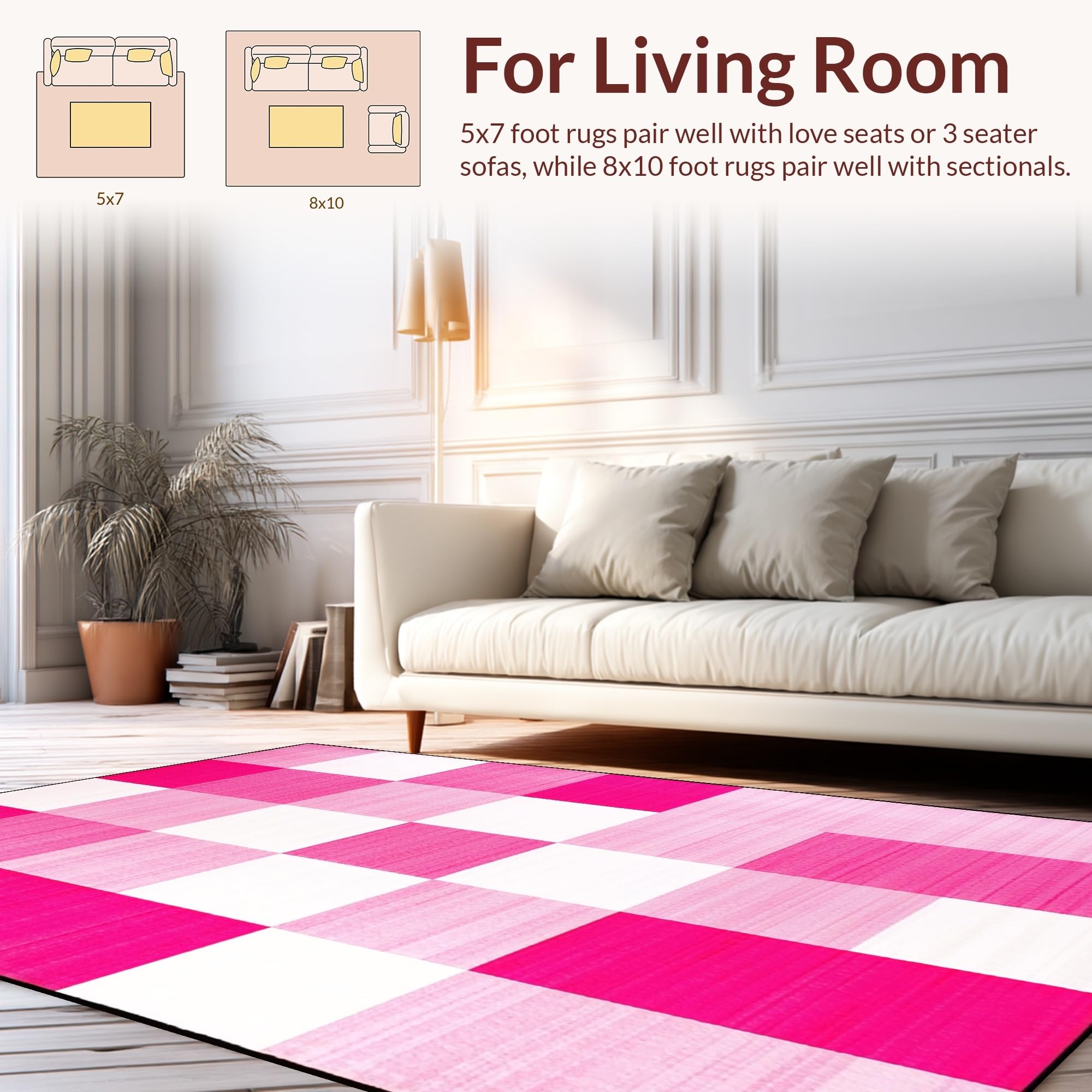 Ultra Soft Area Rug, Non Slip, Stain Resistant, Washable Area Rugs for Living Room, Bedroom, Delicate Fuzzy Shag Patterned Delight(Pink) Overview: