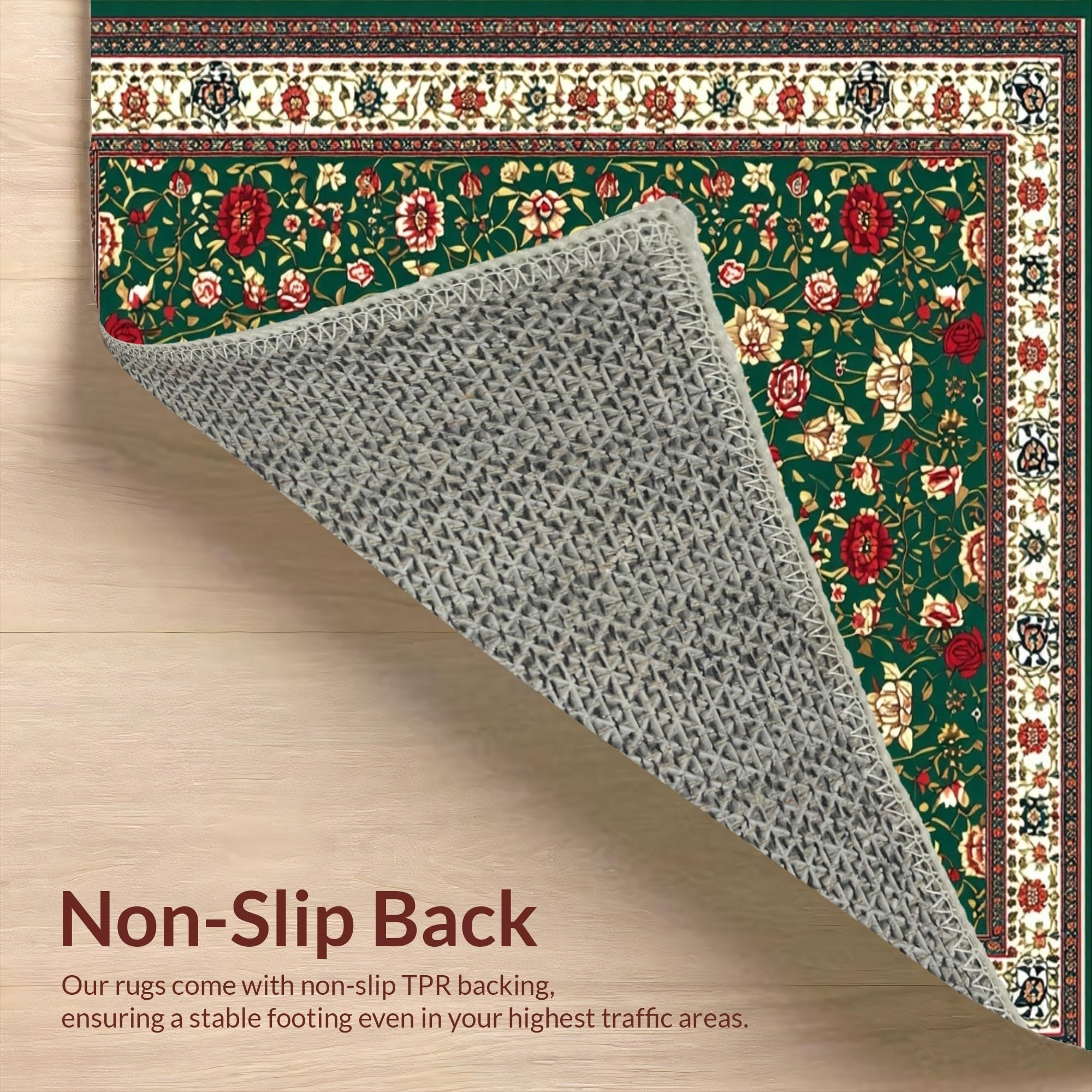 Ultra Soft Area Rug, Non Slip, Stain Resistant, Washable Area Rugs for Living Room, Bedroom, Delicate Geometric Vintage Charm(Green) Overview: