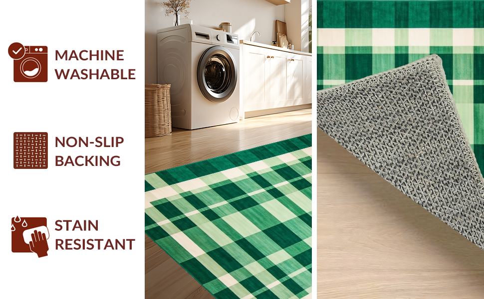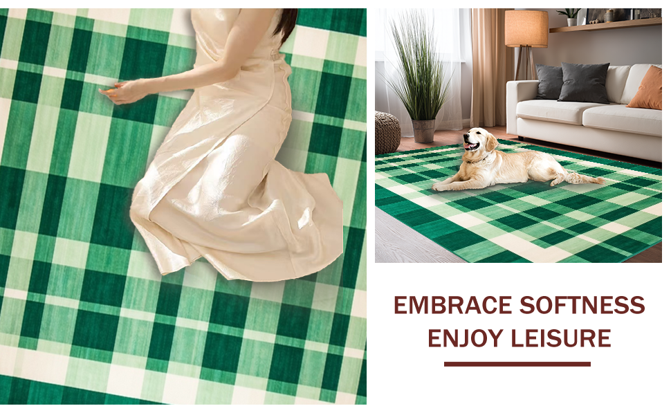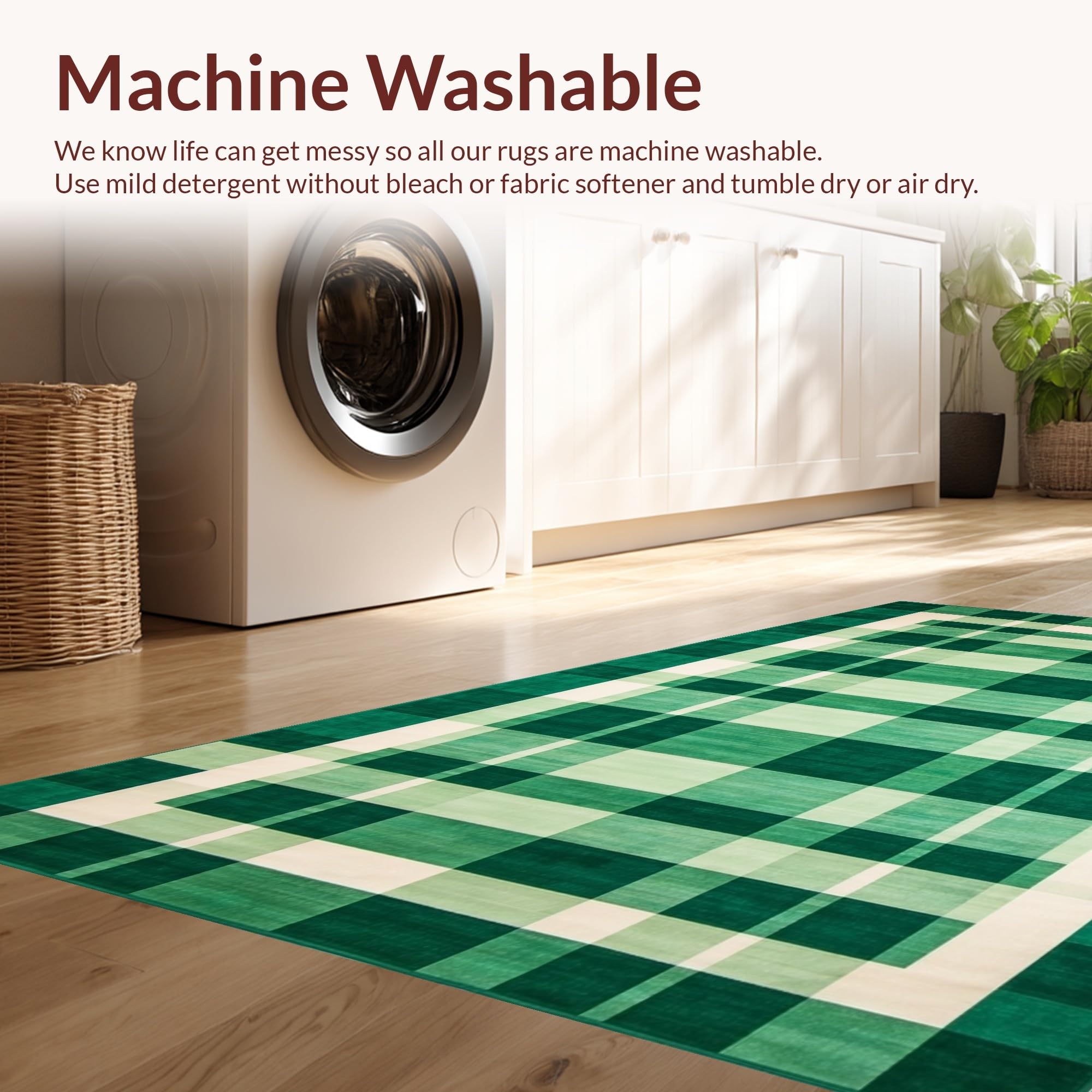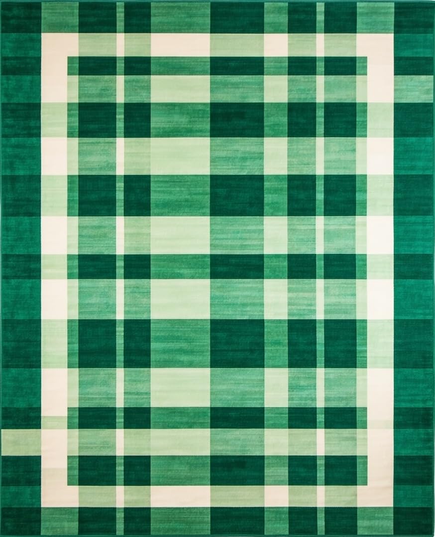 Ultra Soft Area Rug, Non Slip, Stain Resistant, Washable Area Rugs for Living Room, Bedroom, Delicate Ivory and Green Grid Layout(Green) Overview: