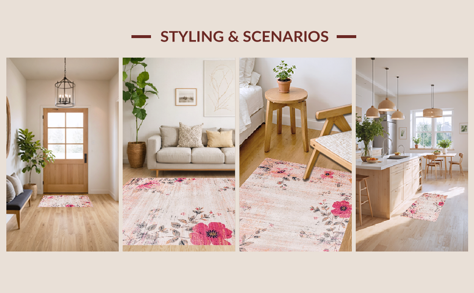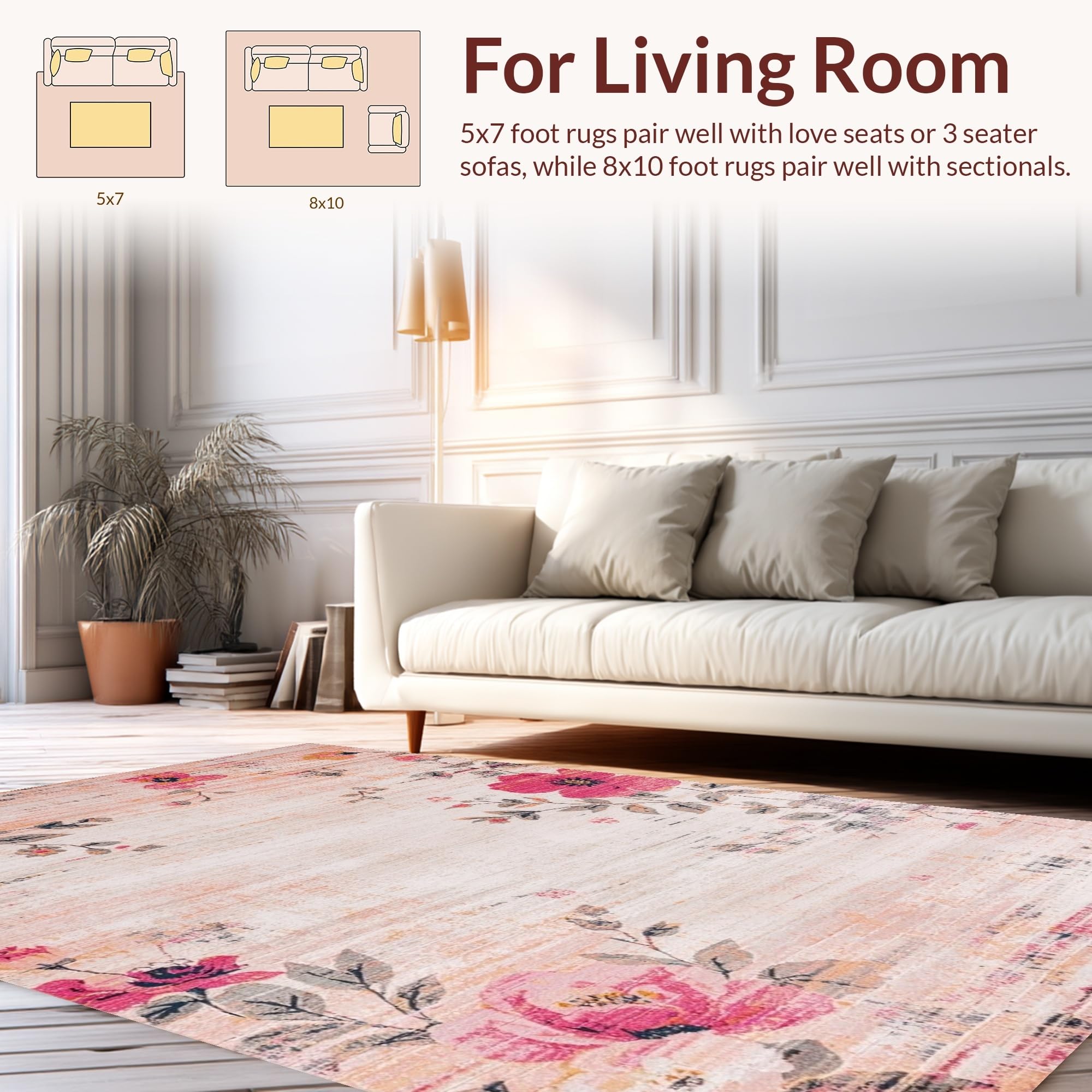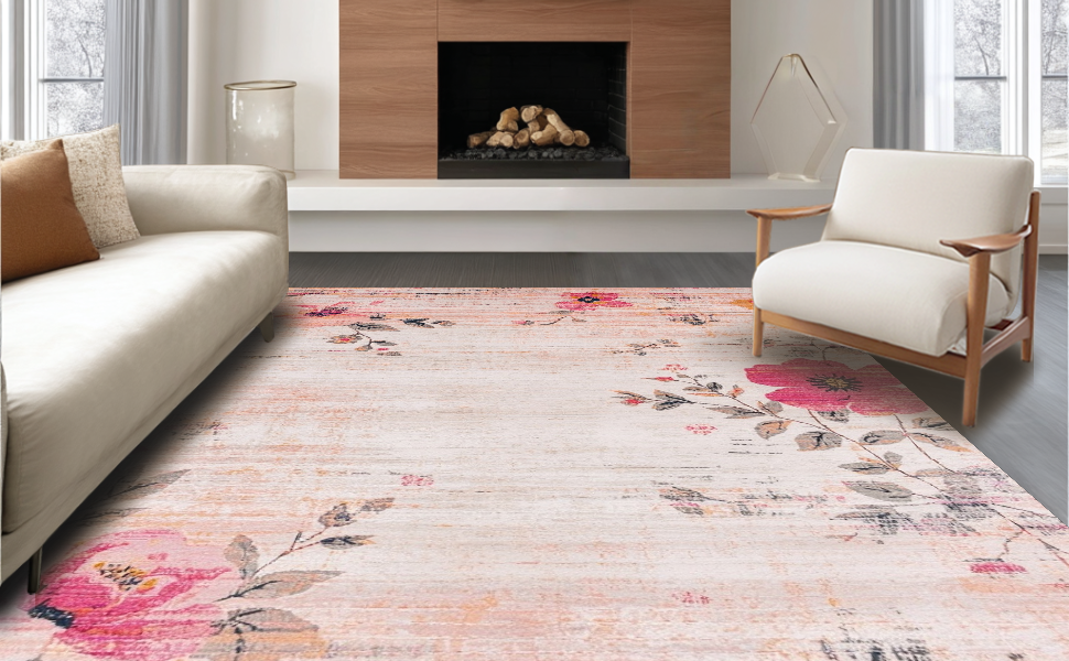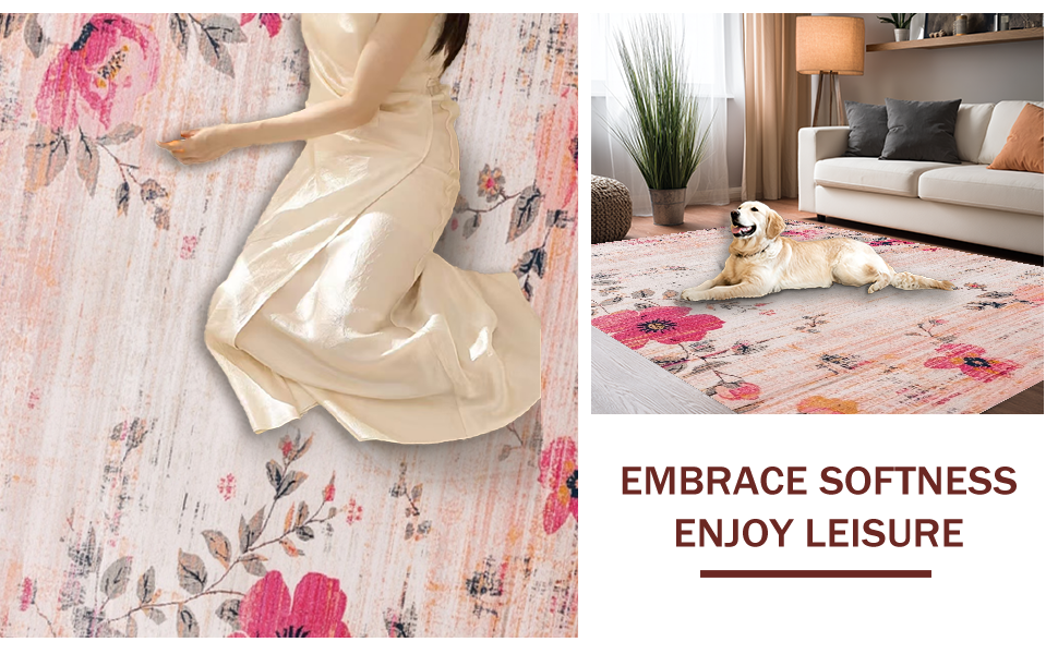 Ultra Soft Area Rug, Non Slip, Stain Resistant, Washable Area Rugs for Living Room, Bedroom, Delicate Modern Geometric Touch(Pink) Overview: