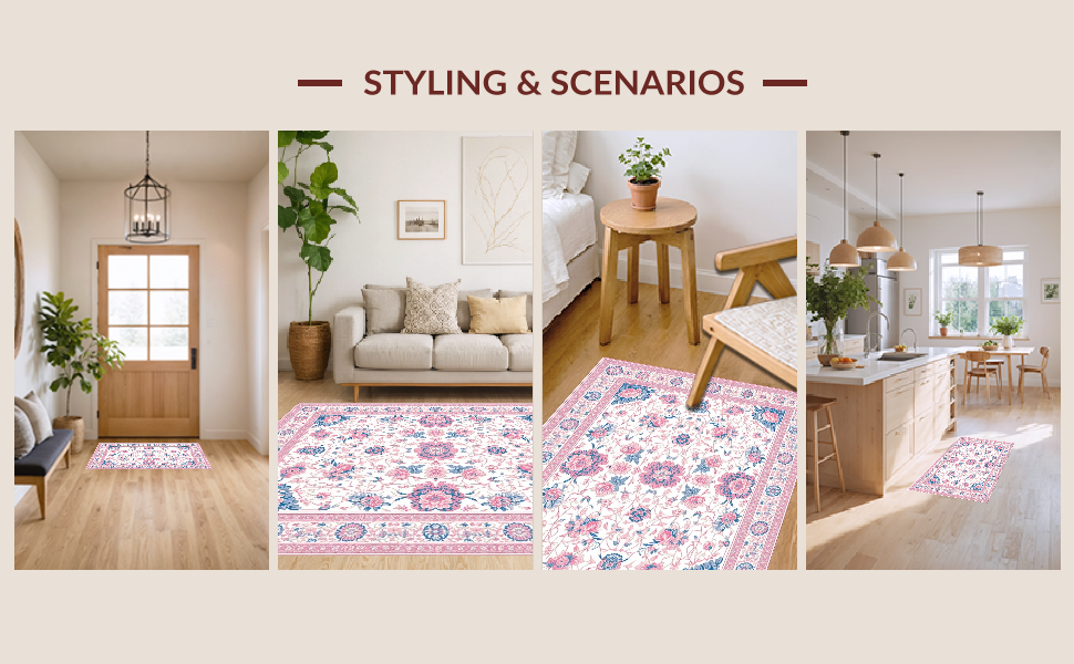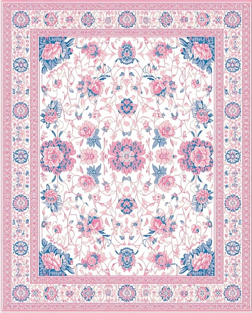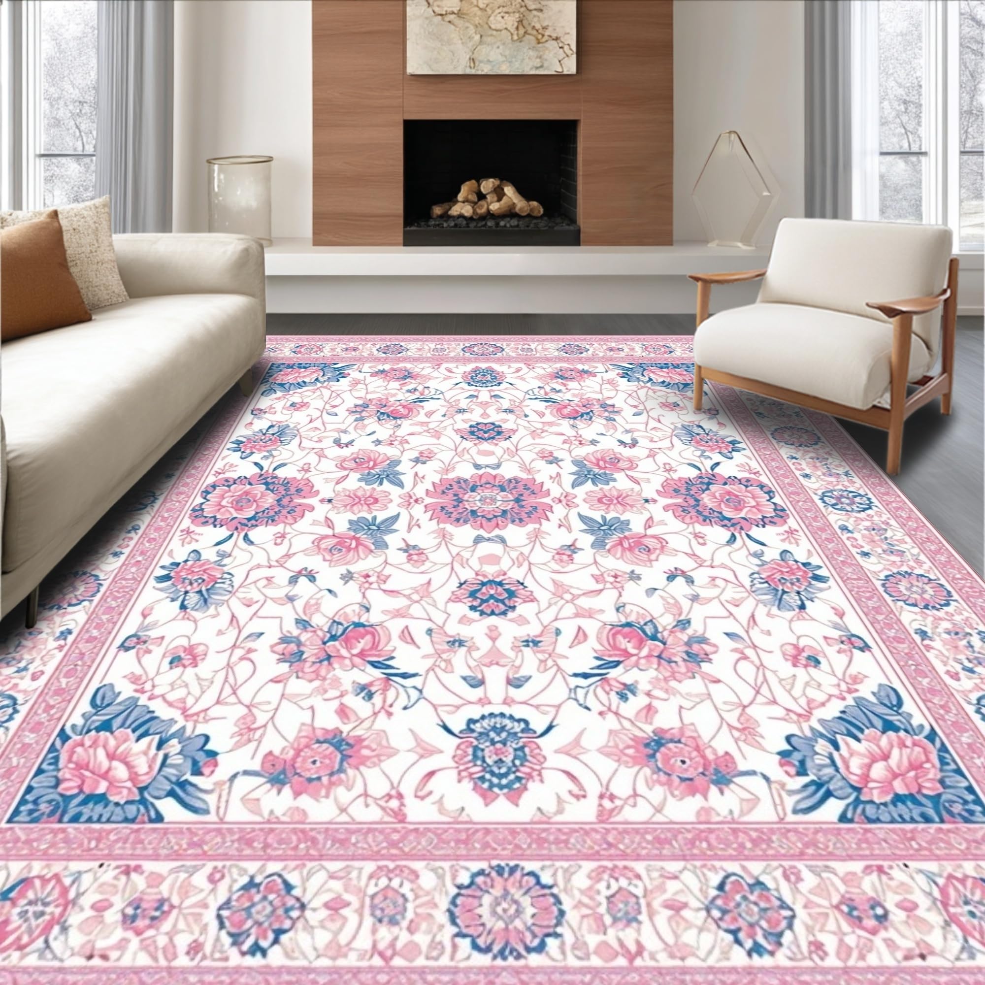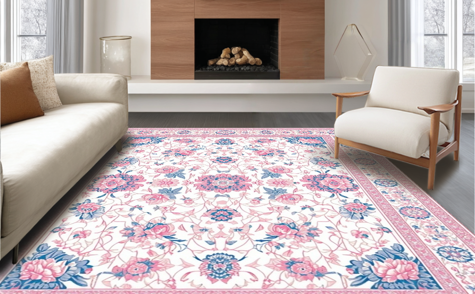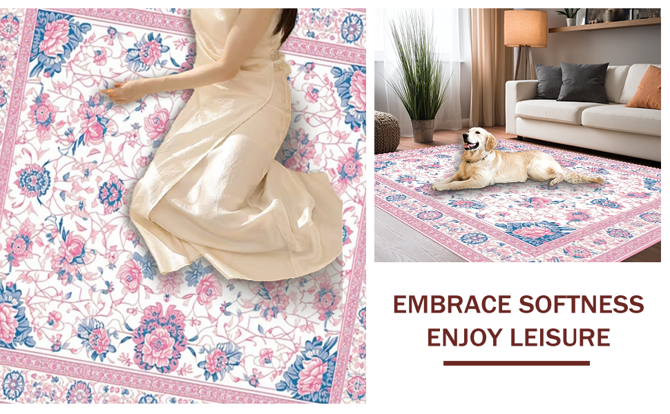 Ultra Soft Area Rug, Non Slip, Stain Resistant, Washable Area Rugs for Living Room, Bedroom, Delicate Nature-Inspired Artistry(White) Overview: