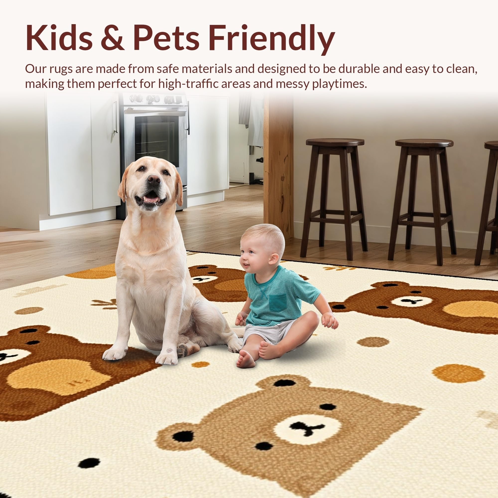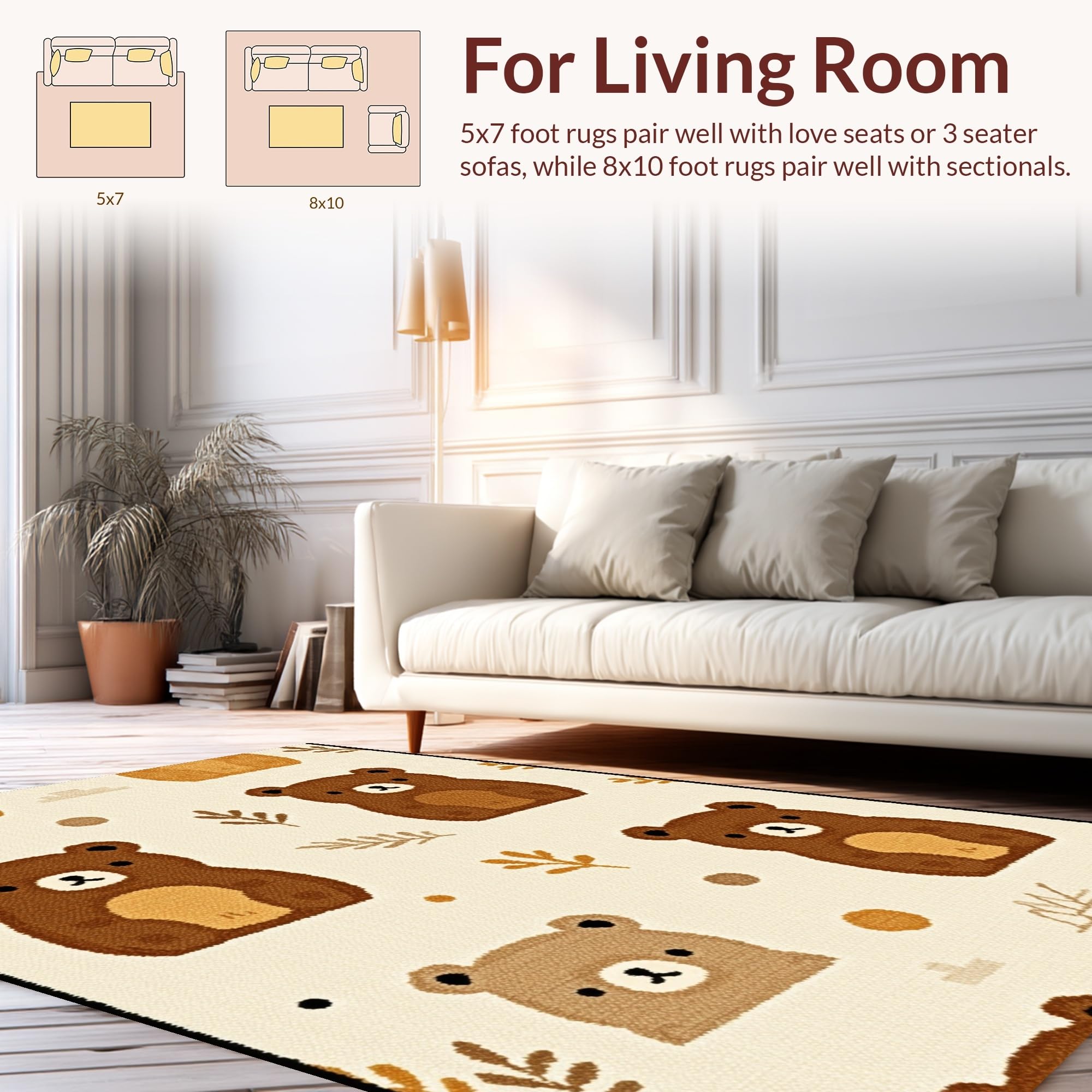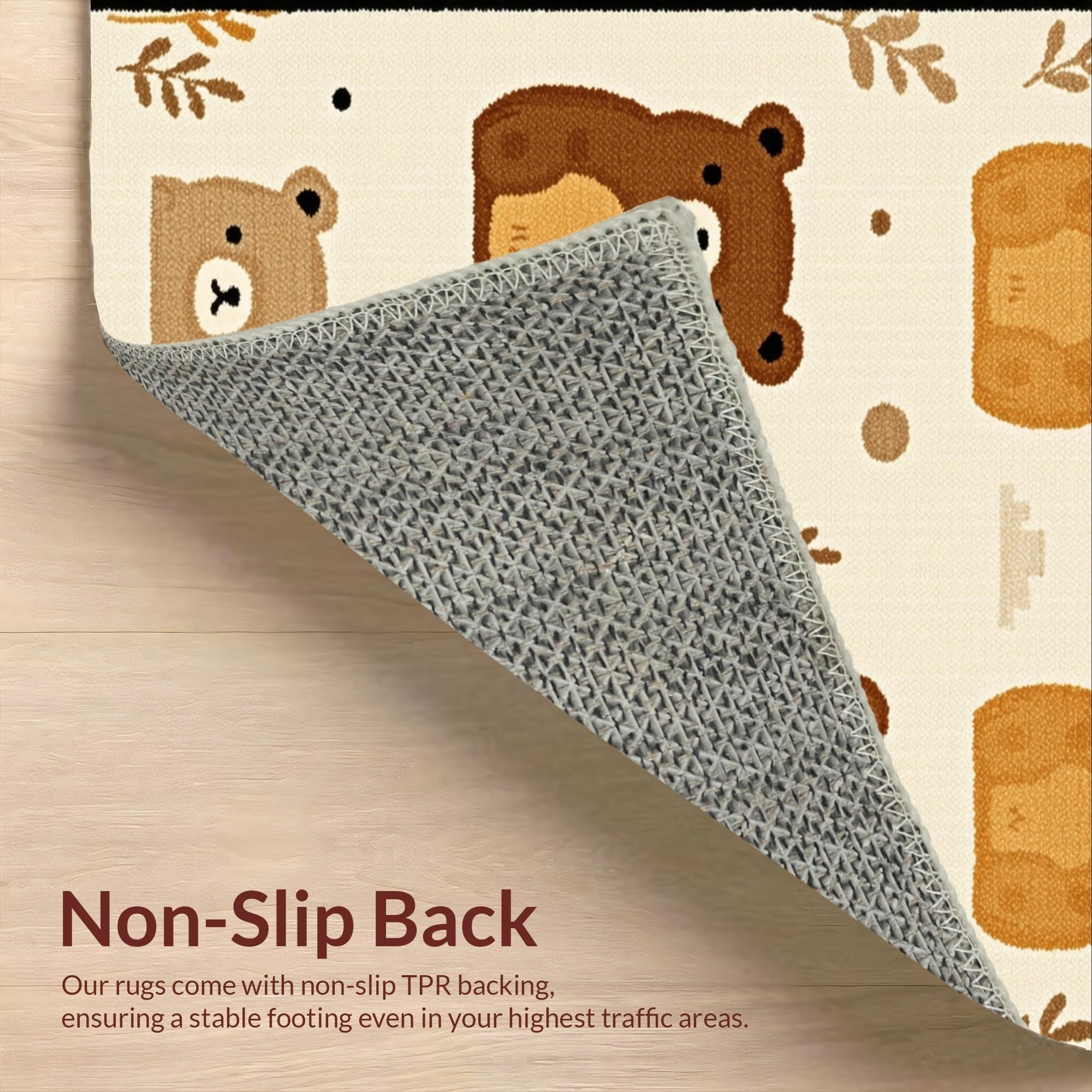 Ultra Soft Area Rug, Non Slip, Stain Resistant, Washable Area Rugs for Living Room, Bedroom, Delicate Pastel Bear Illustration(Beige) Overview: