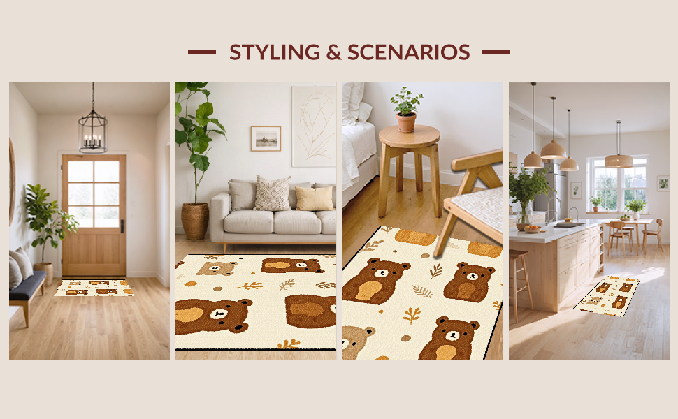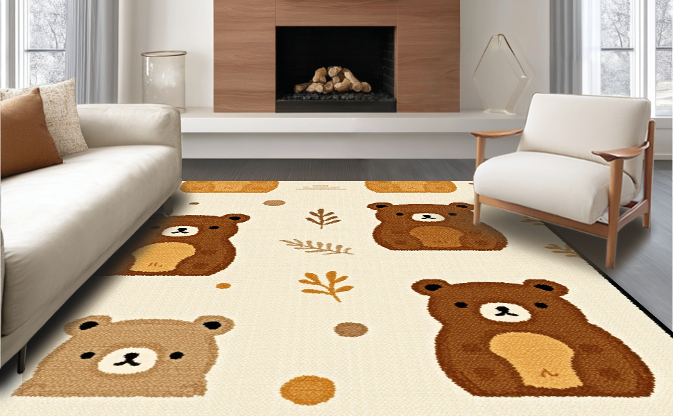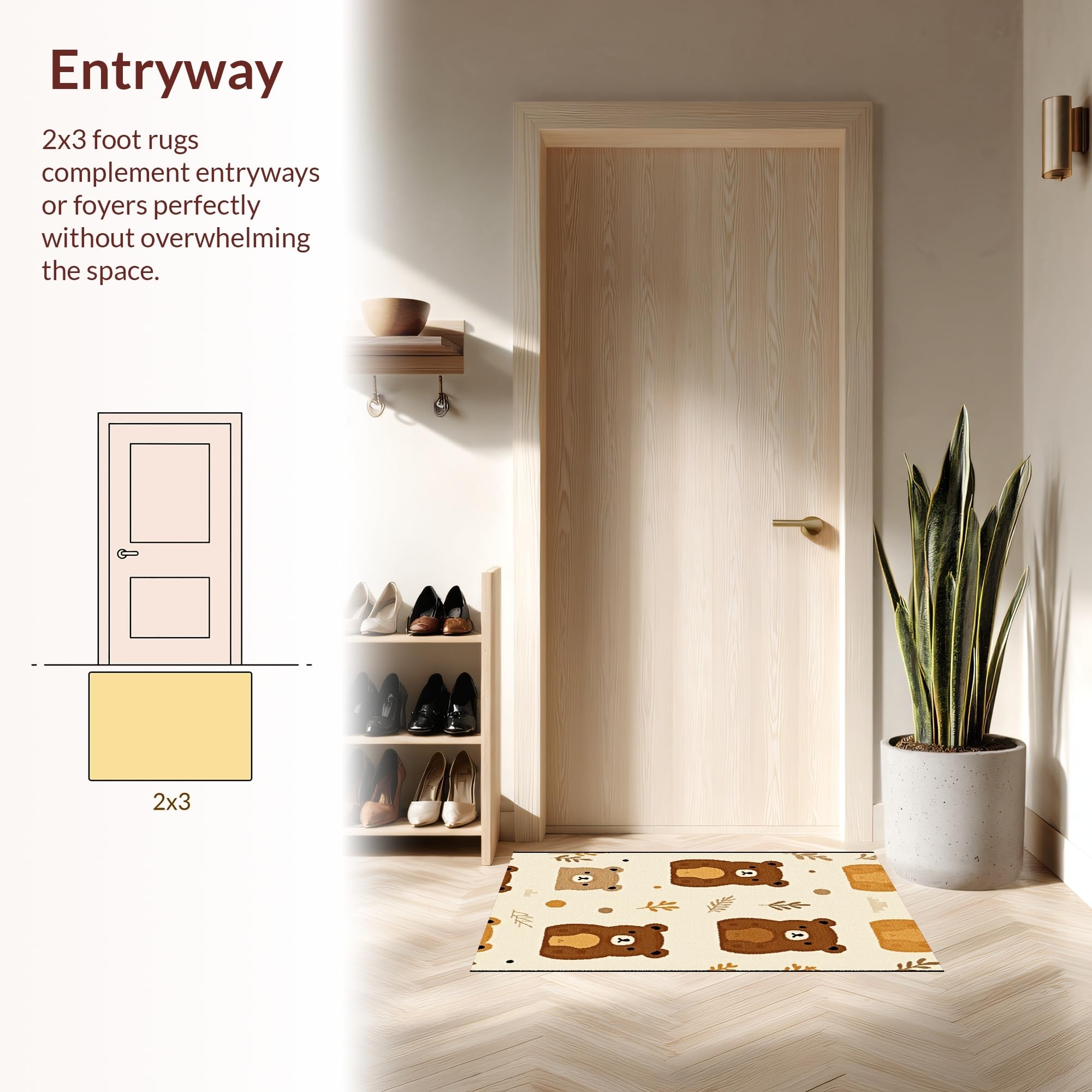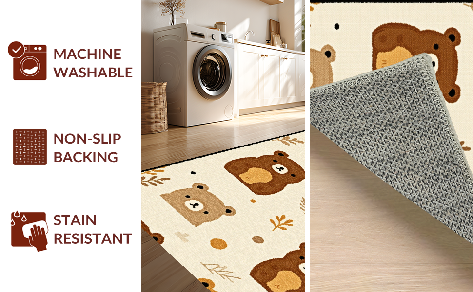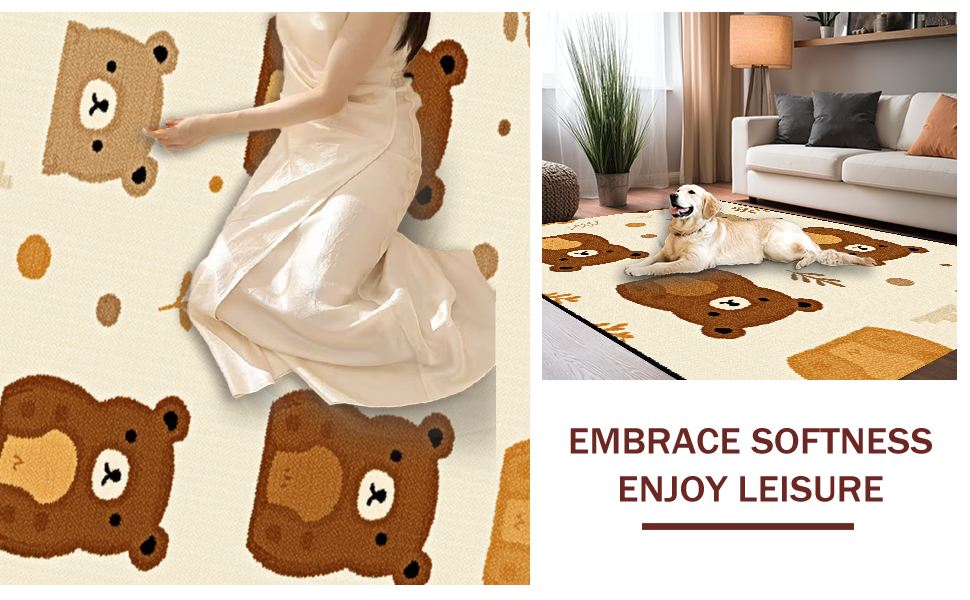 Ultra Soft Area Rug, Non Slip, Stain Resistant, Washable Area Rugs for Living Room, Bedroom, Delicate Pastel Bear Illustration(Beige) Overview: