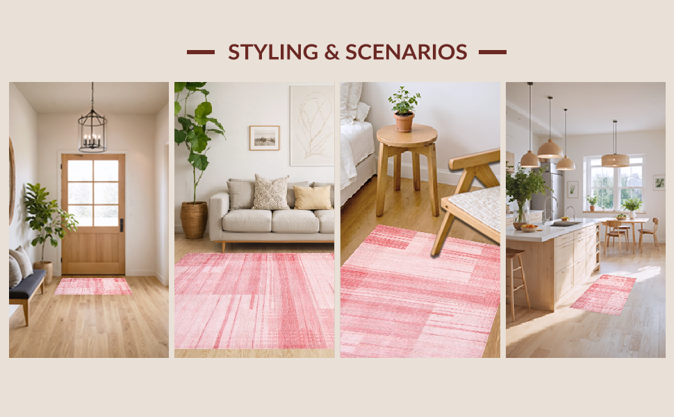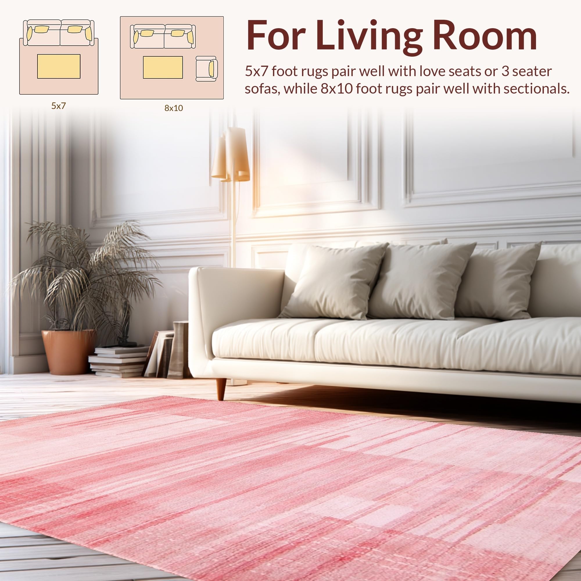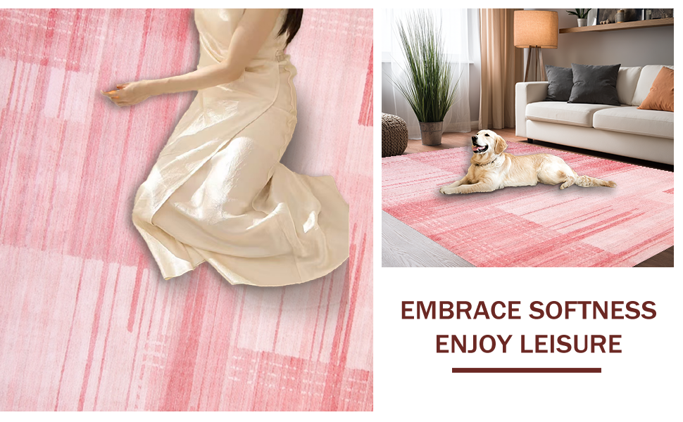 Ultra Soft Area Rug, Non Slip, Stain Resistant, Washable Area Rugs for Living Room, Bedroom, Delicate Pastel Cozy Aesthetic(Red) Overview: