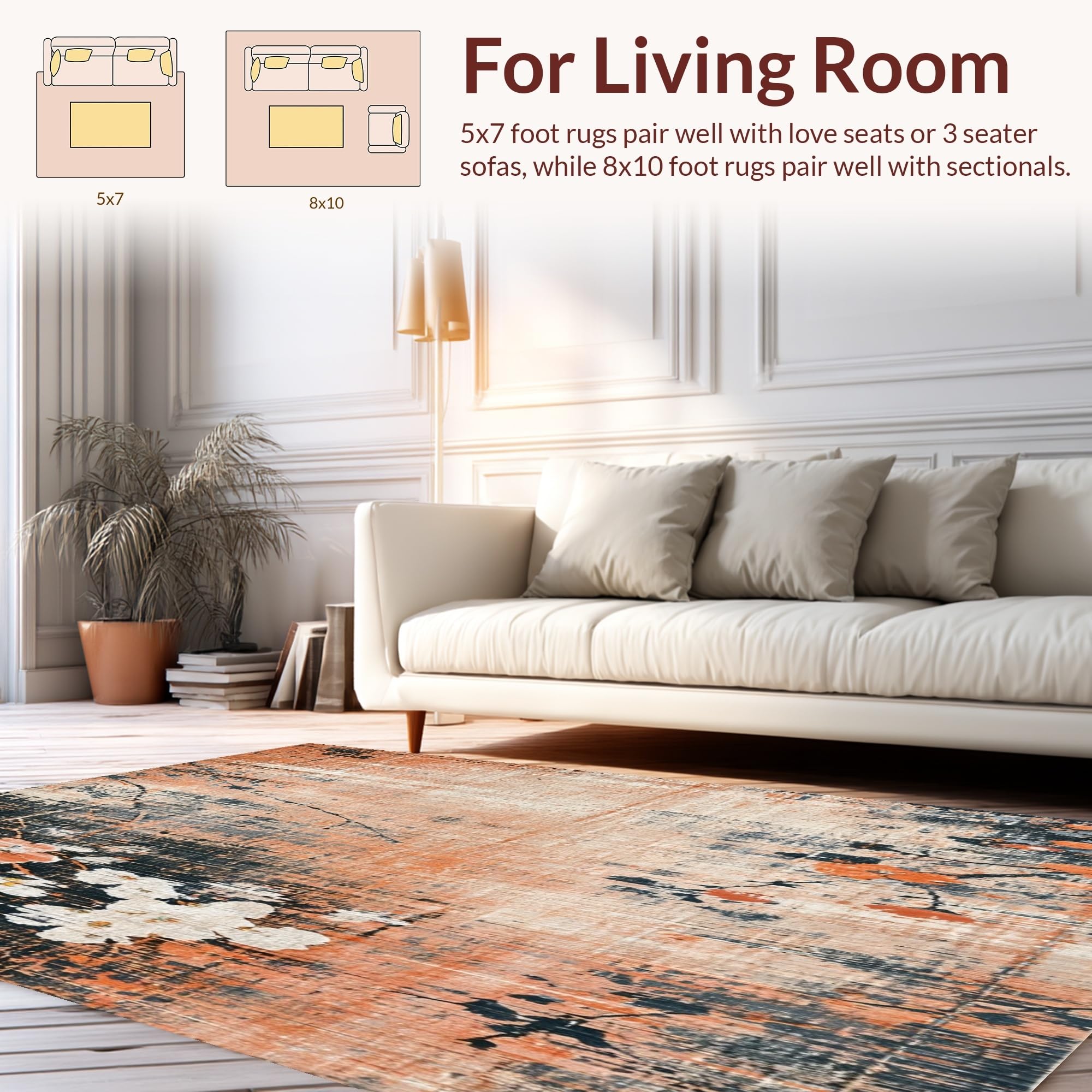 Ultra Soft Area Rug, Non Slip, Stain Resistant, Washable Area Rugs for Living Room, Bedroom, Delicate Peach Bloom Petal Soft Low Pile Area Rug(Beige) Overview: