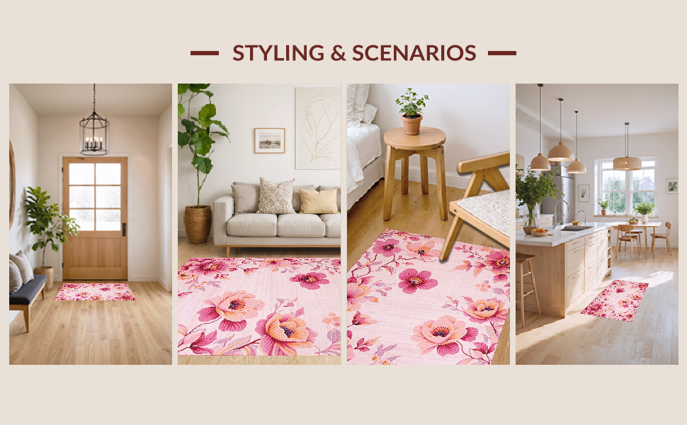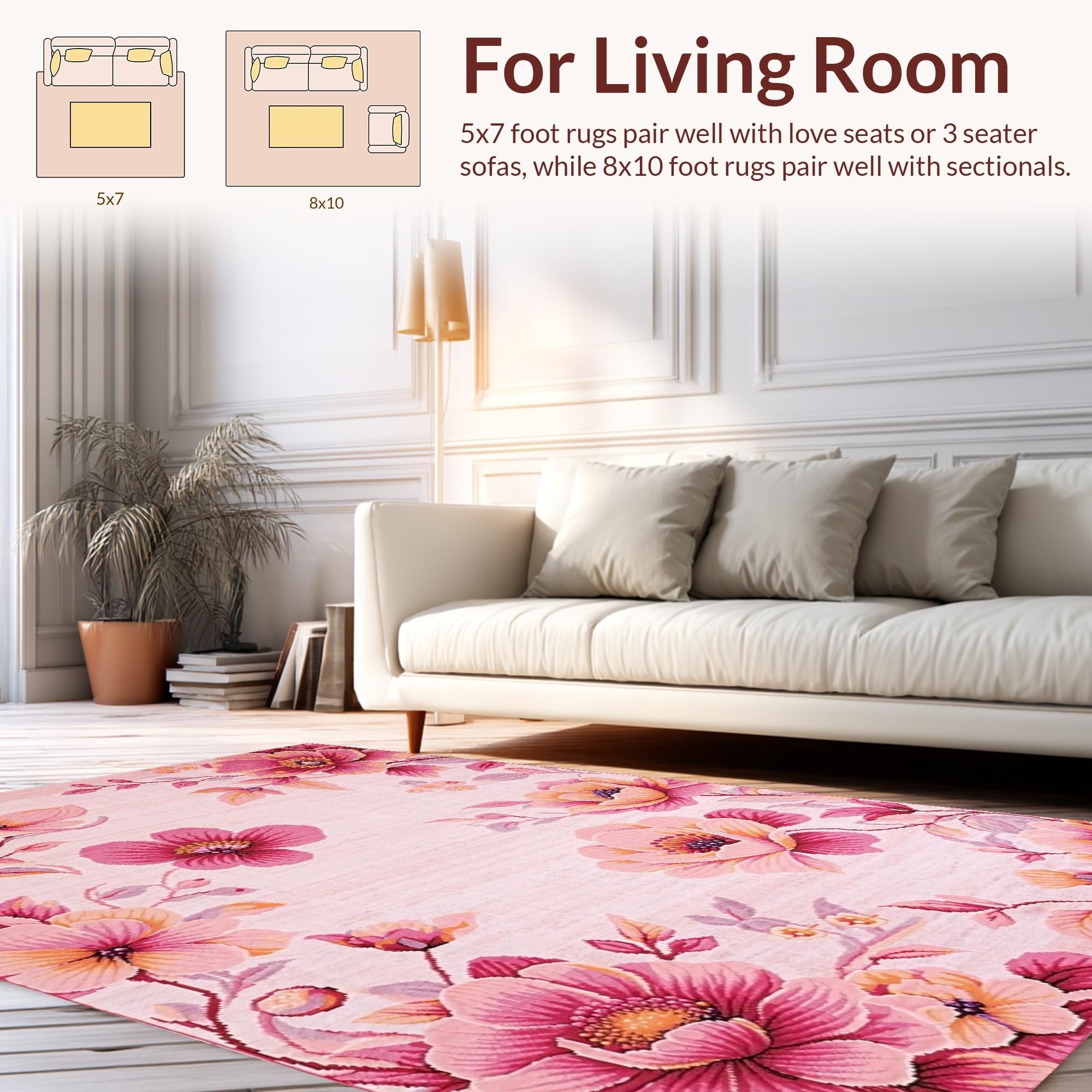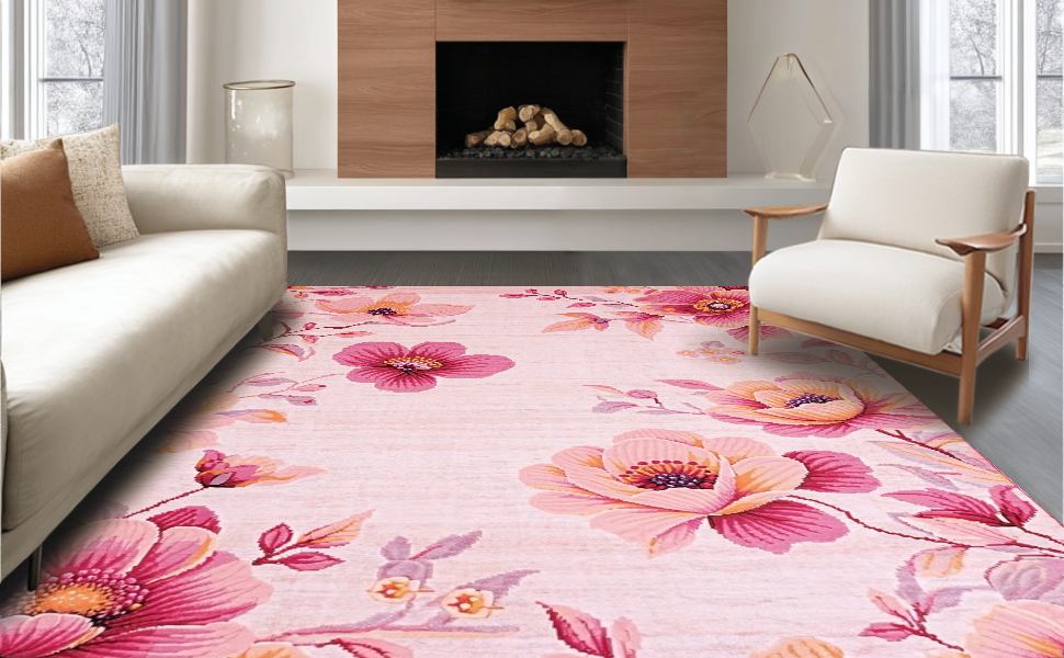 Ultra Soft Area Rug, Non Slip, Stain Resistant, Washable Area Rugs for Living Room, Bedroom, Delicate Petal-Like Texture(Pink) Overview: