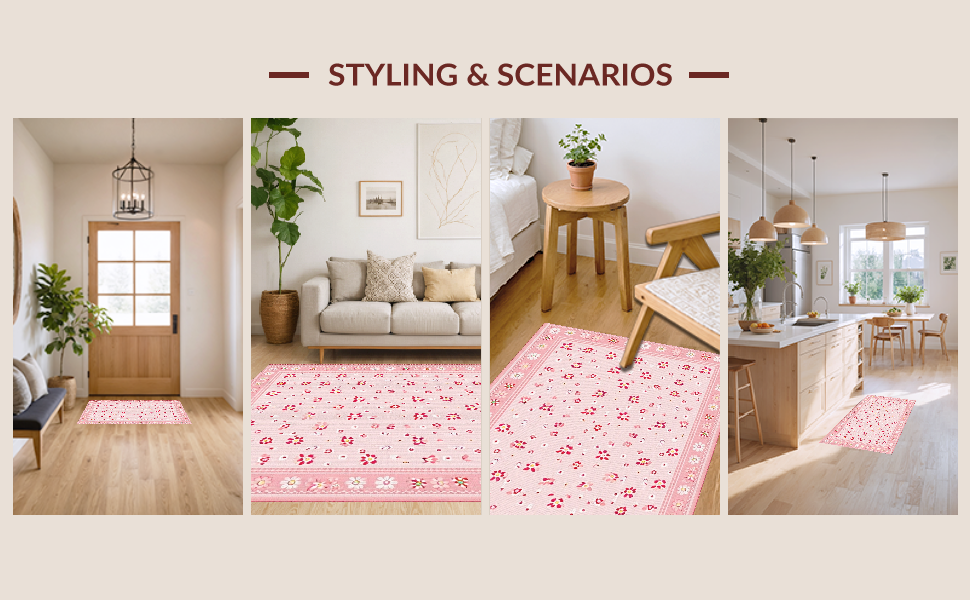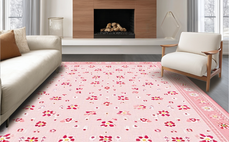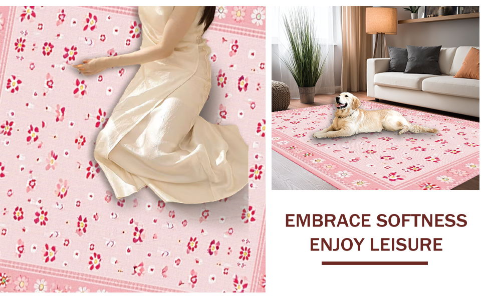 Ultra Soft Area Rug, Non Slip, Stain Resistant, Washable Area Rugs for Living Room, Bedroom, Delicate Pink Blossom Textures(Pink) Overview: