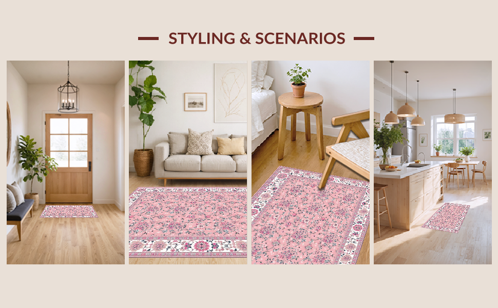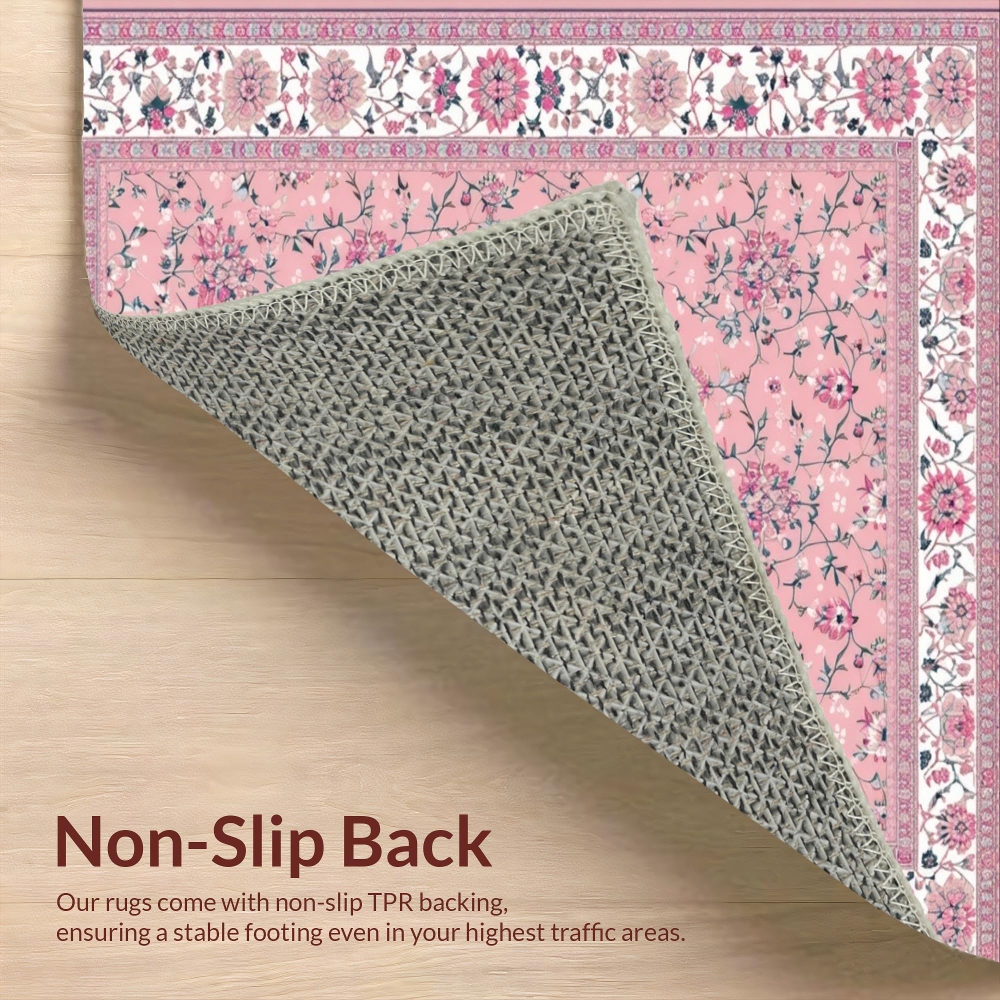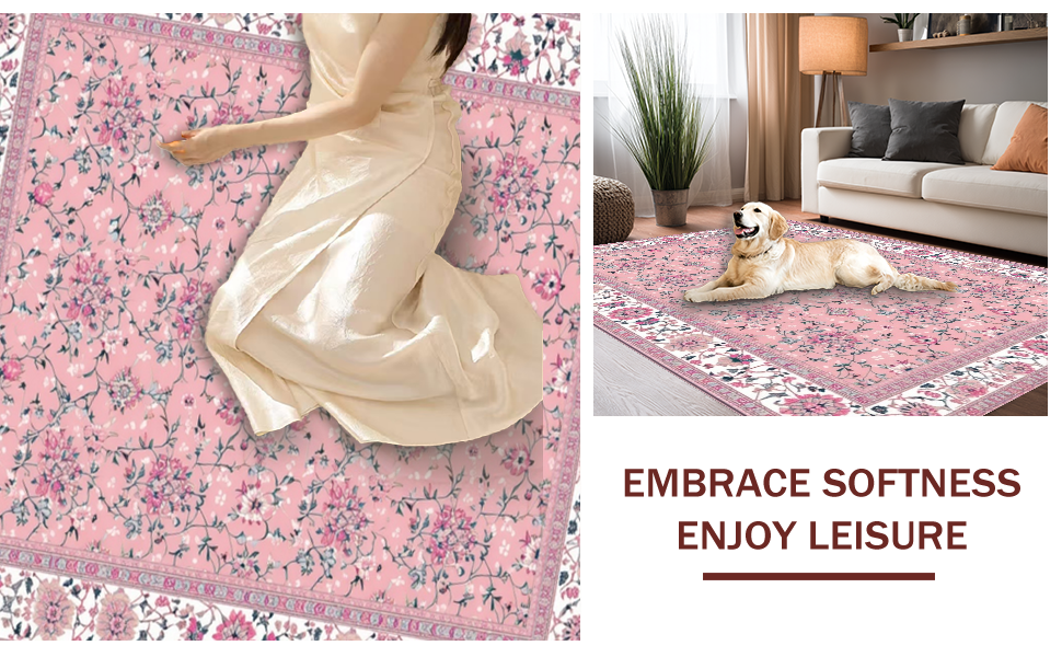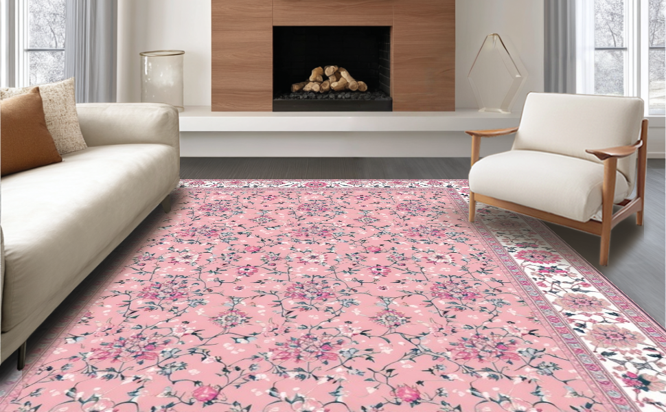 Ultra Soft Area Rug, Non Slip, Stain Resistant, Washable Area Rugs for Living Room, Bedroom, Delicate Plush Medallion Touch(Pink) Overview: