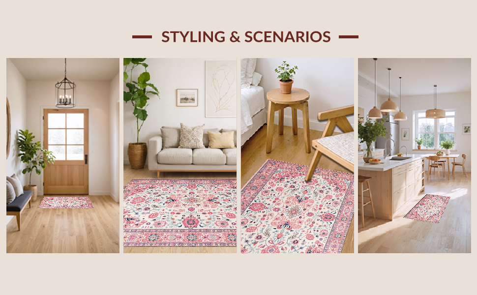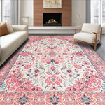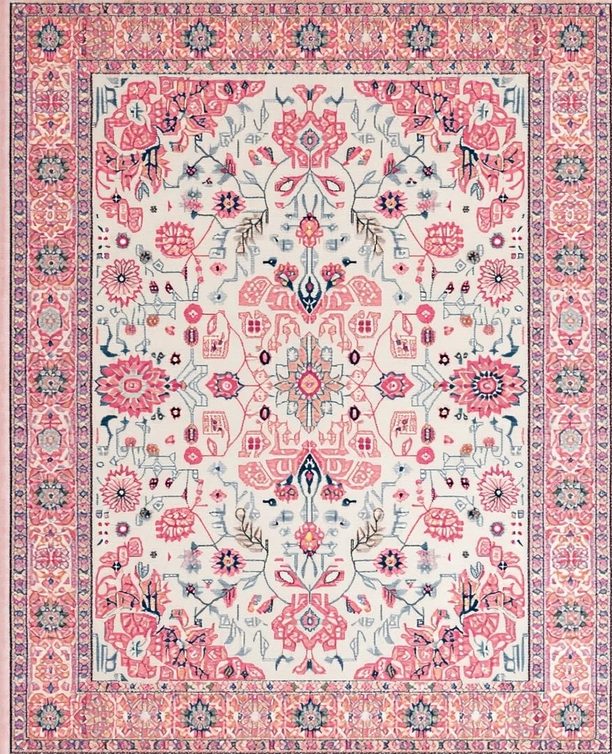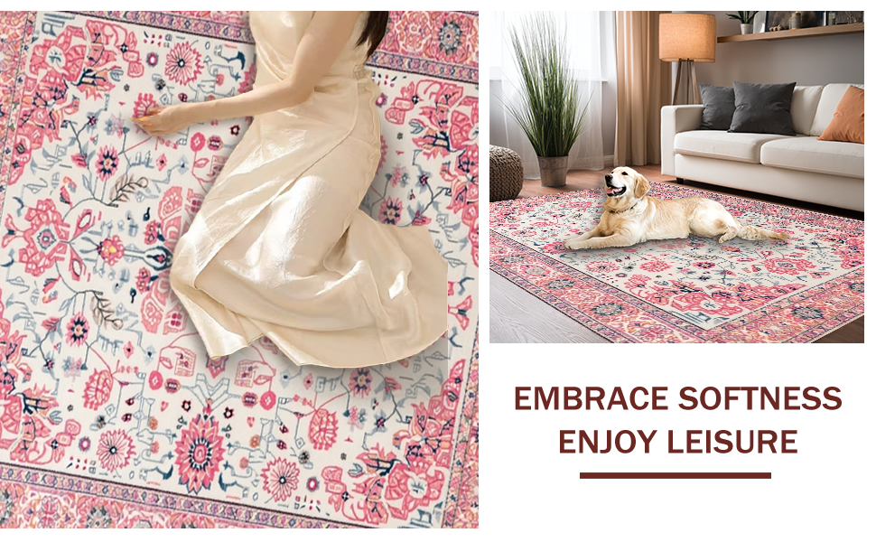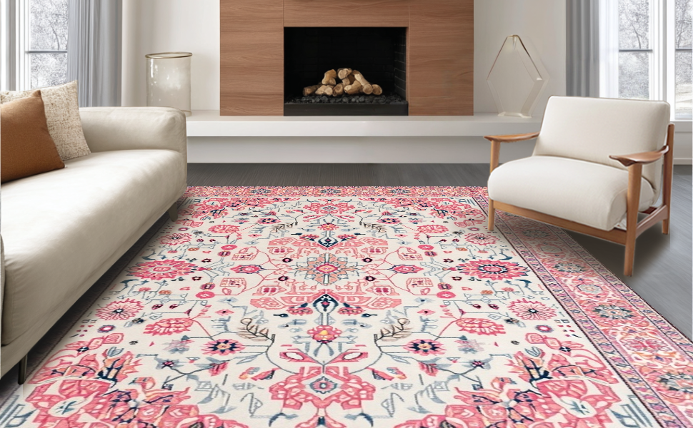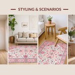 Ultra Soft Area Rug, Non Slip, Stain Resistant, Washable Area Rugs for Living Room, Bedroom, Delicate Rustic Blooming Design(Pink) Overview: