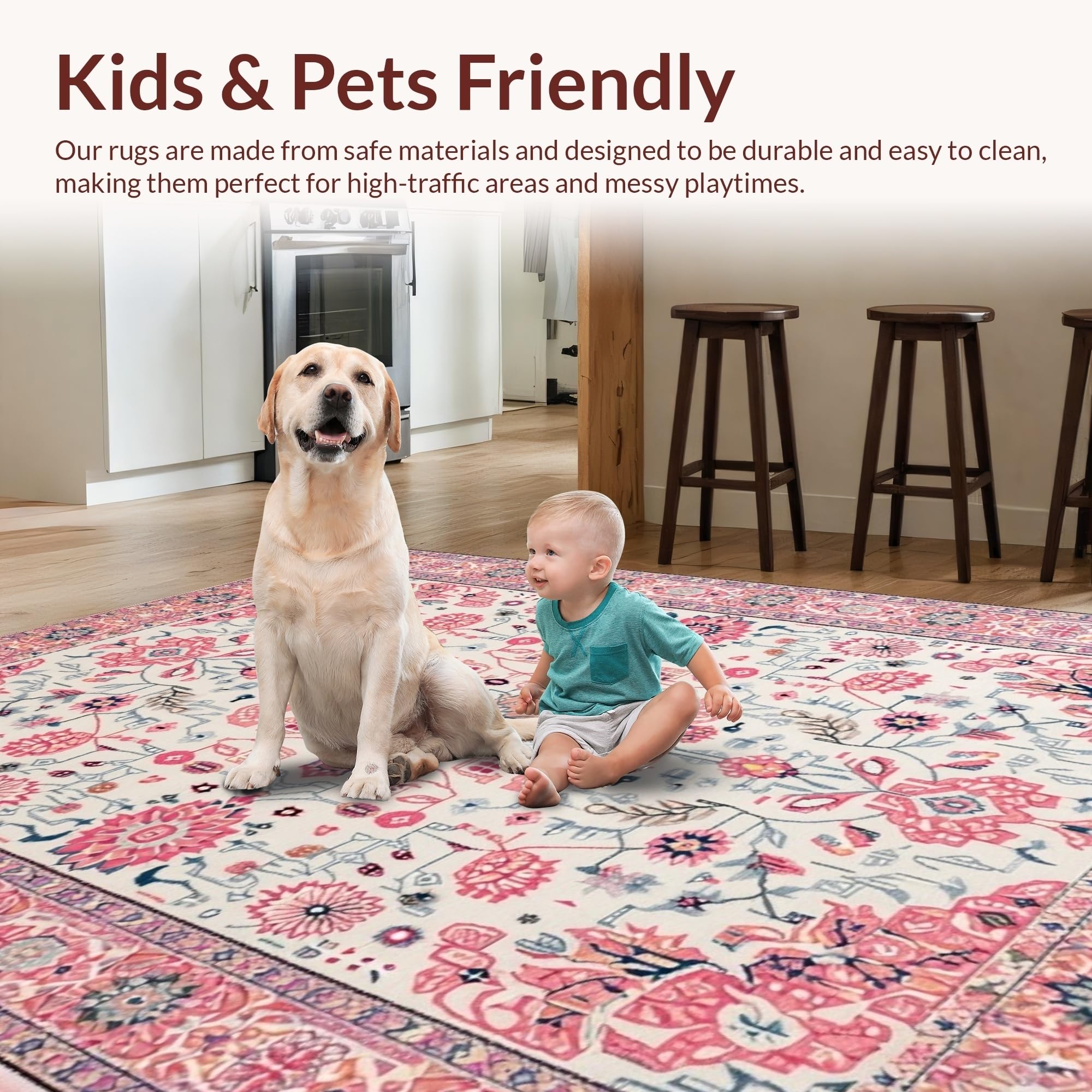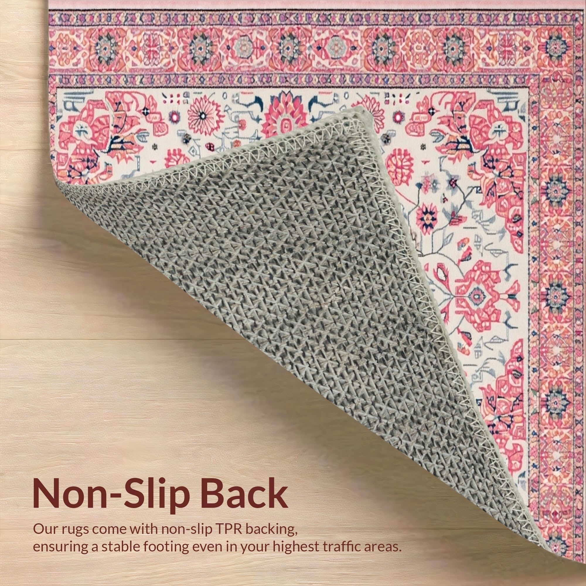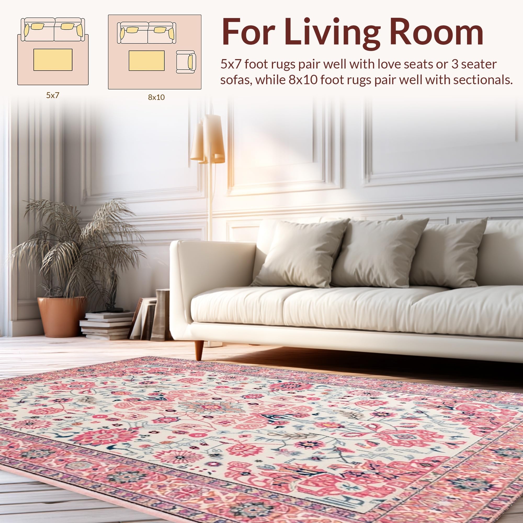 Ultra Soft Area Rug, Non Slip, Stain Resistant, Washable Area Rugs for Living Room, Bedroom, Delicate Rustic Blooming Design(Pink) Overview: