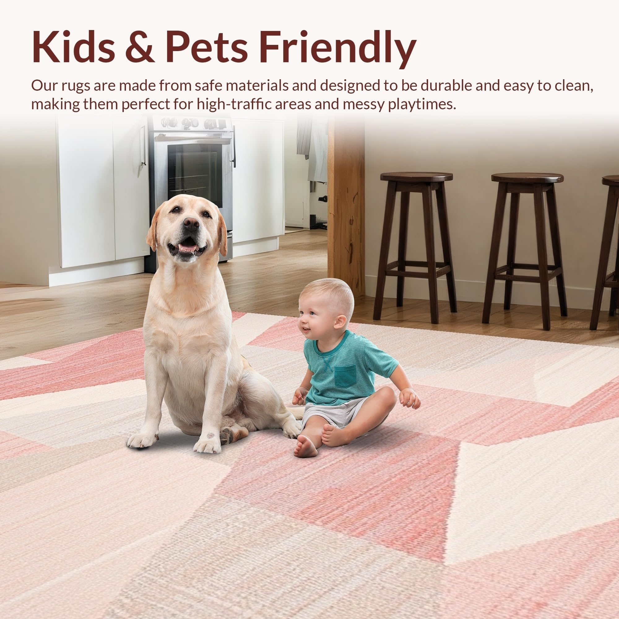 Ultra Soft Area Rug, Non Slip, Stain Resistant, Washable Area Rugs for Living Room, Bedroom, Delicate Shaggy Vintage Inspired Feel(Pink) Overview: