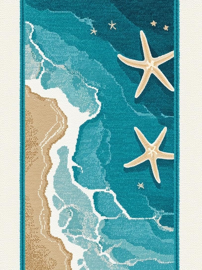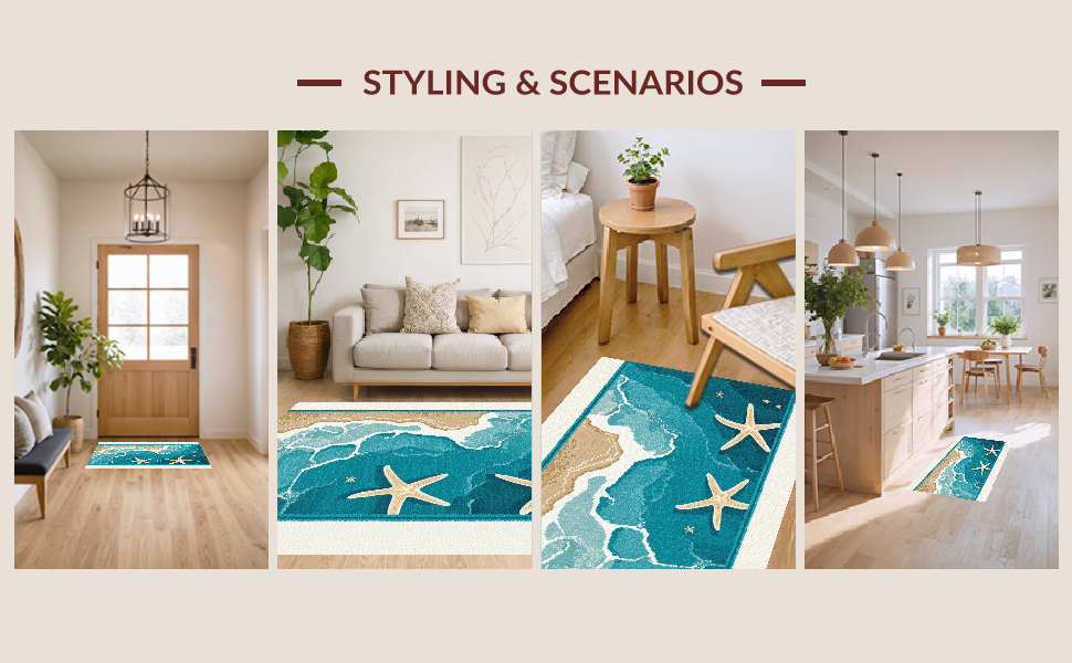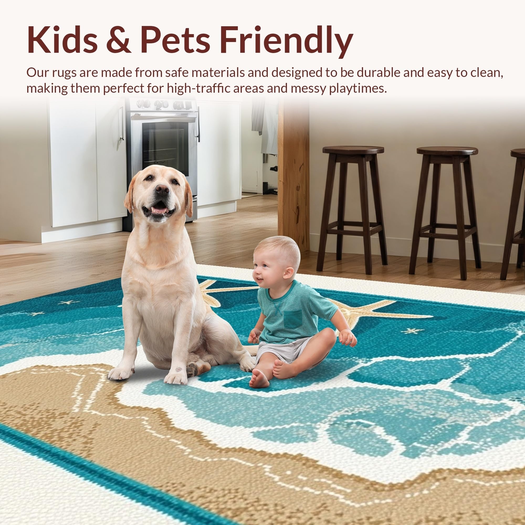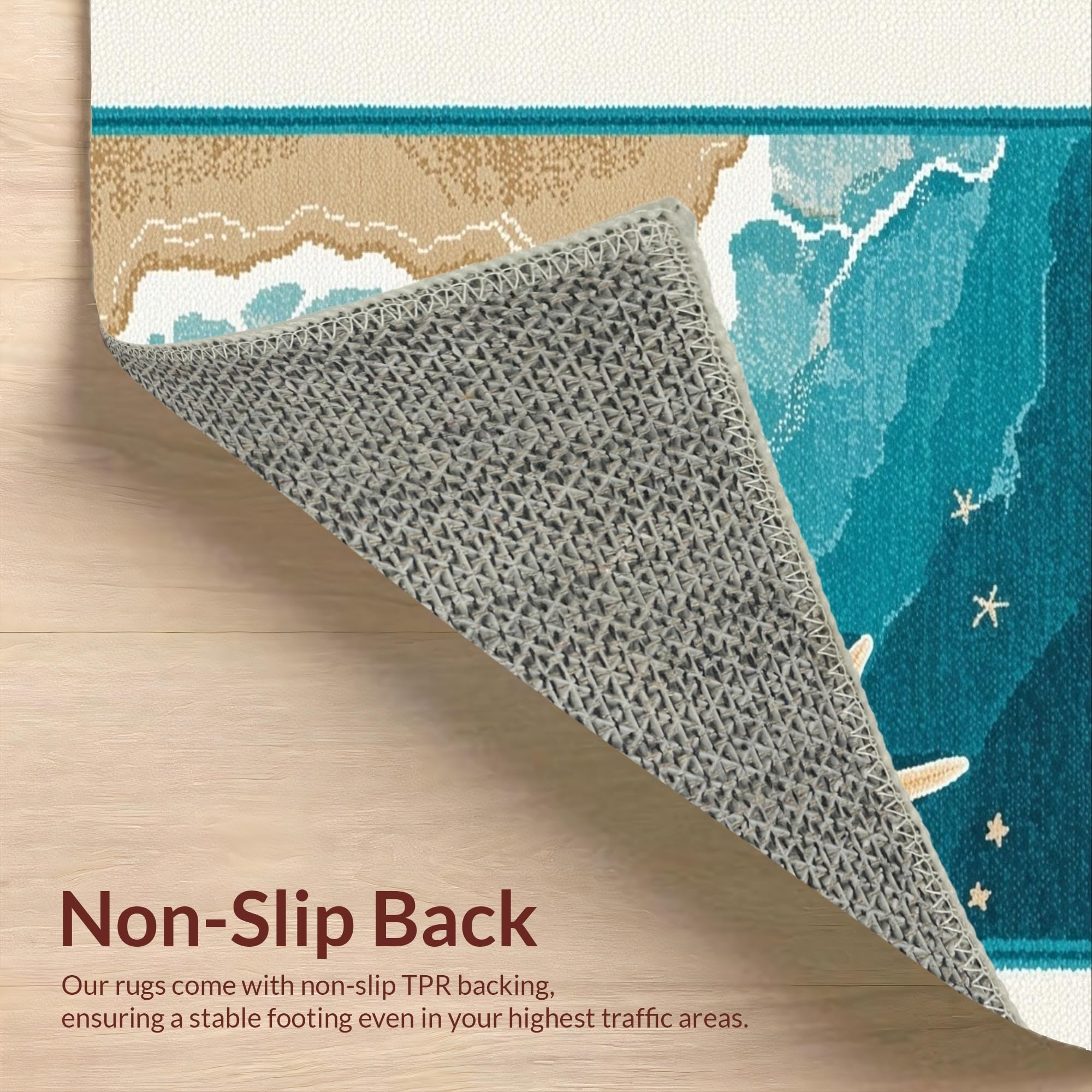 Ultra Soft Area Rug, Non Slip, Stain Resistant, Washable Area Rugs for Living Room, Bedroom, Delicate Shells and Starfish Arrangement(Blue) Overview: