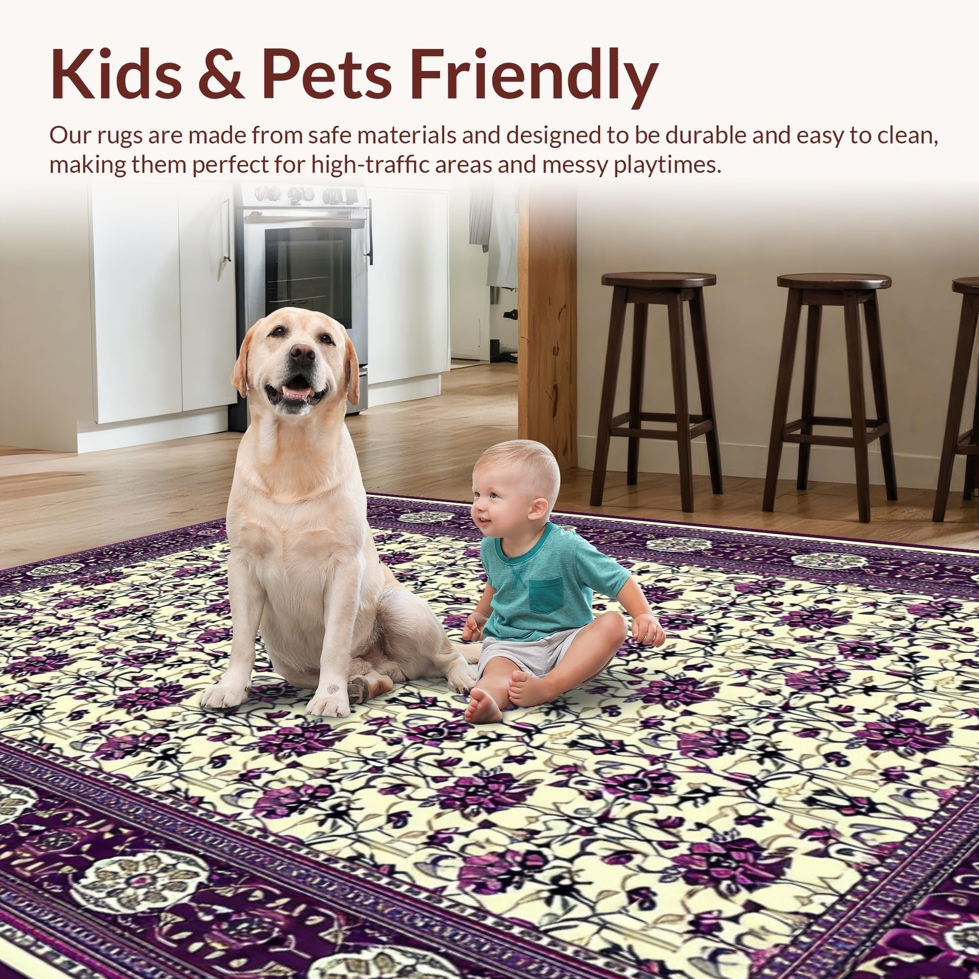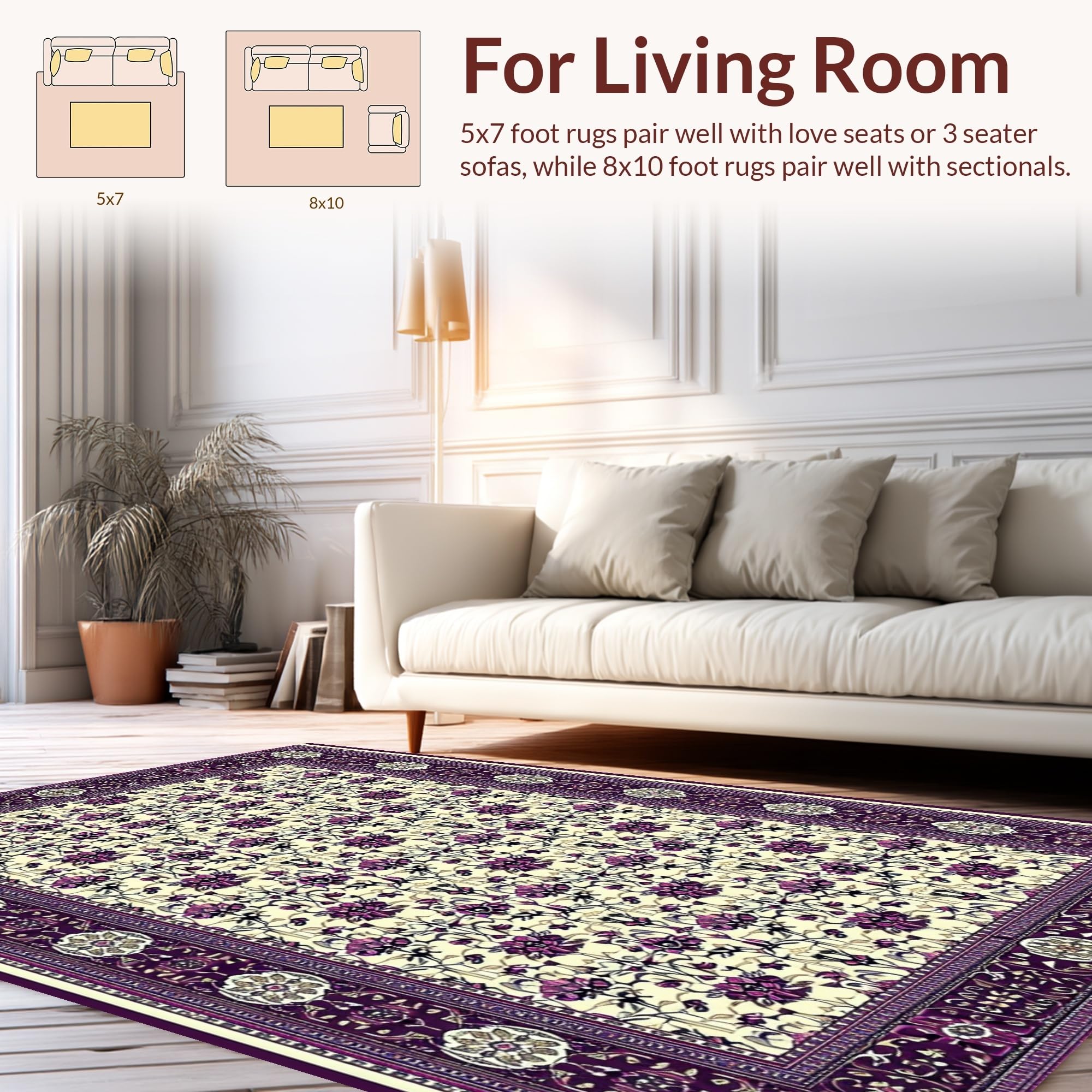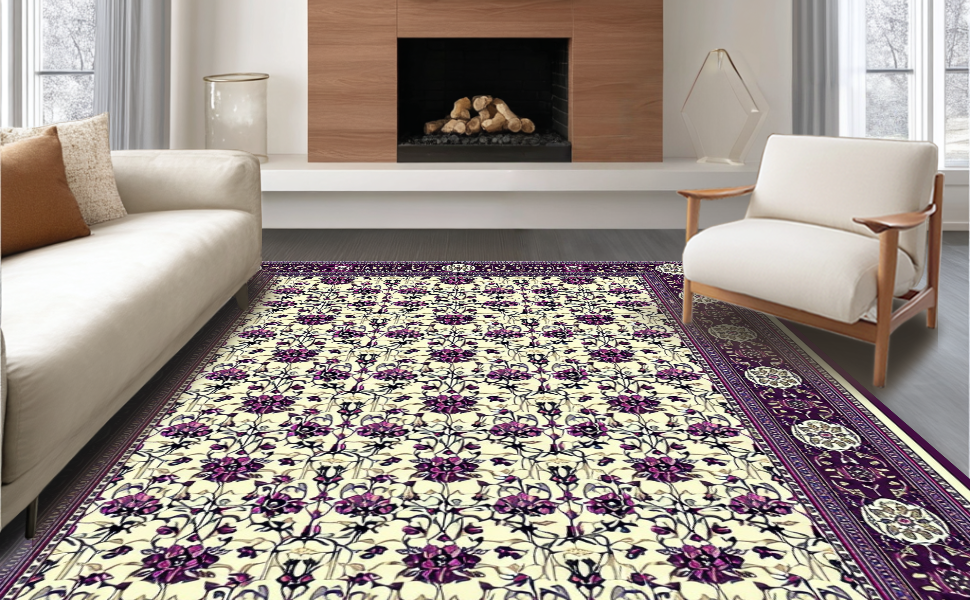 Ultra Soft Area Rug, Non Slip, Stain Resistant, Washable Area Rugs for Living Room, Bedroom, Delicate Vintage Botanical Patterns(Ivory) Overview:
