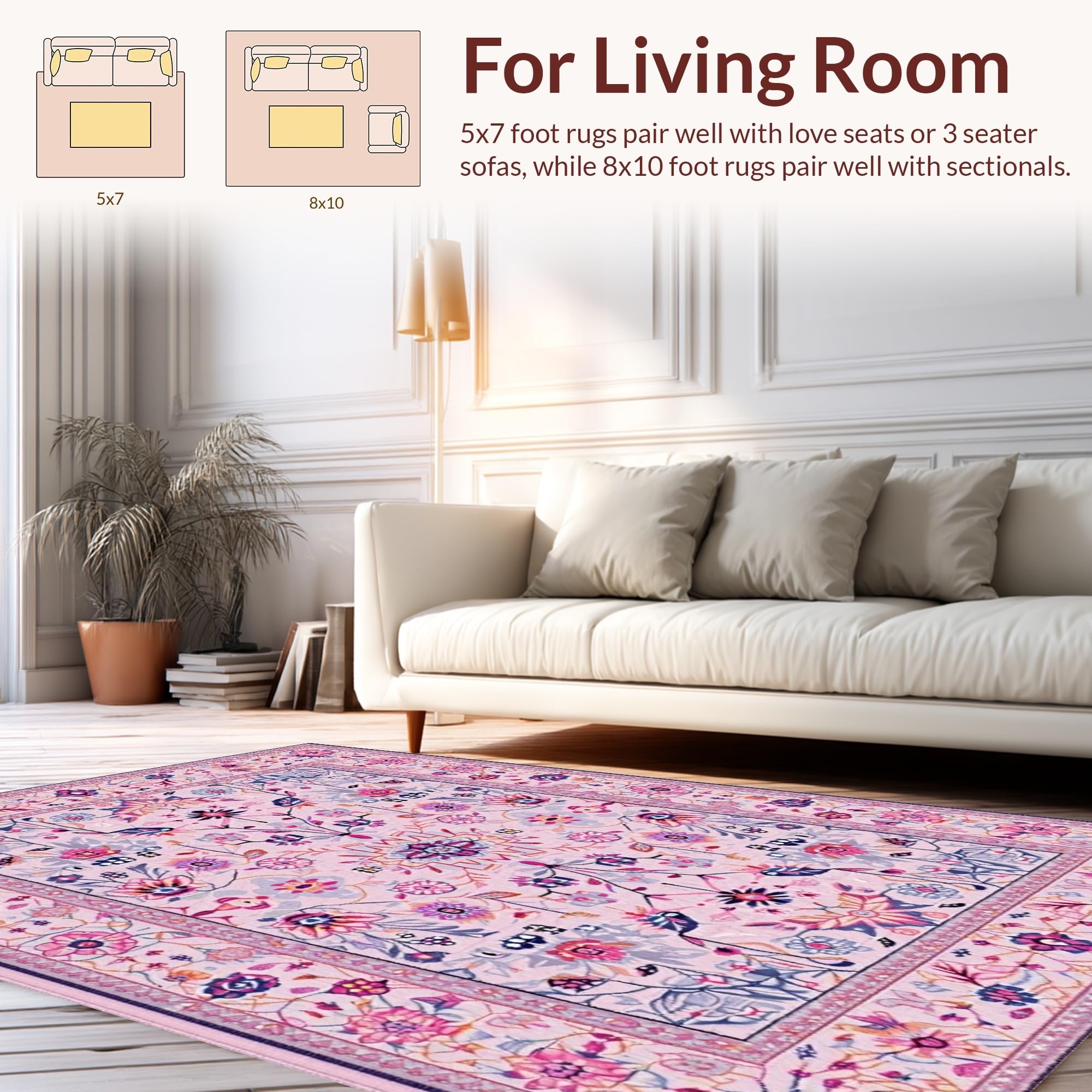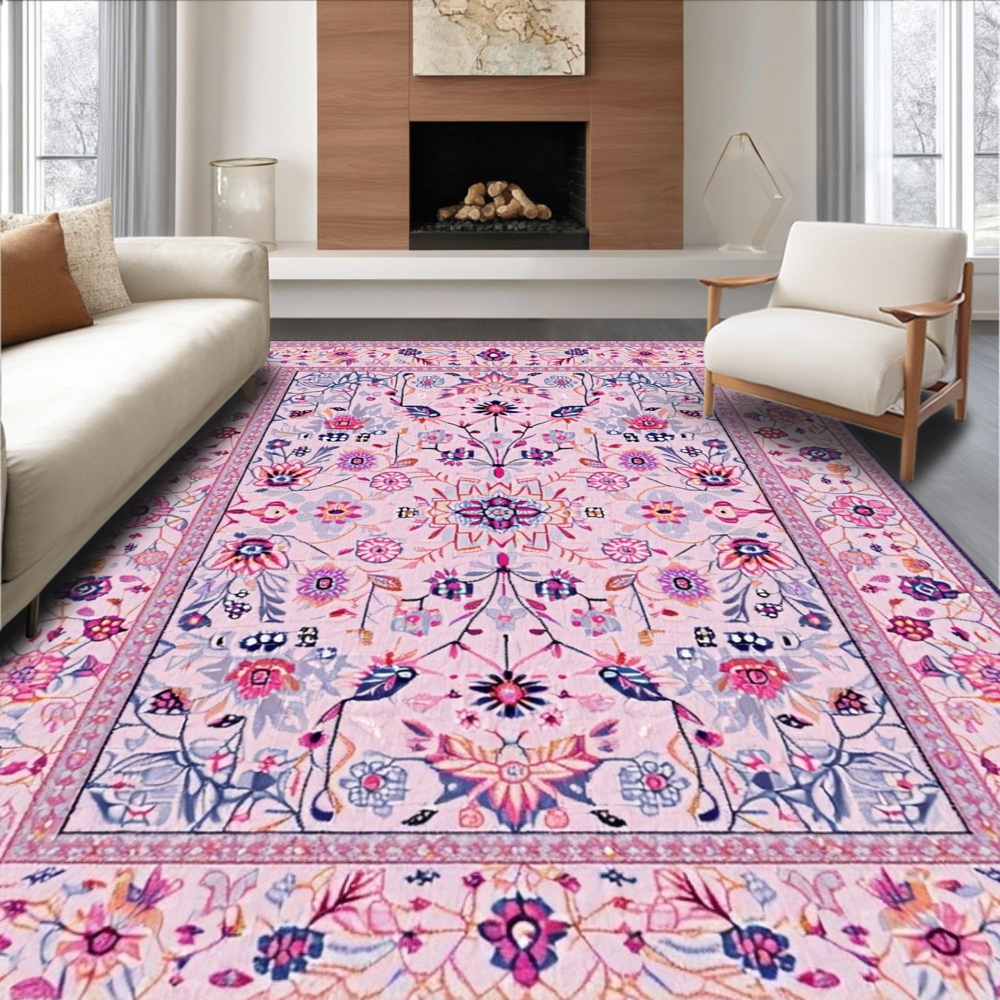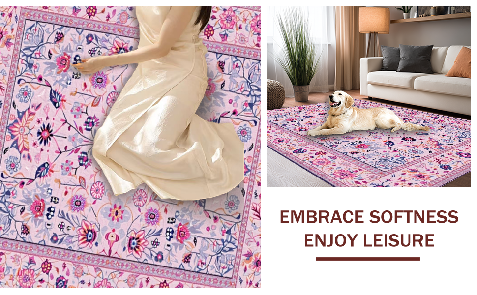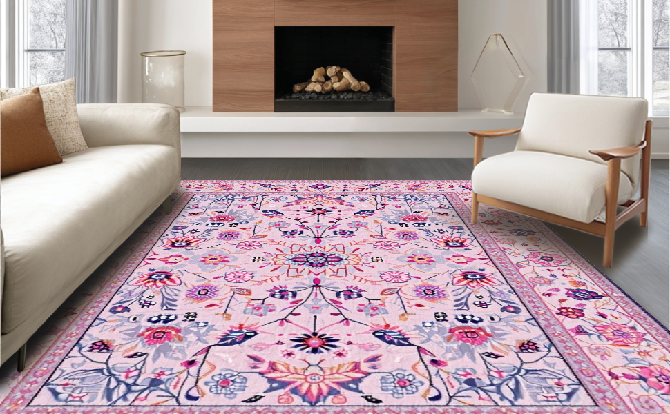 Ultra Soft Area Rug, Non Slip, Stain Resistant, Washable Area Rugs for Living Room, Bedroom, Delicate Vintage Rose Pattern(Pink) Overview: