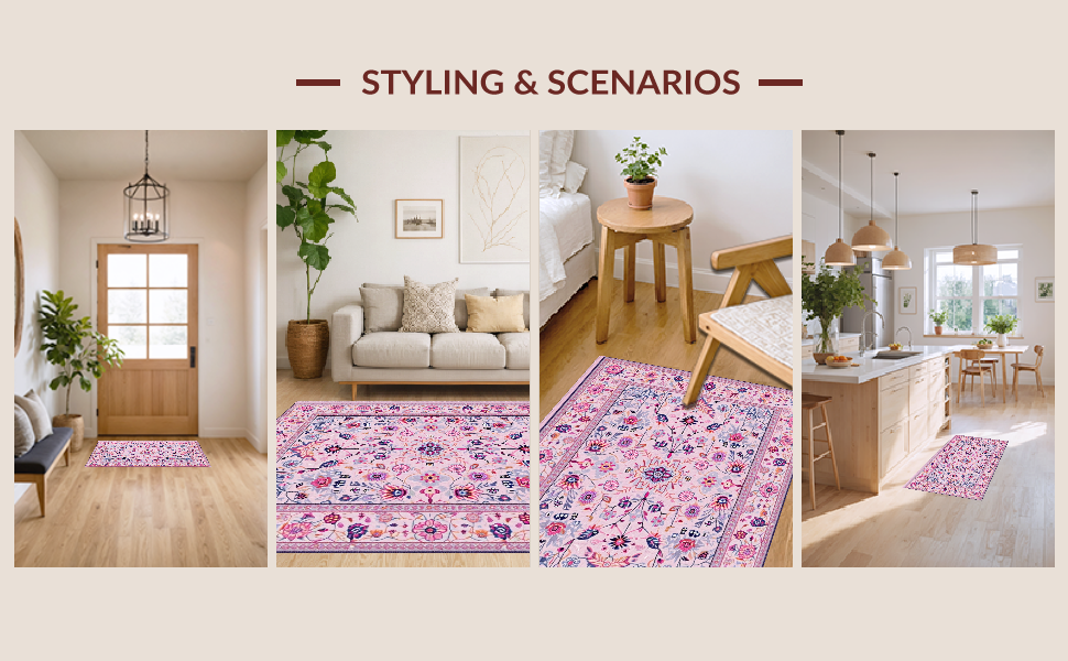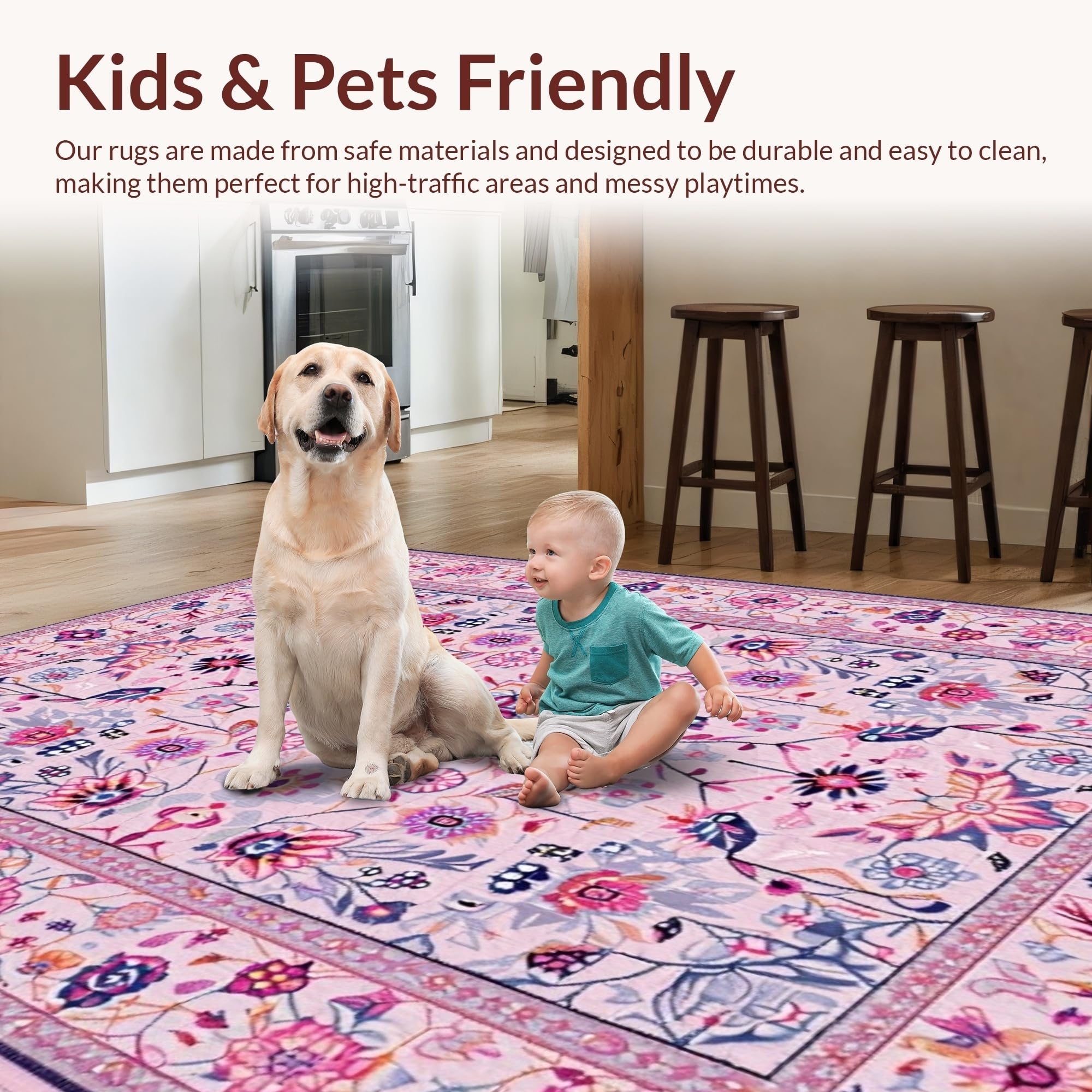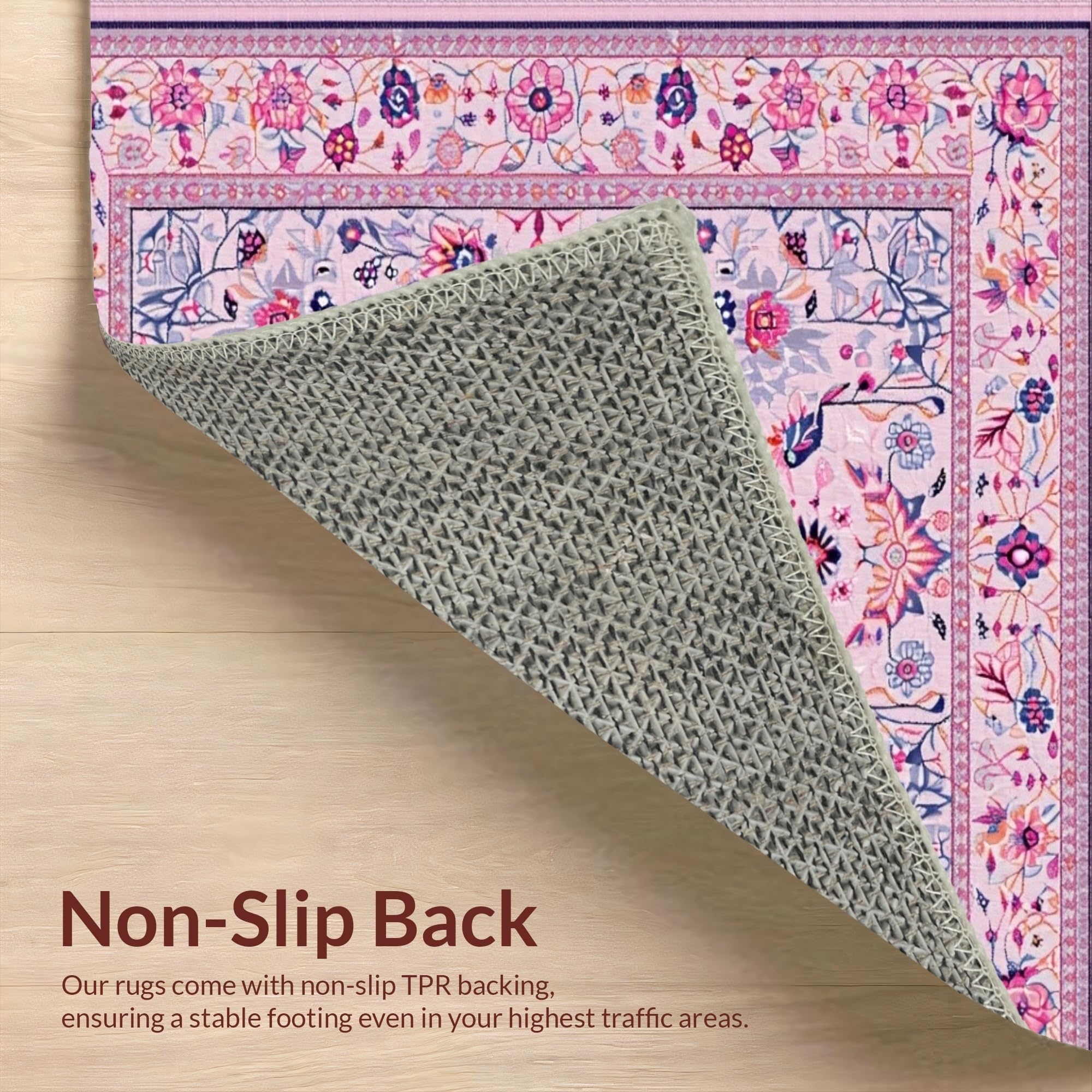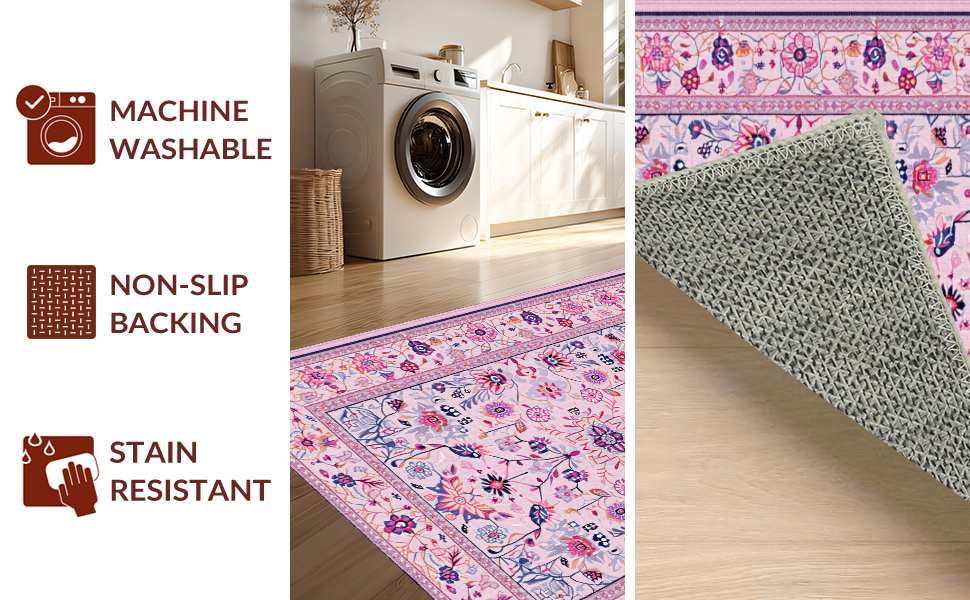 Ultra Soft Area Rug, Non Slip, Stain Resistant, Washable Area Rugs for Living Room, Bedroom, Delicate Vintage Rose Pattern(Pink) Overview: