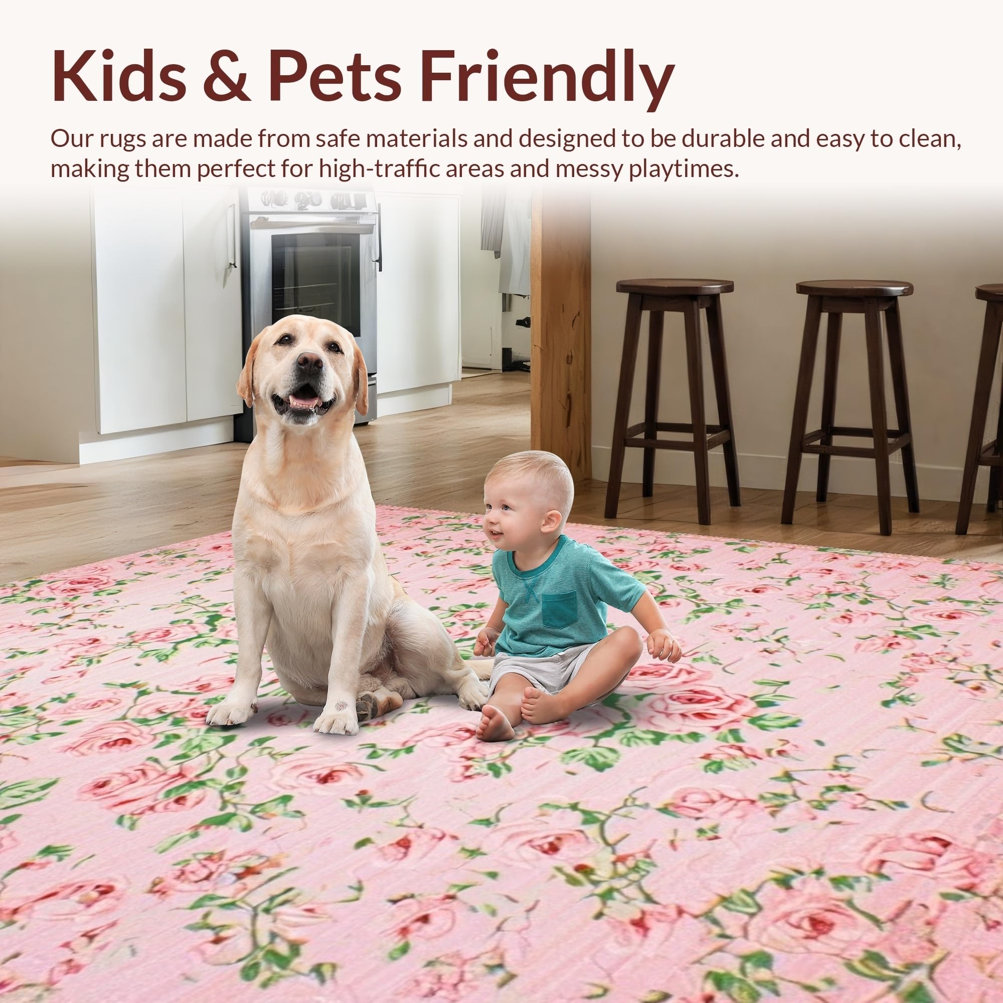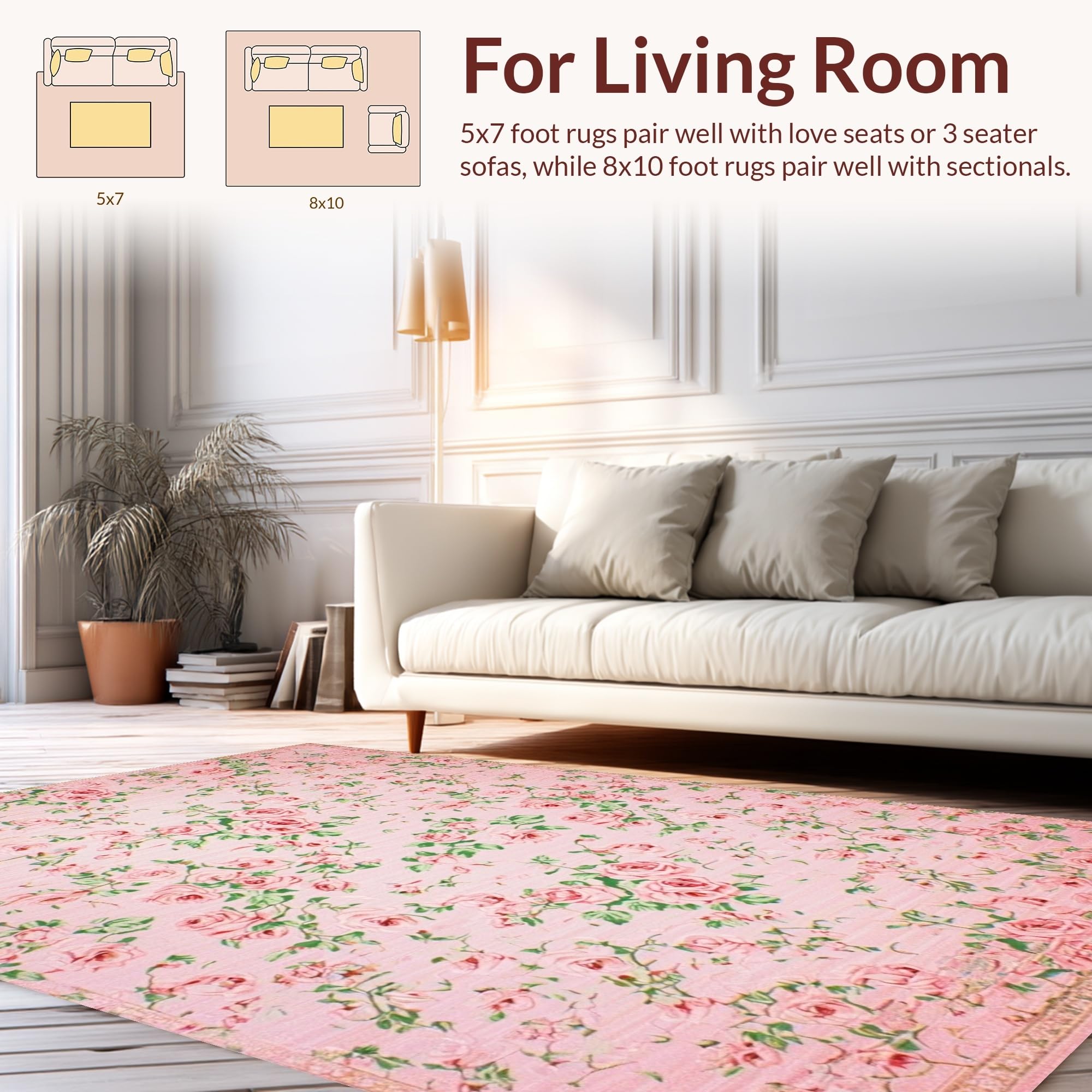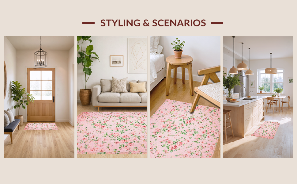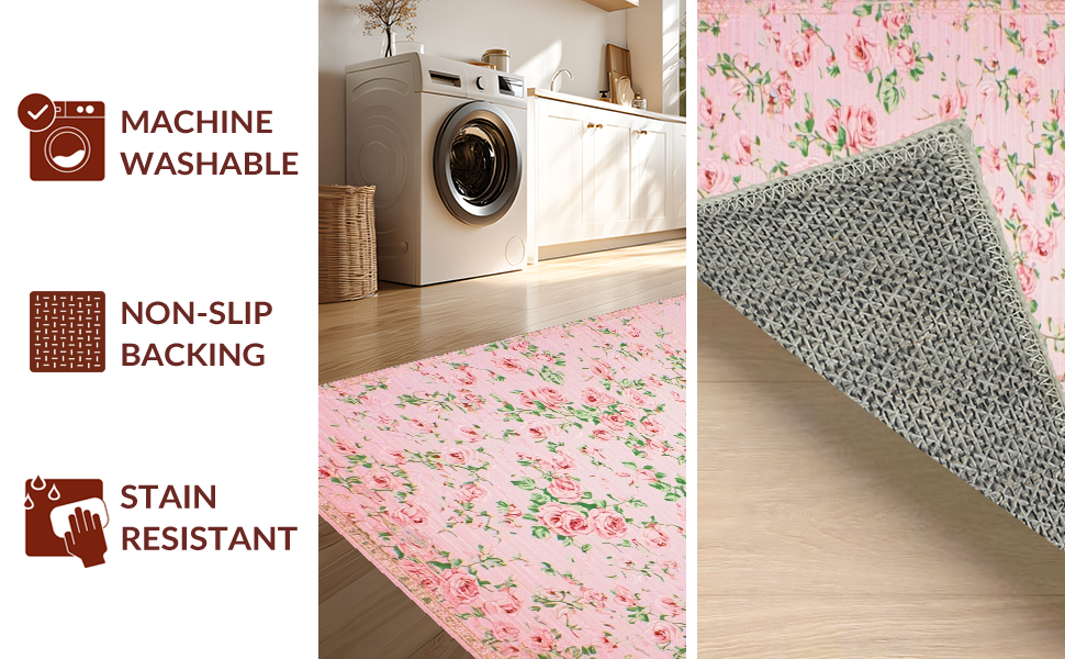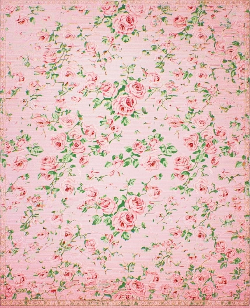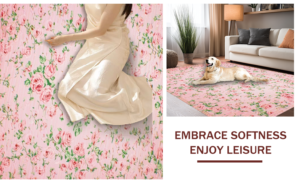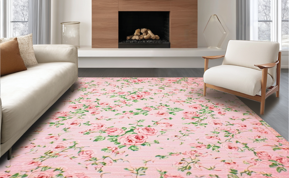 Ultra Soft Area Rug, Non Slip, Stain Resistant, Washable Area Rugs for Living Room, Bedroom, Delicate Whimsical Blossom Composition(Pink) Overview: