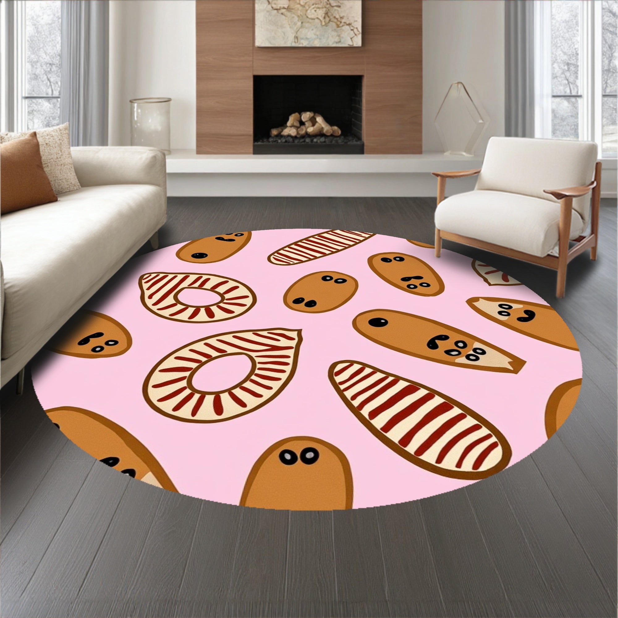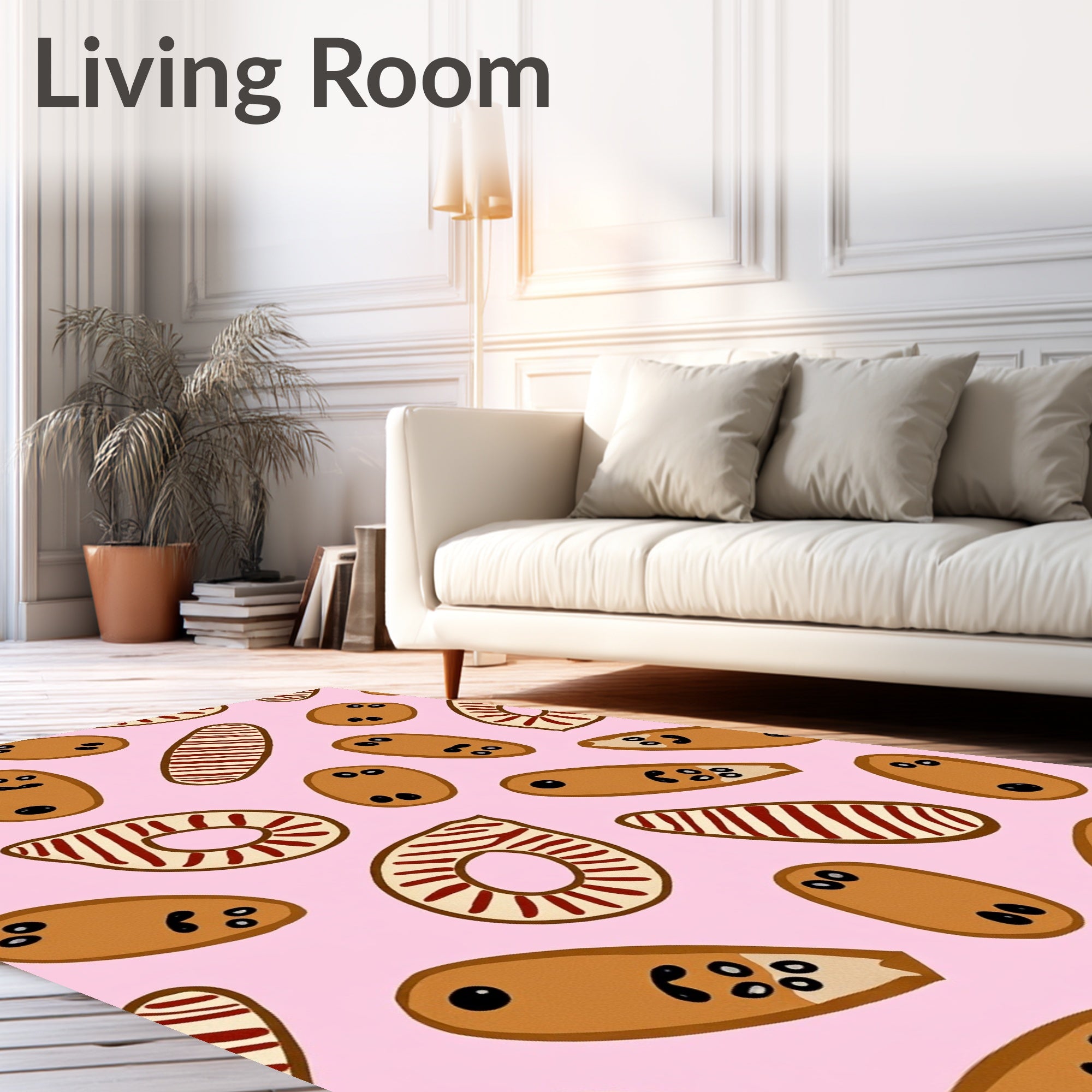 Ultra Soft Area Rug, Non Slip, Stain Resistant, Washable Area Rugs for Living Room, Bedroom, Delightful Bakery Character Protector Striped Mint(Pink) Overview: