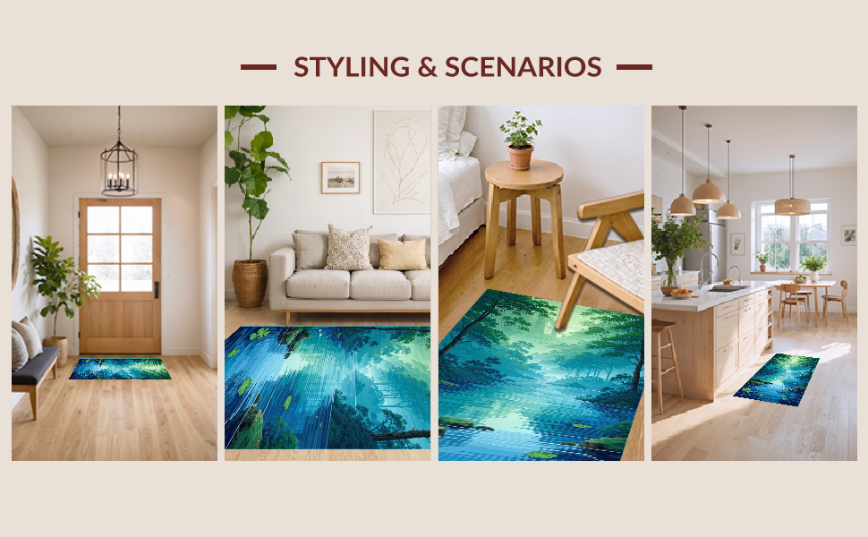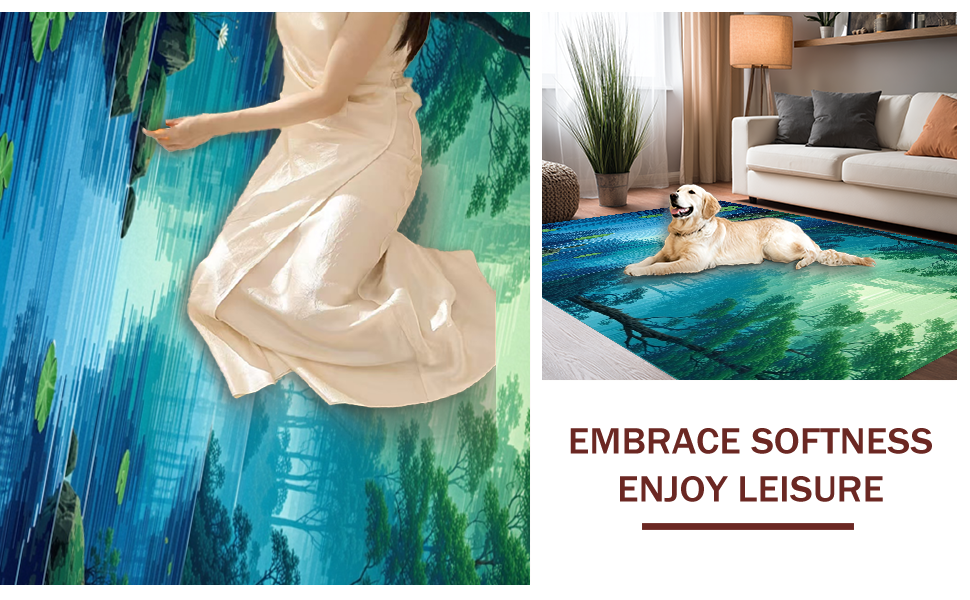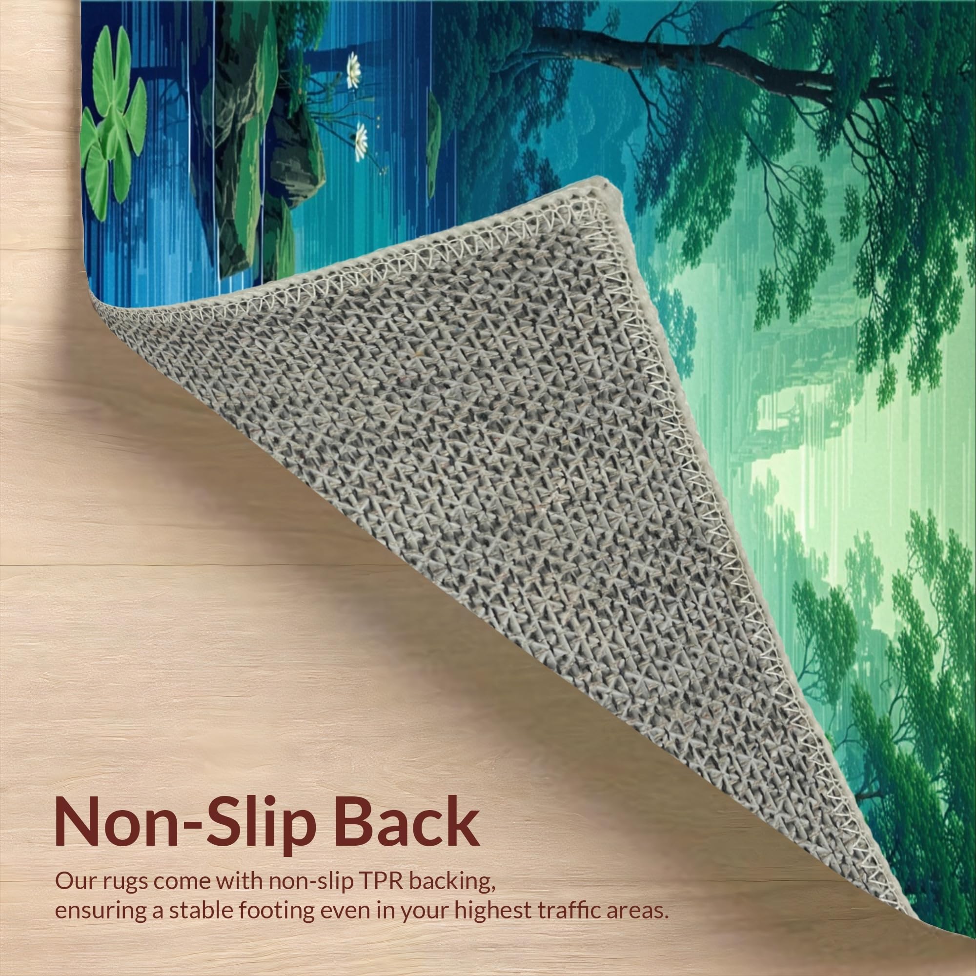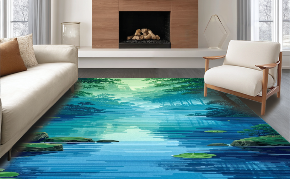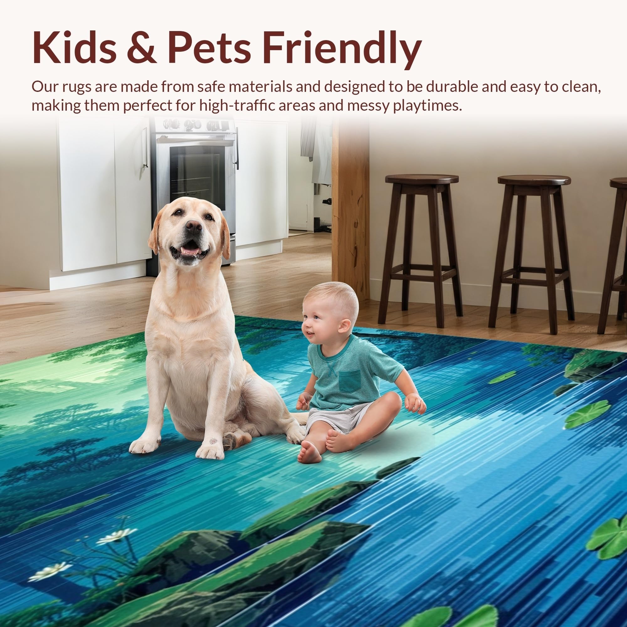 Ultra Soft Area Rug, Non Slip, Stain Resistant, Washable Area Rugs for Living Room, Bedroom, Delightful Cartoonish Pond Elements(Blue) Overview: