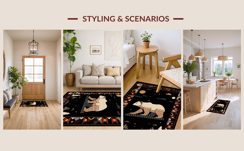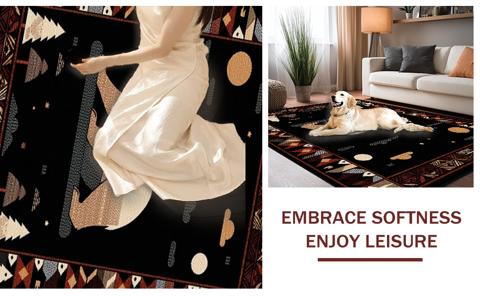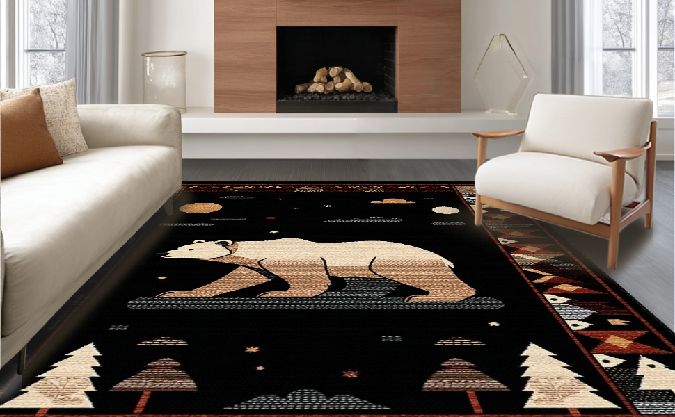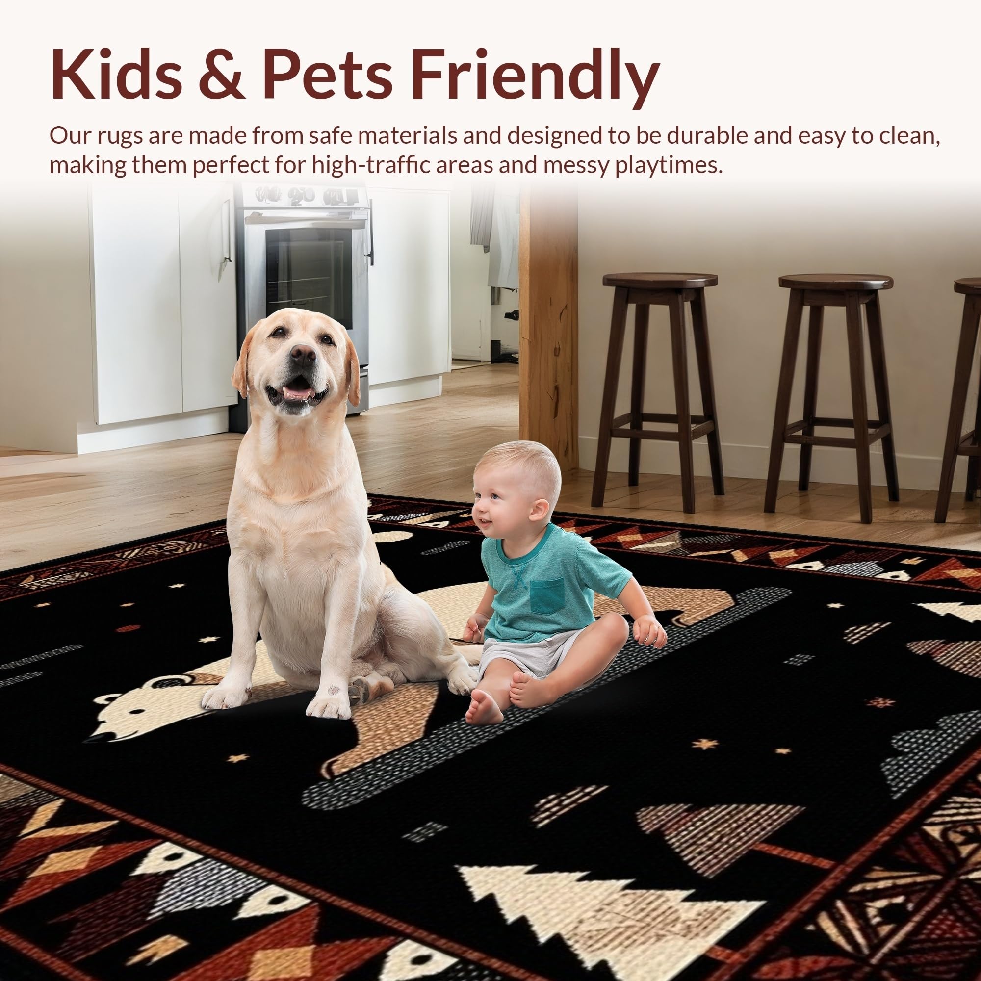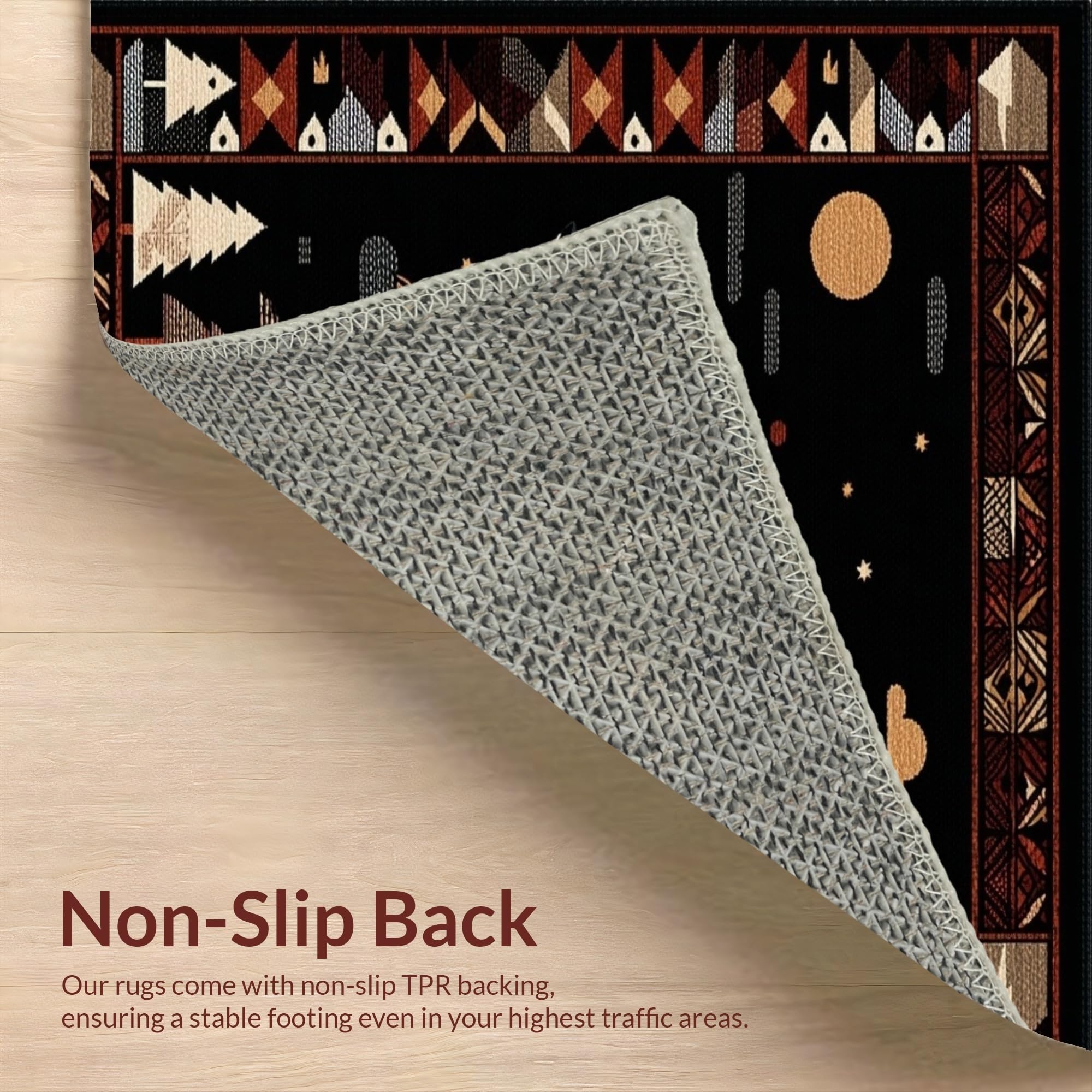 Ultra Soft Area Rug, Non Slip, Stain Resistant, Washable Area Rugs for Living Room, Bedroom, Delightful Cartoonish Wildlife Pattern(Black) Overview: