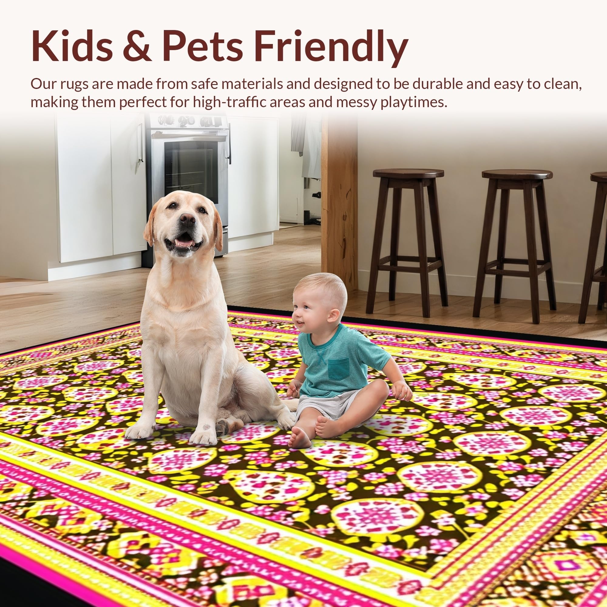 Ultra Soft Area Rug, Non Slip, Stain Resistant, Washable Area Rugs for Living Room, Bedroom, Delightful Cheerful Egg Pattern(Black) Overview: