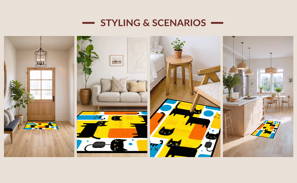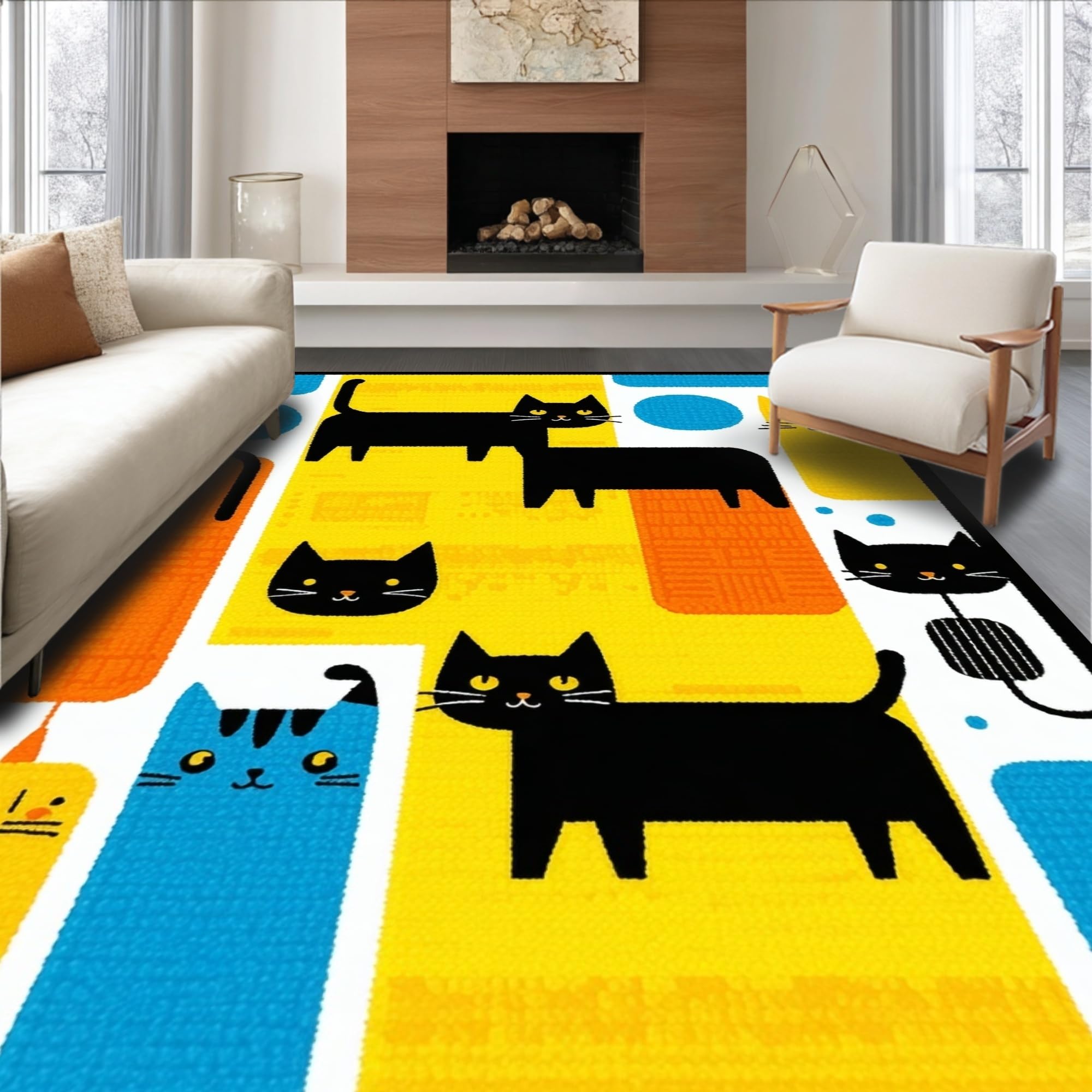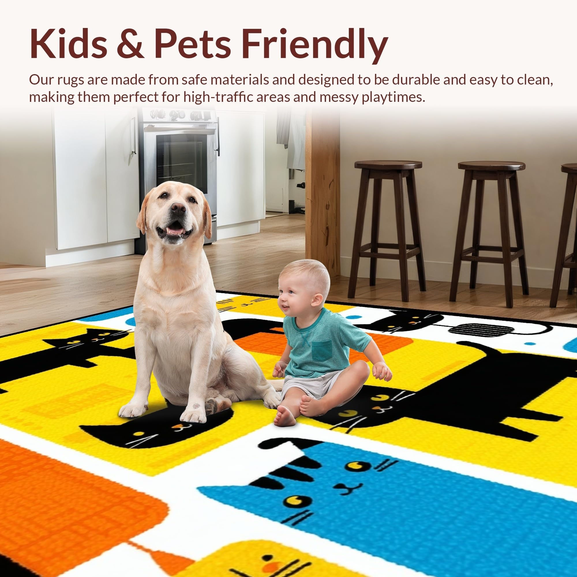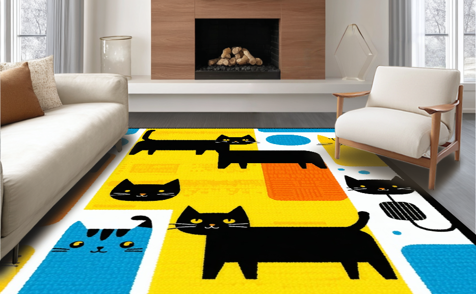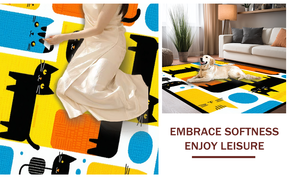 Ultra Soft Area Rug, Non Slip, Stain Resistant, Washable Area Rugs for Living Room, Bedroom, Delightful Cheerful Graphic Elements(Yellow) Overview: