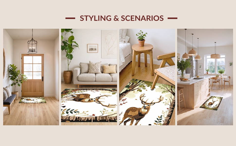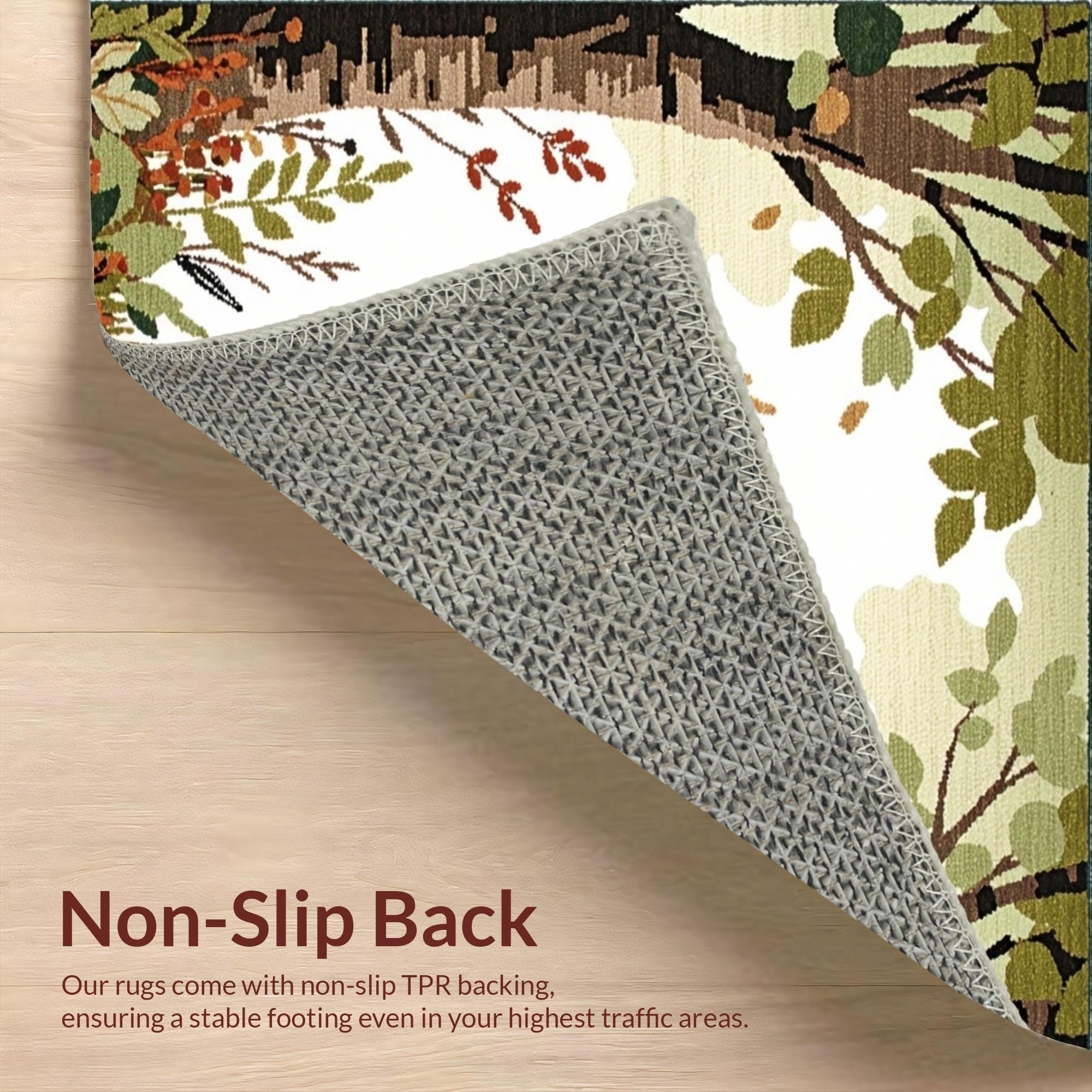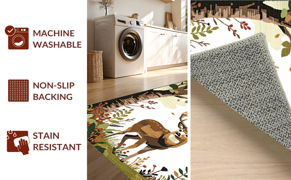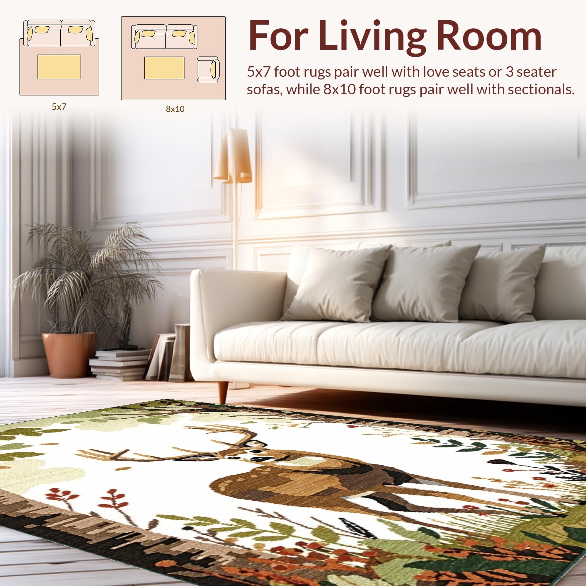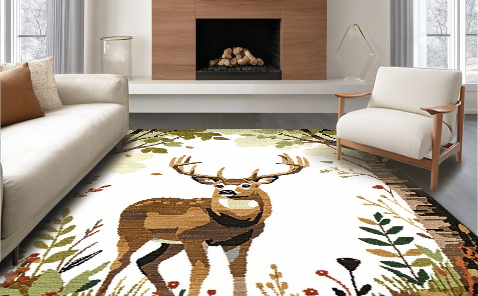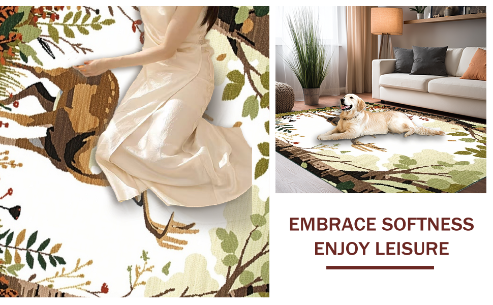 Ultra Soft Area Rug, Non Slip, Stain Resistant, Washable Area Rugs for Living Room, Bedroom, Delightful Cozy Woodland Theme(Beige) Overview: