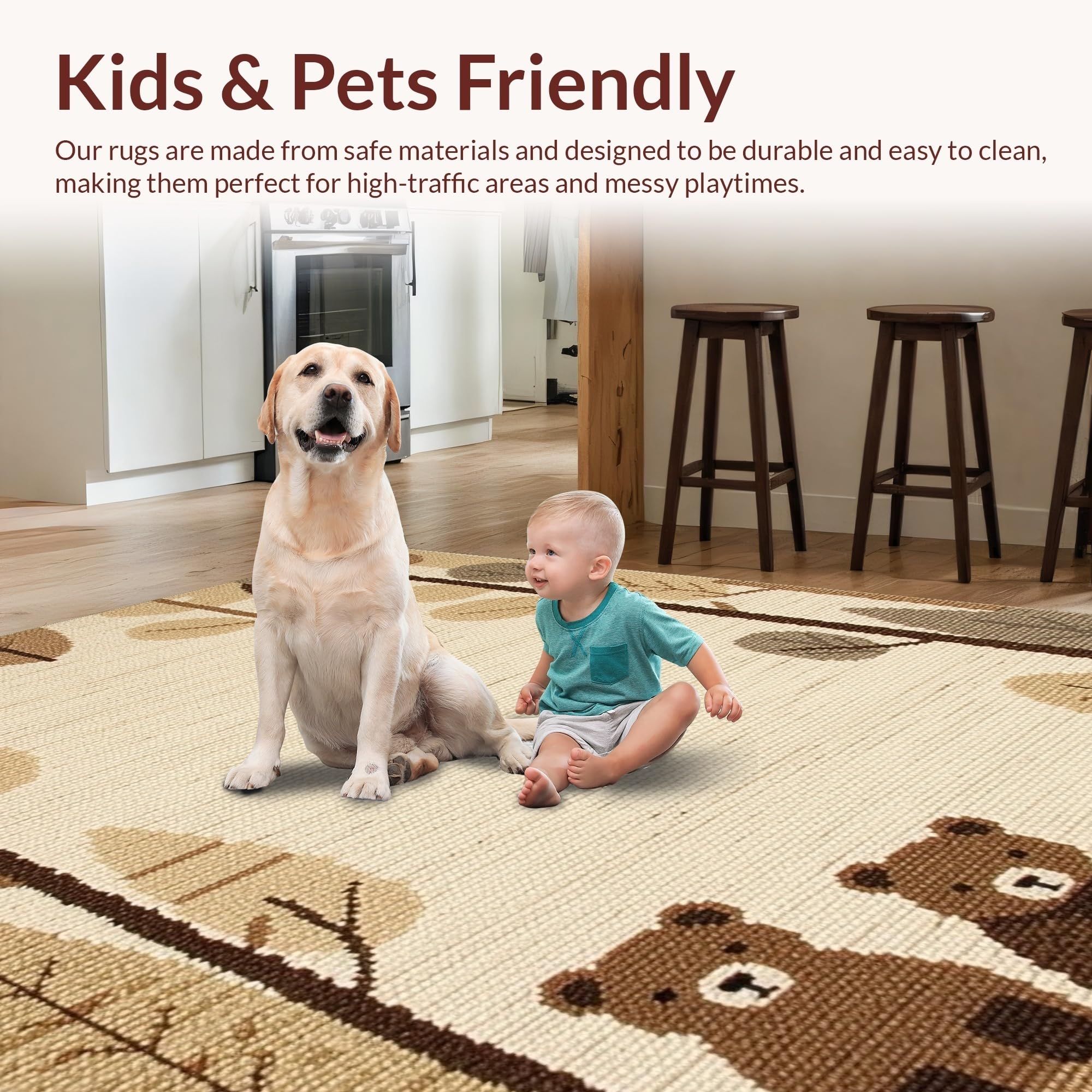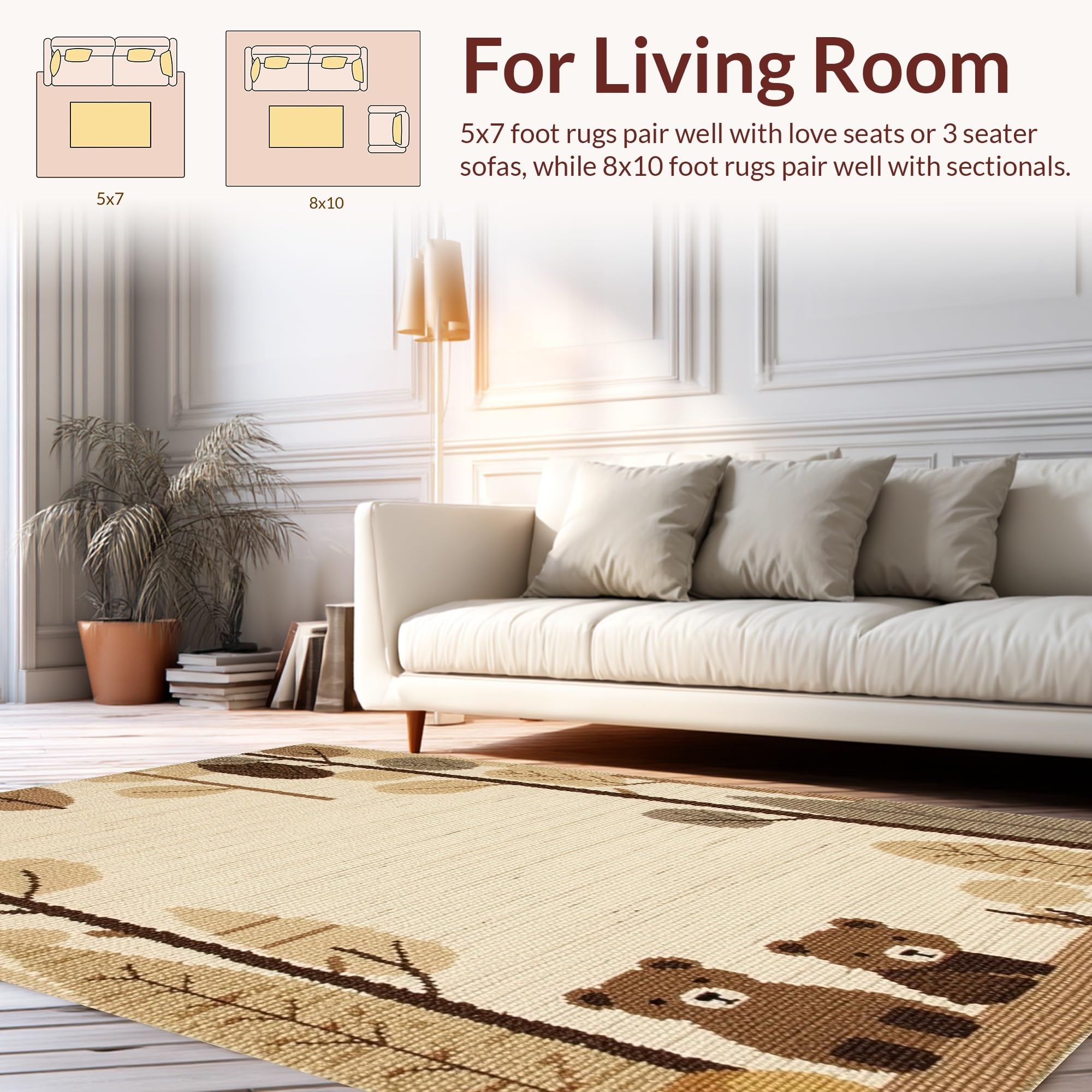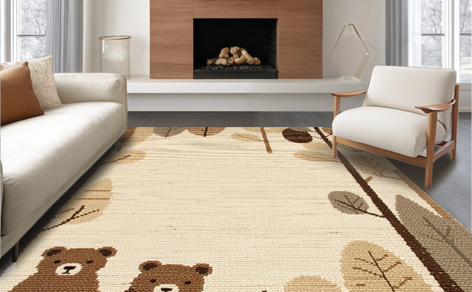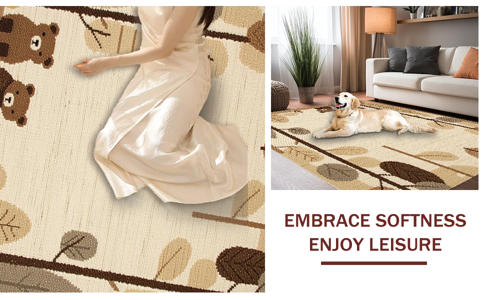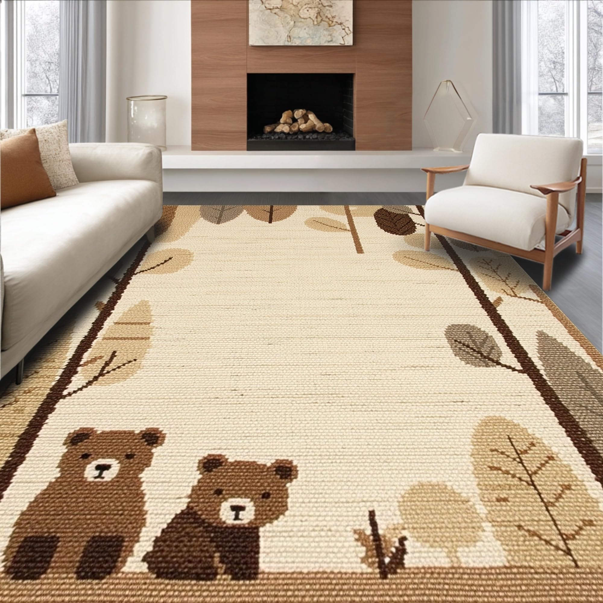 Ultra Soft Area Rug, Non Slip, Stain Resistant, Washable Area Rugs for Living Room, Bedroom, Delightful Cute Creature Design(Beige) Overview: